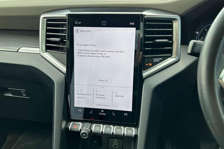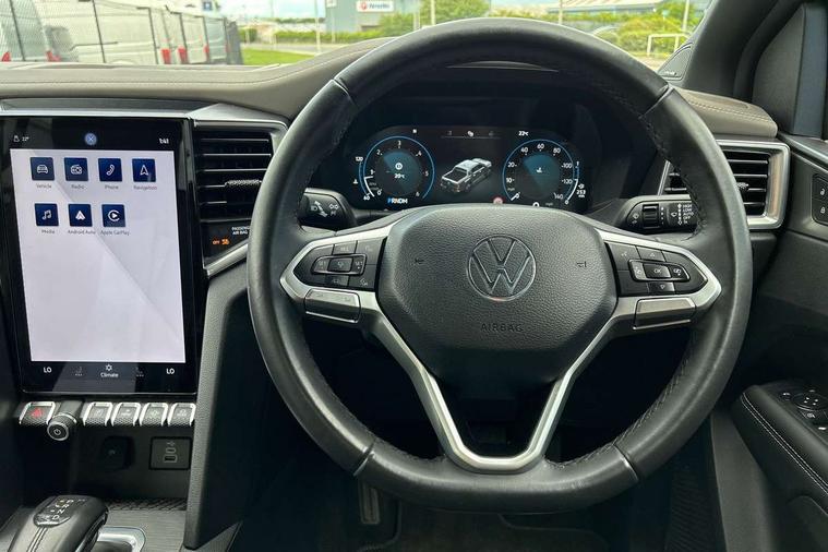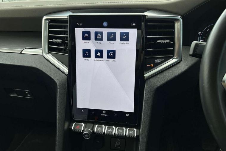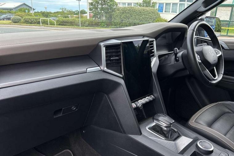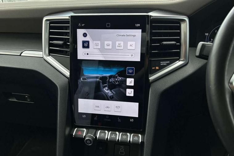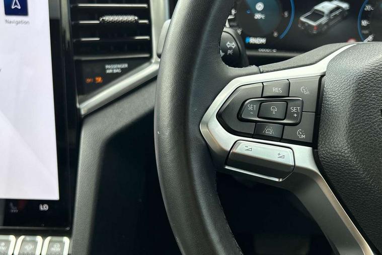 12-inch Infotainment system, Adaptive cruise control ACC with predictive speed limiter, Area View 360 camera, Autonomous emergency braking front assist with monitoring and braking for vehicles, pedestrians, cyclists, Digital Cockpit 12-inch, Dynamic road sign display, eCall emergency system, Navigation system, Park assist plus including park distance control in front and rear, rear traffic alert, PAS, Selector lever, Without manual activation of 360-degree surround and cargo area lighting, Without tachograph, Without trailer maneuvering system Trailer Assist, 1 USB charging socket on the interior rearview mirror, AM / FM antenna and digital radio reception DAB+, Harman Kardon sound system with 8 loudspeakers, Preparation for VW Connect Basic and VW Connect Navigation, Advanced high-beam control Dynamic Light Assist for IQ.LIGHT LED matrix headlamps, Black bumper in rear with chrome-plated styling elements, Body colour styling bar, Body-colored rear gate handle, Chrome-plated exterior mirror housings and door handles, Dark-tinted privacy glass rear side windows and rear window, Diversity antenna, Dynamic headlight range control, Exterior mirrors, power-adjustable, heated and power-folding, with surround lighting, Front and rear power windows, Fuel filler door with integrated misfueling prevention device, Heated rear window, IQ Light LED matrix headlamps, LED front fog lamps, LED rear combination lamps, Mud flaps front and rear, Painted bumper in front with silver X-style insert, Radiator grille with chrome bezel, Satin air vents, Silver roof rails, Step with chrome insert, Trailer hitch preparation, Windshield sound-insulating with windshield heater, Windshield wiper intermittent control with rain sensor, Without hardtop, Without towing eyes in rear, Without underride guard, 10-way power-adjustable driver and front passenger seats, 3 head restraints in 2nd row of seats, 3 point belts in addition height-adjustable in 1st row of seats, 3-point belts in 2nd row of seats, 3-seater bench in 2nd row of seats, Ambient lighting, Carpet floor covering, Center armrest in rear, Child seat anchors ISOFIX on outer rear seats, i-Size compatible, Child seat recognition, Door handles in chrome, Driver seat with map pocket, Dual-zone climate control Climatronic, Gearshift/selector lever knob, leather, Glove compartment, illuminated and lockable, Headliner ebony black, Heating and fresh air system, Inductive charging feature, Leather-wrapped multi-function steering wheel, heated, LED cargo area lighting, Overhead console 2 reading lights for driver and front passenger with glasses compartment in overhead console, Premium dashboard in leather look vinyl, Refrigerant, Roof grab handle on driver side, rigid grab handles, on A-pillar, Savona leather upholstery, Seat belt pretensioner, Seat occupied recognition with seat belt reminder for driver, front passenger and rear seat area, Sun visor on driver and front passenger side with illuminated vanity mirror, Tie-downs on the cargo area, Top tether child safety seat anchorage, Velour floor mats premium with lettering Aventura, Without hand brake lever, Without load compartment cover, Without load compartment loadliner, Without load support including protection frame on the rear cabin wall, Rear seat package II, Curtain and side airbags with center airbag, Front passenger airbag deactivation, Knee airbags for driver and front passenger, Without fire extinguisher, Without first aid kit, Anti-theft alarm system with interior monitoring, backup horn and towing protection, Keyless locking and starting system Keyless Access with SAFELOCK and 2 remote control folding keys, Online anti-theft alarm system, Rear gate lockable via central locking system, Remote control key, Tire Pressure Monitoring System (direct measurement), Wheel lock for spare wheel, Wheel locks, With programmable key, 120-V/230-V outlet in rear center console and cargo area, 3.55 gear ratio, Alternator - 250A, Automatic post collision braking system, Comfort suspension, Electronic parking brake, Electronic stability control (ESC) and Electromechanical brake booster, Emission standard, Four-wheel drive, Particle filter, Stop/start function, Without electrical interface for external use, 6 switches in overhead console, 21" Varberg silver alloy wheels, Alloy spare wheel,