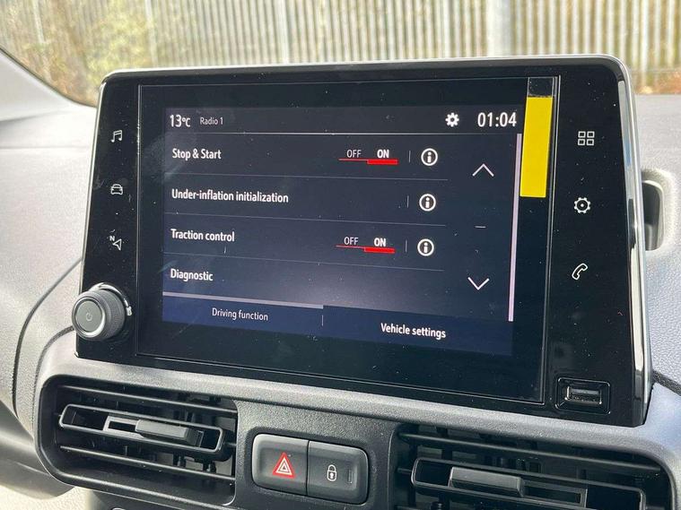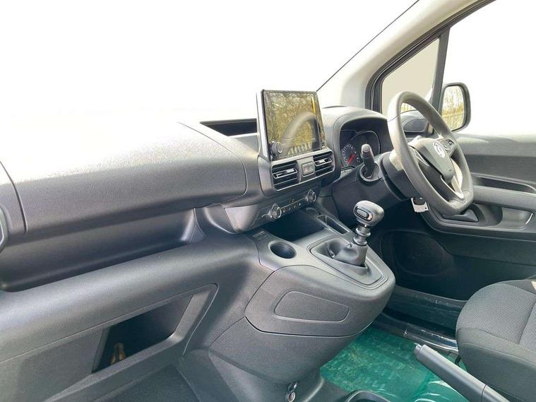Central facia display with audio information, digital clock, outside temperature with ice warning and additional features about infotainment system, Centrally located instrument cluster with service due indicator and trip computer data, Cruise control with speed limiters, Gearshift indicator light, Instrumentation Speedometer, rev counter, fuel gauge with low fuel warning light and water temperature gauge warning light, Lights on audible warning, Multi-function trip computer with trip mileage, vehicle range, average speed, average and instantaneous fuel economy, Speed sensitive electric power assisted system, Steering wheel mounted audio controls, Black door handles, Black door mirrors, Black front and rear bumpers, Daytime running lights, Dipping rear view mirror, Hazard warning lights, Magic wash system, Manual headlight beam levelling, Offside and nearside sliding side access doors, Rear fog lights, Reversing lights, Side protection moulding, Solar heat absorbing windscreen, Tinted windows, Two speed windscreen wipers with variable intermittent wipe, 12 volt electrical accessory socket centre console, Air conditioning, Cab heating system with six speed fan, Illuminated controls, four adjustable facia vents, windscreen demist vents and side window demist vents, Driver and front passenger sun visor and vanity mirror on rear of drivers sunvisor, Driver's top lidded glovebox, Fabric upholstery, Full width overhead storage shelf with ambient lighting, Large open storage pocket behind infotainment screen, Mistral grey fabric side bolsters, Open storage compartment below glovebox, Reach and rake adjustable steering column, Six Fixed floor mounted load restraint lashing eyes, Small open storage compartment behind gear lever, Three spoke flat bottomed design steering wheel with satin chrome effect bezel, Two drinks holders in centre console on front compartment, Two facia mounted drinks holders on front compartment, Two large and two small open door pockets, Deactivation switch for front passenger airbag and side impact airbag, Drivers and front passengers lap belt pretensioner system, Energy absorbing steering column, Side impact protection beams, Reinforced passenger safety cell and front and rear deformation zones, Front body lock diagonal seatbelt pretensioner system, Front seatbelt force limiters, Height adjustable front seatbelts, 2 folding keys with integral remote control function, Central locking activation switch on drivers door, Electronically protected audio, Engine deadlock immobiliser, Remote central locking and deadlocks, Remote control operates on doors and fuel filler or EV charging flap, Visible Vehicle Identification Number (VIN), Anti-lock braking, Anti-roll bar, Corner stability control, Electronic brake force distribution, Electronic stability programme, Emergency brake assist, Engine drag torque control, Floor mounted handbrake lever, Hill start assist, Independent MacPherson front suspension with gas pressure dampers and linear-rate coil springs, Rear torsion beam with gas pressure dampers and variable rate coil springs, Traction control,