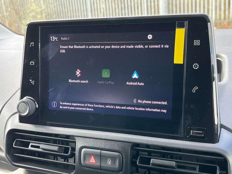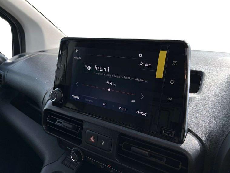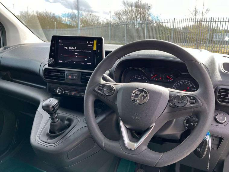 Central facia display with audio information, digital clock, outside temperature with ice warning and additional features about infotainment system, Centrally located instrument cluster with service due indicator and trip computer data, Cruise control with speed limiters, Gearshift indicator light, Instrumentation Speedometer, rev counter, fuel gauge with low fuel warning light and water temperature gauge warning light, Lights on audible warning, Multi-function trip computer with trip mileage, vehicle range, average speed, average and instantaneous fuel economy, Speed sensitive electric power assisted system, Steering wheel mounted audio controls, Black door handles, Black door mirrors, Black front and rear bumpers, Daytime running lights, Dipping rear view mirror, Hazard warning lights, Magic wash system, Manual headlight beam levelling, Offside and nearside sliding side access doors, Rear fog lights, Reversing lights, Side protection moulding, Solar heat absorbing windscreen, Tinted windows, Two speed windscreen wipers with variable intermittent wipe, 12 volt electrical accessory socket centre console, Air conditioning, Cab heating system with six speed fan, Illuminated controls, four adjustable facia vents, windscreen demist vents and side window demist vents, Driver and front passenger sun visor and vanity mirror on rear of drivers sunvisor, Driver's top lidded glovebox, Fabric upholstery, Full width overhead storage shelf with ambient lighting, Large open storage pocket behind infotainment screen, Mistral grey fabric side bolsters, Open storage compartment below glovebox, Reach and rake adjustable steering column, Six Fixed floor mounted load restraint lashing eyes, Small open storage compartment behind gear lever, Three spoke flat bottomed design steering wheel with satin chrome effect bezel, Two drinks holders in centre console on front compartment, Two facia mounted drinks holders on front compartment, Two large and two small open door pockets, Deactivation switch for front passenger airbag and side impact airbag, Drivers and front passengers lap belt pretensioner system, Energy absorbing steering column, Side impact protection beams, Reinforced passenger safety cell and front and rear deformation zones, Front body lock diagonal seatbelt pretensioner system, Front seatbelt force limiters, Height adjustable front seatbelts, 2 folding keys with integral remote control function, Central locking activation switch on drivers door, Electronically protected audio, Engine deadlock immobiliser, Remote central locking and deadlocks, Remote control operates on doors and fuel filler or EV charging flap, Visible Vehicle Identification Number (VIN), Anti-lock braking, Anti-roll bar, Corner stability control, Electronic brake force distribution, Electronic stability programme, Emergency brake assist, Engine drag torque control, Floor mounted handbrake lever, Hill start assist, Independent MacPherson front suspension with gas pressure dampers and linear-rate coil springs, Rear torsion beam with gas pressure dampers and variable rate coil springs, Traction control,