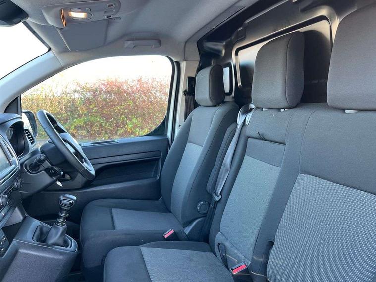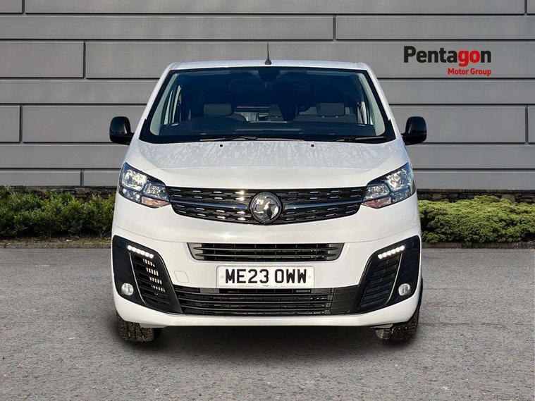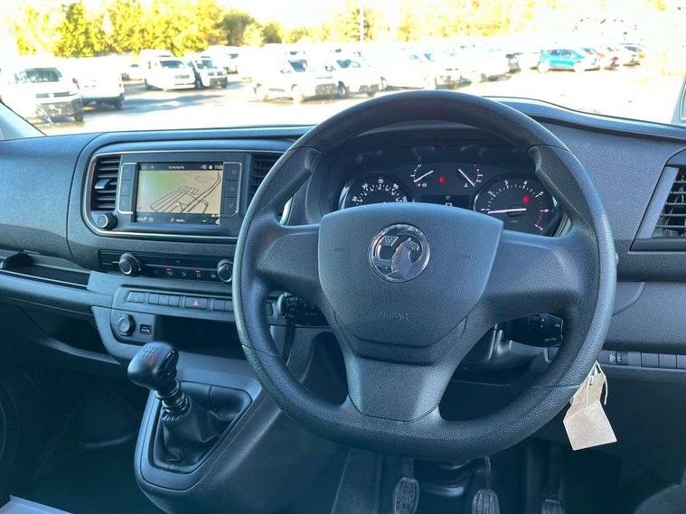 e-Call and b-Call, Hydraulic power assisted rack and pinion system, Multi function trip computer, trip odometer, vehicle range, average speed, driving time, average and instantaneous fuel economy, Multimedia navi pro 7"colourtouch, AM/FMstereo, DAB, RDS traf pro, 4 speakers, USB, BT A2DP, Auxin, Microphone, Applecarplay/Androidauto, phonebook with 2ndUSB, Panoramic rear view camera, PAS, Tyre pressure monitor, Vauxhall connect, Voice control system, Body colour door handles, Electric front windows with one touch up/down facility, Flexible roof mounted aerial, Halogen headlights, Lights on audible warning, reversing light, hazard warning, rear fog light, high level brake light and side repeat indicator, Side protection mouldings, Curitiba cloth upholstery with vinyl side bolsters, Driver seat - Height, reach, backrest recline, lumbar adjustment, driver's seat armrest and padded head restraint, 6 way adjustable drivers seat, Facia storage-upper glovebox, open lower glovebox with 12v socket and aux-in , lower shelf, A4 storage on top, two drink holders, pocket in gear lever, Fixed dual front passenger bench seat and backrest with underseat storage and height adjustable front padded head restraints, Fixed floor mounted load restraint lashing eyes x6, FlexCargo load through bulkhead, Fold flat centre seat backrest, Front door pockets - three separate compartments in each door, Full height steel bulkhead without window, Mistral Black/Grey facia and door trim, Reach and rake adjustable steering wheel and facia mounted gear lever, Design pack - Vivaro L1, 3 point seat belts, Driver and front passenger airbag, Height adjustable outer front seatbelts, Seatbelt remainder for driver and passenger, Electronic engine deadlock immobiliser, steering column lock, lockable fuel filler cap and anti theft spare wheel cradle, Remote control door locking, selective door locking, two keys with integral remote and door deadlocks, Security alarm system with monitors doors, tailgate, bonnet and the passenger compartment, 22.5 litres AdBlue tank, 70 litre fuel tank, Electronic brake force distribution, Engine start/stop system, ESP plus + traction control, Floor mounted handbrake lever, Four channel Anti lock braking system, Front ventilated and rear disc brakes, Hill start assist, Six speed manual gearbox,