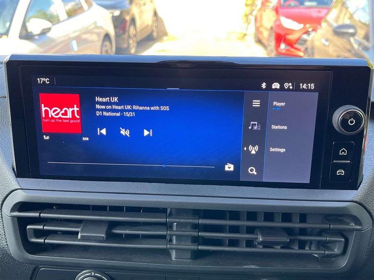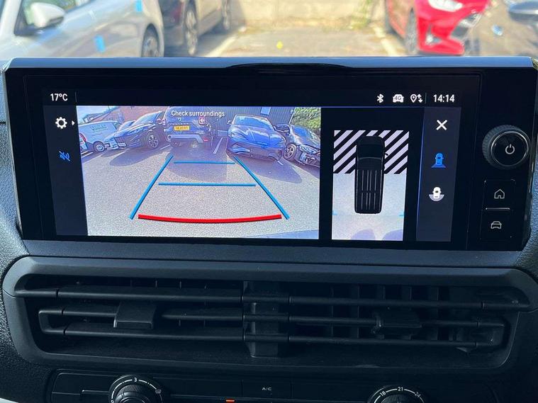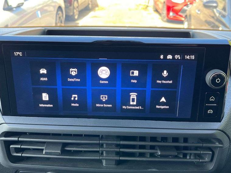 10" digital instrumental cluster, Central facia display with digital clock, outside air temperature and audio information, Connectivity via BTA with RCA, Driver Attention Alert, level - 3, e-Call and b-Call, Electronic power steering (EPS), Energy absorbing steering column, Forward collision alert, Intelligent Speed Assist, Lane keeping assist, Live navigation plus, Mobile phone portal - Bluetooth, Vehicle microphone, Phone book access, Smartphone interface with Apple carplay/Android Auto, Multi-function trip computer, Multimedia pro nav system with AM/FM/DAB radio, 10" HD touchscreen with wireless mirror screen, 4G connectivity, Voice control and USB connection, Rear parking distance sensor, TPMS (Tyre pressure monitoring system), Vauxhall connect, Audio controls mounted on steering wheel, Flexible multi-functional short antenna (200mm), Two speakers and two tweeters, Automatic headlamps on/off, Body colour door handles, Body colour side protection mouldings, Body coloured front bumper, Body coloured rear corner bumper with black centre section, Eco LED headlamps with integrated daytime running lights, Electrically adjustable + heated door mirrors, Familial vizor, Front electric windows with one touch facility, High beam assist, Laminated acoustic windscreen, Lockable fuel filler cap, Offside and nearside sliding side access doors, Painted decor strips, Painted exterior rear view mirror cover, Rain sensitive windscreen wipers, Twin solid rear doors, 12V socket in load area (LHS at bottom of D-pillar), 12V socket in lower glove box (1 only in cabin), Air recirculation facility, Chilled glovebox facility, Curitiba cloth upholstery, Driver's seat armrest, Dual passenger bench seat with fold-up outer seat, folddown writing table in central seat back and storage under, Ergonomic 6-way adjustable driver's seat with reach, rake, height and lumbar adjustment, Fixed floor mounted load restraint lashing eyes x8, Fold flat centre seat backrest, Full bulkhead with load-through hatch, Interior roof trim, Manual air conditioning, Overhead console with 1 ceiling lamp (dome type and 3 lamps), Reach and rake adjustable steering wheel, TPO plastic flooring, USB socket in cabin (dashboard), City pack with dynamic surround view - Vivaro, Automatic fuel cut-off and door unlocking in event of accident, Driver and passenger airbags, Height adjustable lap and diagonal inertia reel front seatbelts, Passenger airbag deactivation manually, Dashboard mounted central locking push button and auto locking above 7mph, Immobiliser, Remote control central deadlocking, Remote control ultrasonic security alarm system, Selective door locking, Two keys with integral remote, 22.5 litres AdBlue tank, 70 litre fuel tank, ABS, Advanced emergency braking system, EBA, Electronic brake force distribution (EBFD), ESC, Hill start assist, Traction control, Mistral black dashboard trim with liquid paladium center decor, Michelin Agilis tyres - 215/60 R17C,