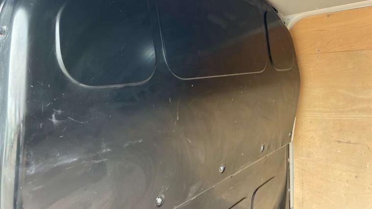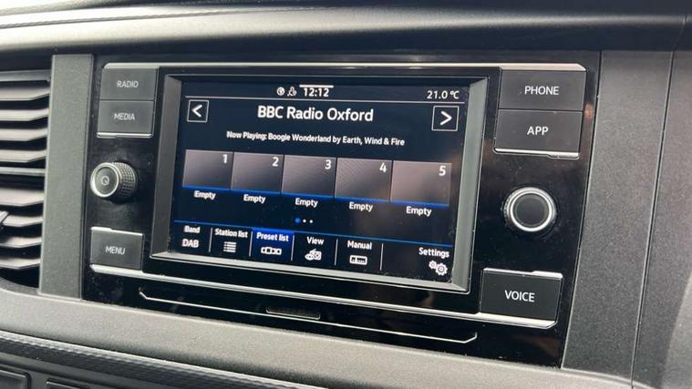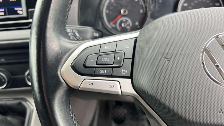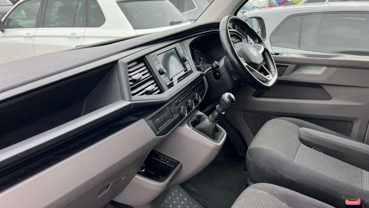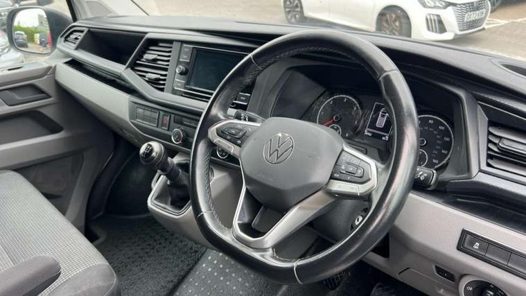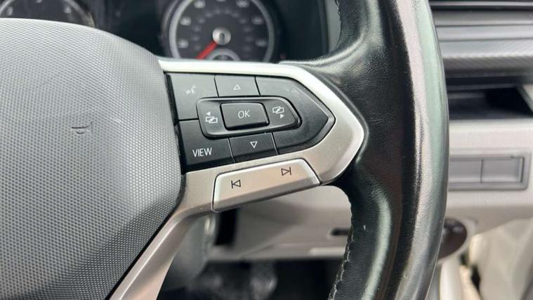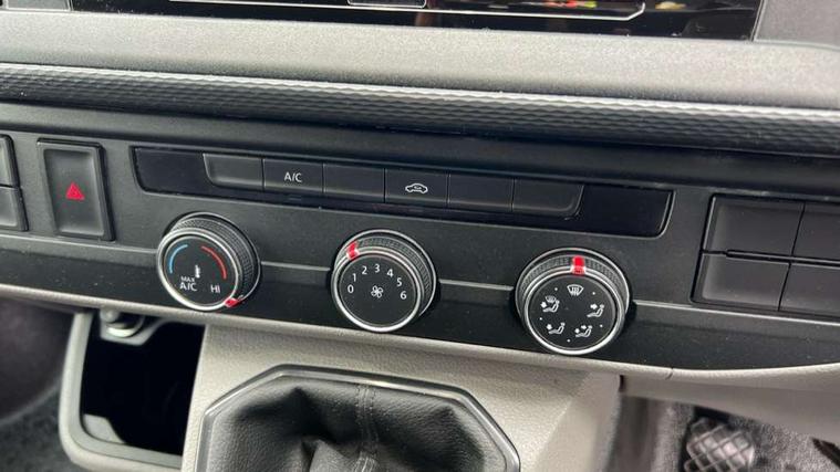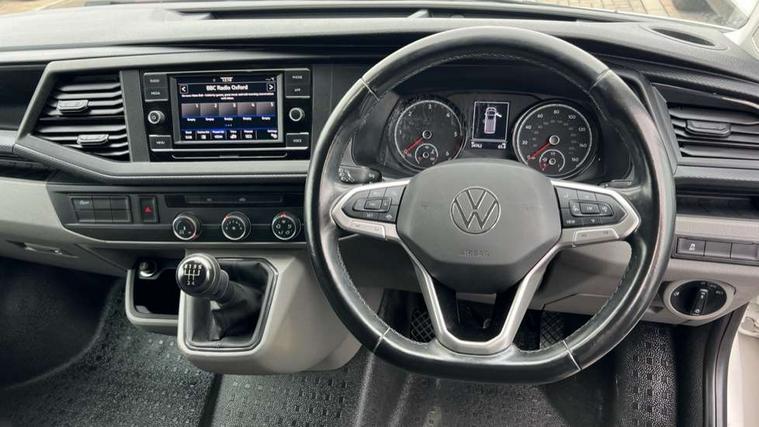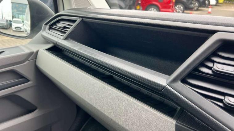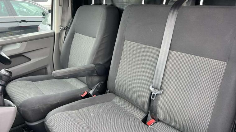 Cross wind assist, Dimmable illuminated instruments, Driver alert with Multi-function display plus, eCall emergency system, Forward collision warning front assist with autonomous emergency braking, Mobile phone interface, Multi function display plus with black and white display, 2 USB interfaces type C in dashboard, 4 speakers with 2 tweeters and 2 woofers, Composition colour radio with 6.5" touchscreen, Digital radio reception (DAB+), Volkswagen app connect, 4 stages windshield wiper intermittent control for windshield wipers, Closing rear wing door with unlatching from the inside, H7 twin halogen headlamps, Heat insulating glass (green) in cab and passenger/load compartment, Heat insulating windshield made of laminated glass, Left convex exterior mirror, Rear wing doors without window apertures, Right convex exterior mirror, Separate Daytime running lights, Transporter nameplate on the rear fender, Unpainted radiator grille with 2 chrome trims, 3 spoke leather wrapped multi function steering wheel, Comfort headliner in cab, hardboard roof trim in passenger and load compartment, Dust/pollen filter, Folding grab handles on roof frame, Front and rear left without window closed side panel in load compartment, Front seats on the right in 1st row of seat, Glove compartment without illumination, Heavy duty tool kit and jack, High partition, Interior plastic loading edge protection, LED Interior lighting in load and passenger compartment, Manual adjustable lumbar support for right single seat in 1st row seats, Standard lower part dashboard in palladium, Without breakaway interior rear view mirror, Without refrigerant, Without right side window apertures in passenger and load compartment, Non smoker pack - Transporter, 3 point height adjustable seat belts on outer seats cab with electric pretensioners, Driver and front passenger airbag with front passenger airbag deactivation, Warning buzzer and light for driver and front passenger seat belt not fastened, Without child safety lock in passenger compartment, Electronic immobiliser, Wheel bolts without wheel locks, 16" chassis with 16" brake system, Diesel particulate filter, Electronic stability control, ABS, ASR with deactivation button, hill start assist and brake assist system, Standard anti drum measures, Start/stop system with regenerative breaking,