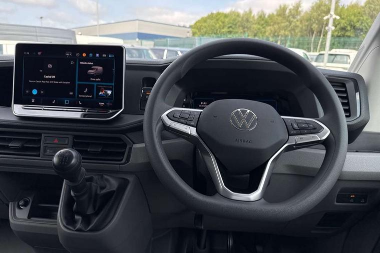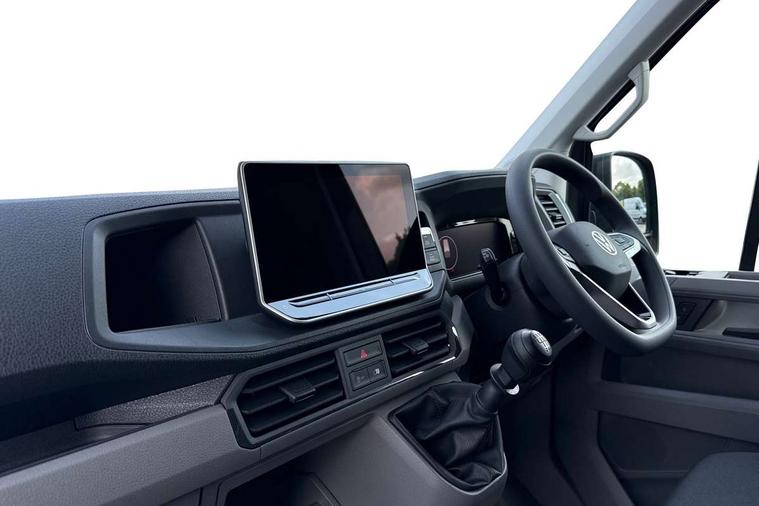 Bluetooth, Digital clock, Driver alert system, E-call + We connect basic preparation, Instrument cluster, Lights on warning buzzer, Locking fuel cap, Multi-function Display Plus, Rev counter, Service indicator, Speedometer, Voice control system, Composition media with 6.5" with we connect plus prep, 4 speaker, multifun display plus, USB, mob interface, app con, "We connect function", DAB Radio, Auto low beam mode, Leaving home function and manual coming home function, Cab doors, Convex and wide angle mirror, Driver seatbelt warning light, Electric windows, Electrically heated and adjustable door mirrors, Half painted front bumper, Heat insulating glass, Indicators in front door mirrors, One towing eye in front, Rear wing doors with 270 degree hinges, Special identification plate, Unpainted radiator grille, Air recirculation system, Ashtray, Centre console storage tray, CFCU preparation, Charcoal filter, Climatic air conditioning, Document holder on centre console, Drinks holders, Electromechanical Servotronic steering, Electronically controlled heating system, Fully adjustable suspension type driver seat, Grab handles on rear entry pillars, Height adjustable head restraints, Height and reach adjustable steering wheel, Illuminated glove compartment with lockable lid, Interior light, including 2 reading lights, Interior light, switchable by door, Jack and tool kit, Preparation for interface for external use with terminal block, Storage compartments in doors and in step, right, Storage tray on dashboard, Two 12V outlets in the cab (in the dashboard), Without rear side trim panel passenger load compartment, Non-smokers pack - Crafter, 3 point inertia reel belt on all seats, Automatic hazard light with emergency braking, Crosswind assist, Driver and front passenger airbag with front passenger airbag deactivation, Height adjustable seatbelts for outer cab seats, 1 rigid key, Anti-theft alarm with interior monitor, back up horn and tow away protect, overhead storage with two 1-DIN, reading light, SAFELOCK with 2 remote keys, Engine immobiliser, ABS, Automatic post collision braking system, EBA, EBD, EDL, ESP, Front disc brakes, HBA, Hill start assist, Parking brake - hill hold control, Start and stop system with regenerative braking, TCS, Hub cap covers,