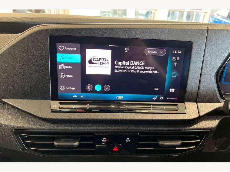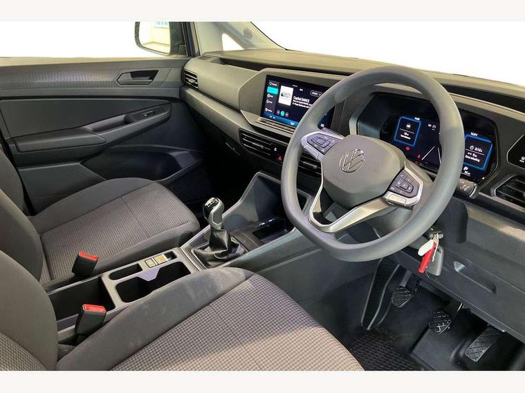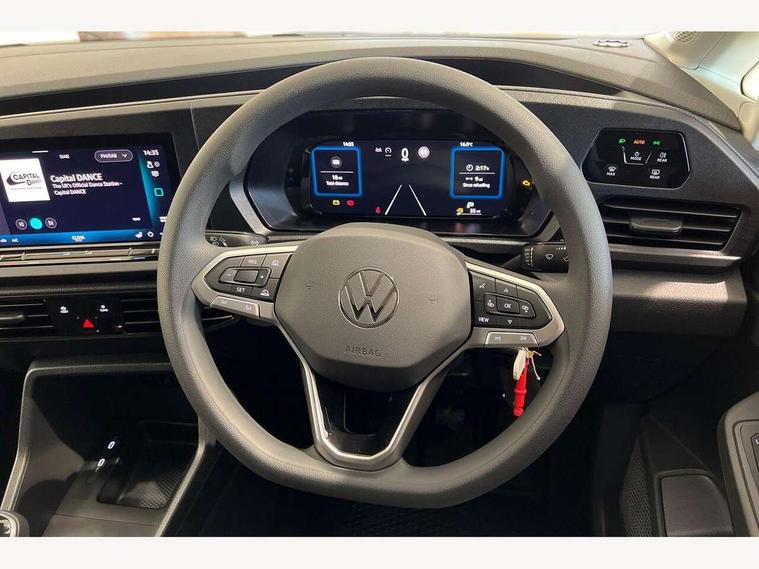 Bluetooth - Mobile phone interface, Car2X technology, Driver alert system, eCall emergency system, Intelligent Speed Assist, Lane assist, Seatbelt warning indicator, Service indicator, Start-stop system with regenerative braking, 2 USB interfaces type C in dashboard, DAB Radio, We Connect Basic Preparation, Automatic hazard light activation under emergency braking, Black front and rear bumpers, Electric front windows, Heat insulating windscreen, Roof rail preparation, Windscreen wiper with variable intermittent delay and wash-wipe system, Dimming breakaway interior rear view mirror, Electronically controlled heating system, Interior light in headliner incorporting LED technology, Lockable glove compartment door with light, Manual heating and ventilation system, Manual height adjustment for front seats, Reach and rake adjustable steering column, Six lashing points for securing loads, 3-point seat belts in front, with pretensioner and height adjustment, Driver and front passenger airbag with front passenger airbag deactivation, Tyre pressure monitoring system, Anti-theft alarm system, interior monitoring, backup horn, and towing protection, Electronic engine immobiliser, Remote central locking with deadlocks, interior locking, Anti locking braking system (ABS), Automatic post collision braking system, Autonomous Emergency Braking Front Assist with Pedestrian Monitoring, Brake assist, Diesel particulate filter, Electric parking brake with auto hold function, Electronic brake force distribution (EBD), Electronic differential lock (EDL), Electronic stabilisation programme (ESP), Engine drag torque control (MSR), Hill hold assist, Traction control system (TCS), Decorative beige birch vein inserts, Full size wheel trims,