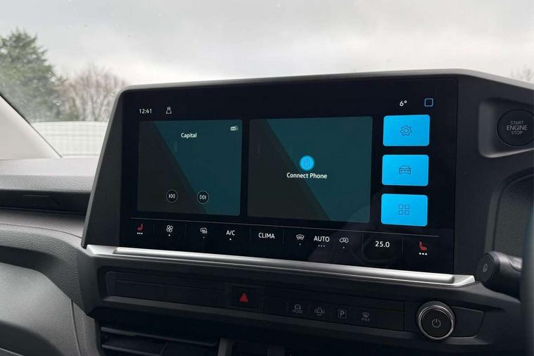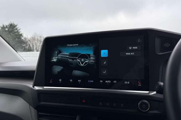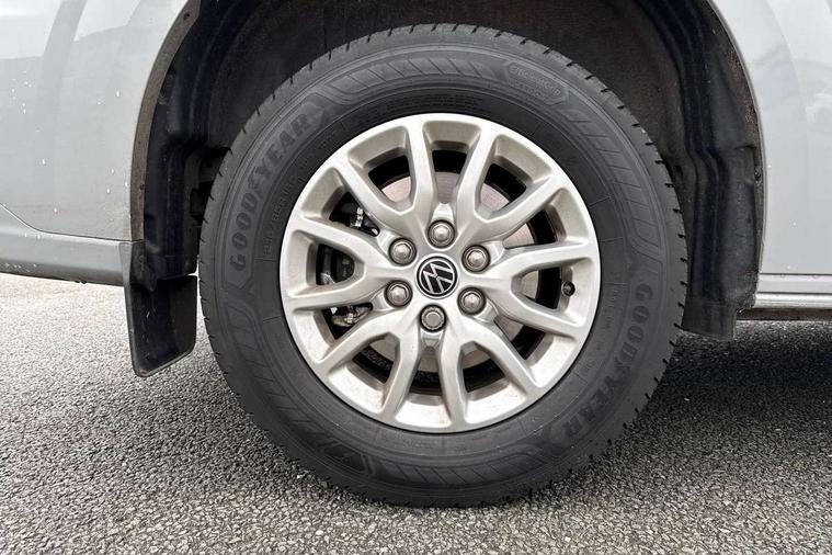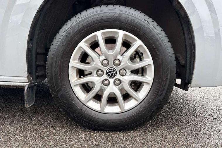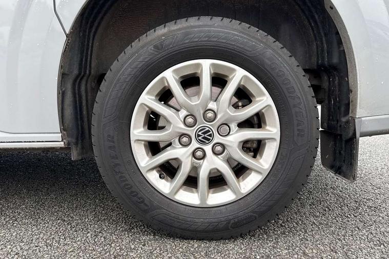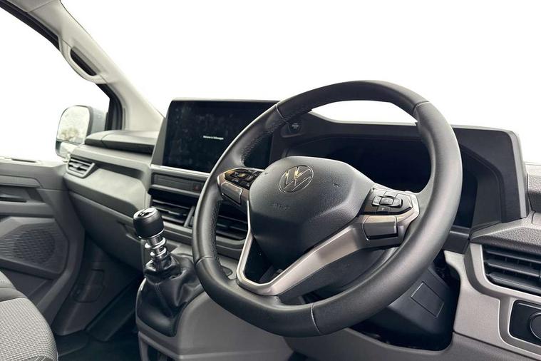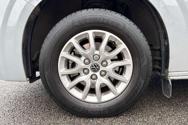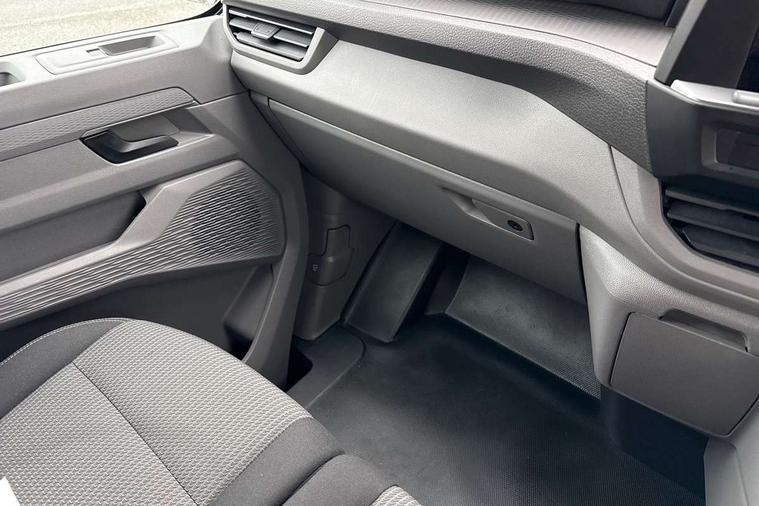 12" digital drivers display, 13" touchscreen infotainment display with wireless app connect and DAB radio, 5G Modem, Adaptive cruise control, Apple CarPlay and Android Auto, Dynamic road sign display, eCall emergency system, Electromechanical speed sensitive power steering, height and longitudinally adjustable steering column, Lane and blind spot assist with exit warning system, Preparation of VW connect and connect plus, Wireless mobile phone charging, Wrong way driver warning, Body colour bumpers, Body coloured door handles, Body coloured door mirrors, Body coloured radiator grille, Electrically heated, adjustable and folding door mirrors, Heat reflecting side window glass, Mud flaps front and rear, Rear Transporter nameplate in black grained decorative trim, Vehicle opening configuration 1x 1st row of seats, 2x all doors, 12V outlet in centre console and 12V outlet on rear right D-pillar, 2x 15-W USB data/charging ports in dashboard and 1x USB-C, 1x USB-A center bottom, 2x LED lights in load compartment, 3x additional super bright LED lights in load compartment, 4 way height and tilt adjustable head restraints, 5 additional USB-C charging ports, Black plastic scuff plate for sliding door in cargo without illumination, Cabin interior lighting, Glasses compartment in driver side roof, Grab handle on A-pillar passenger side, Illuminated lockable glovebox, Lashing rings for reinforced floor covering, Leatherette gear lever, Narrow centre console with cup holder and compartment for mobile phone, Overhead storage compartment, Rubber floor covering in cab, Striped fabric upholstery, Without passenger seats in load compartment, Driver and front passenger airbag with front passenger airbag deactivation, Dual tone horn, Front and curtain airbags for driver and front passenger, Seat belt pretensioner for driver seat, Anti theft alarm system with interior monitoring in cab, backup horn and towing protection, Electronic immobiliser, Lockable wheel bolts, Preparation for alcohol ignition interlock, 5+ Promise, Alternator - 230A, Electromechanical brake booster, Electronic stability control, ABS, ASR with deactivation button, hill start assist and brake assist system,