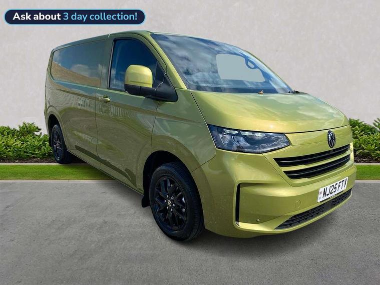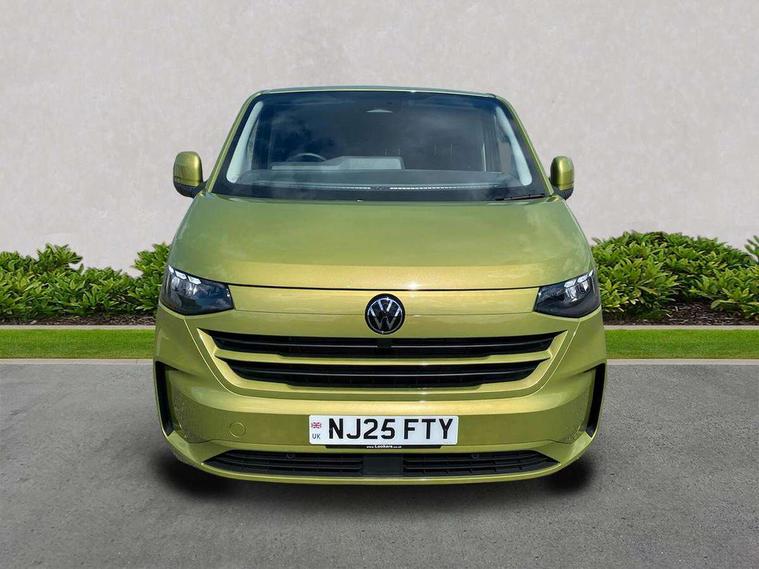 12" digital drivers display, 13" touchscreen infotainment display with wireless app connect and DAB radio, 5G Modem, Adaptive cruise control, Apple CarPlay and Android Auto, Dynamic road sign display, eCall emergency system, Electromechanical speed sensitive power steering, height and longitudinally adjustable steering column, Lane and blind spot assist with exit warning system, Preparation of VW connect and connect plus, Traffic jam assist, Wireless mobile phone charging, Wrong way driver warning, Body colour bumpers, Body coloured door handles, Body coloured door mirrors, Body coloured radiator grille, Electrically heated, adjustable and folding door mirrors, Heat reflecting side window glass, Mud flaps front and rear, Rear Transporter nameplate in black grained decorative trim, Vehicle opening configuration 1x 1st row of seats, 2x all doors, 12V outlet in centre console and 12V outlet on rear right D-pillar, 2x 15-W USB data/charging ports in dashboard and 1x USB-C, 1x USB-A center bottom, 2x LED lights in load compartment, 3x additional super bright LED lights in load compartment, 4 way height and tilt adjustable head restraints, 5 additional USB-C charging ports, Black plastic scuff plate for sliding door in cargo without illumination, Cabin interior lighting, Gear selector lever on steering wheel, Glasses compartment in driver side roof, Grab handle on A-pillar passenger side, Illuminated lockable glovebox, Lashing rings for reinforced floor covering, Narrow centre console with cup holder and compartment for mobile phone, Overhead storage compartment, Rubber floor covering in cab, Striped fabric upholstery, Without passenger seats in load compartment, Driver and front passenger airbag with front passenger airbag deactivation, Dual tone horn, Front and curtain airbags for driver and front passenger, Seat belt pretensioner for driver seat, Anti theft alarm system with interior monitoring in cab, backup horn and towing protection, Electronic immobiliser, Lockable wheel bolts, Preparation for alcohol ignition interlock, 5+ Promise, Alternator - 230A, Electromechanical brake booster, Electronic stability control, ABS, ASR with deactivation button, hill start assist and brake assist system,