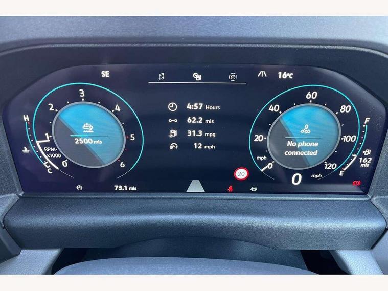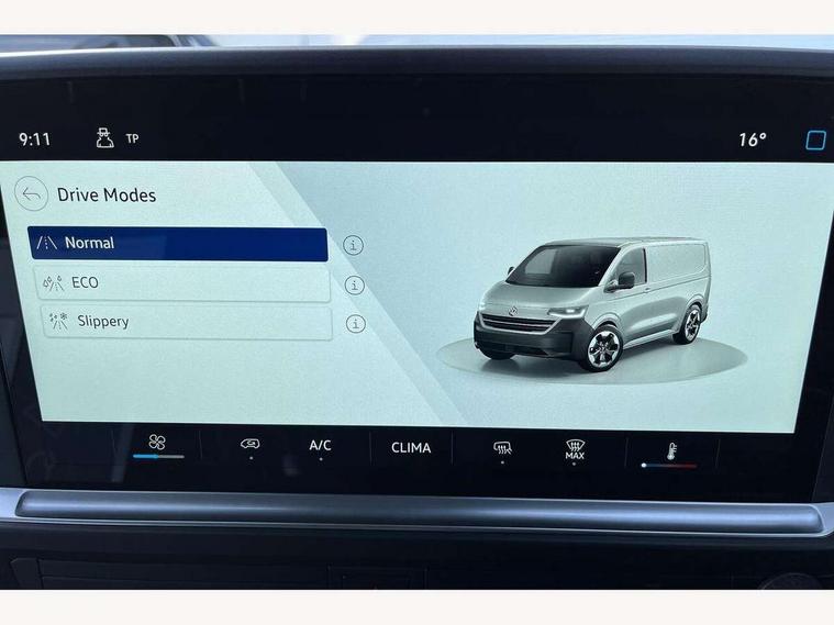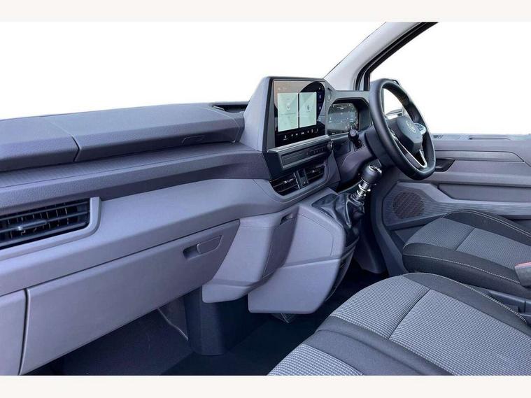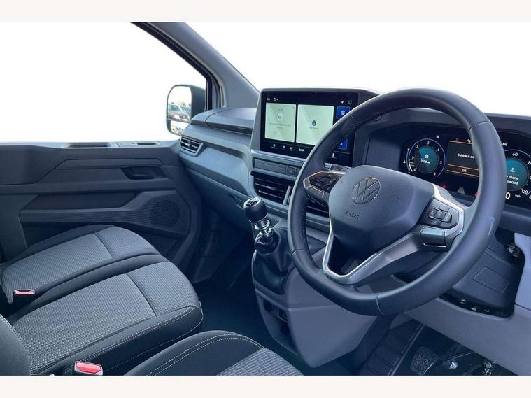 12" digital drivers display, 13" touchscreen infotainment display with wireless app connect and DAB radio, 5G Modem, Apple CarPlay and Android Auto, Cruise control, Dynamic road sign display, eCall emergency system, Electromechanical speed sensitive power steering, height and longitudinally adjustable steering column, Lane assist, Preparation of VW connect and connect plus, Wrong way driver warning, 4 speakers - 2x dashboard, 2x cab doors, Body coloured door handles, Heat reflecting side window glass, Mud flaps front and rear, Rear Transporter nameplate in black grained decorative trim, Vehicle opening configuration 1x 1st row of seats, 2x all doors, 2x 15-W USB data/charging ports in dashboard and 1x USB-C, 1x USB-A center bottom, 2x LED lights in load compartment, 3 spoke leather wrapped multi function steering wheel, 4 way height and tilt adjustable head restraints, Black plastic scuff plate for sliding door in cargo without illumination, Cabin interior lighting, Lashing rings for reinforced floor covering, Leatherette gear lever, Narrow centre console with cup holder and compartment for mobile phone, Overhead storage compartment, Roof grab handle on front passenger side, Rubber floor covering in cab, Striped fabric upholstery, Without passenger seats in load compartment, Driver and front passenger airbag with front passenger airbag deactivation, Dual tone horn, Front and curtain airbags for driver and front passenger, Seat belt pretensioner for driver seat, Anti theft alarm system with interior monitoring in cab, backup horn and towing protection, Electronic immobiliser, Preparation for alcohol ignition interlock, 5+ Promise, Alternator - 230A, Electronic stability control, ABS, ASR with deactivation button, hill start assist and brake assist system,