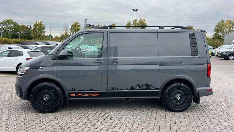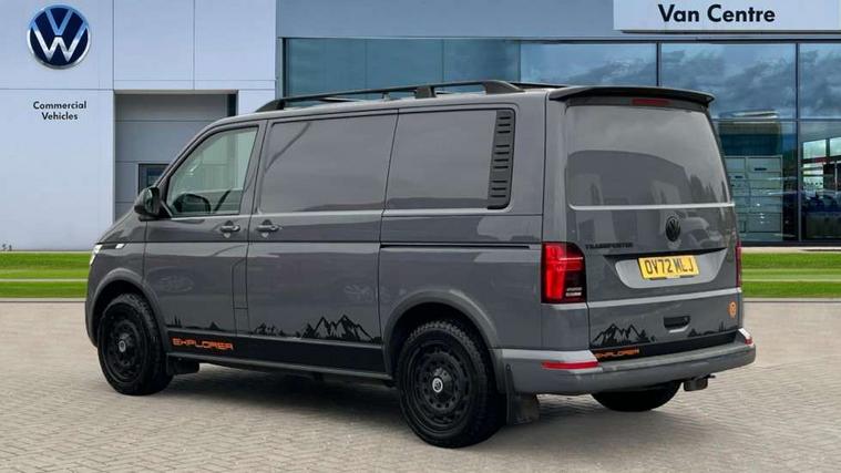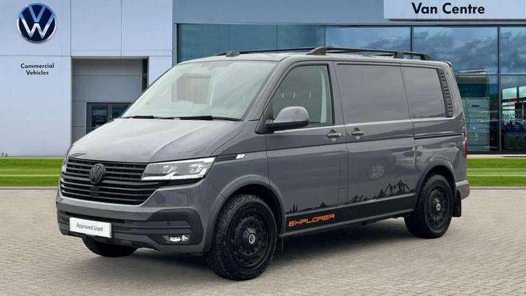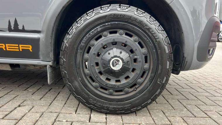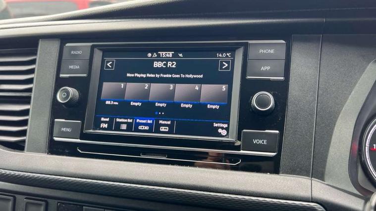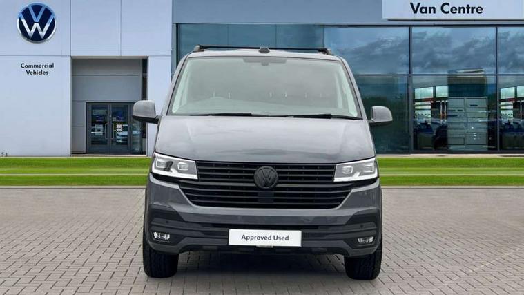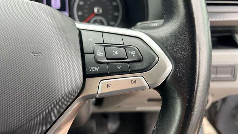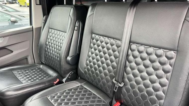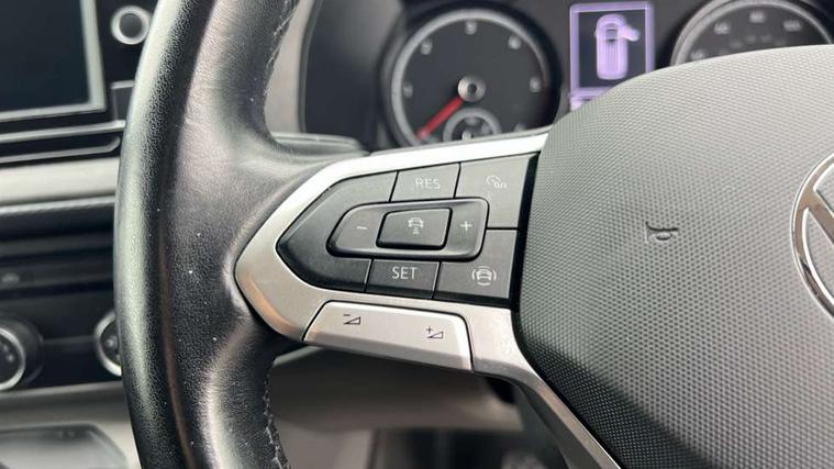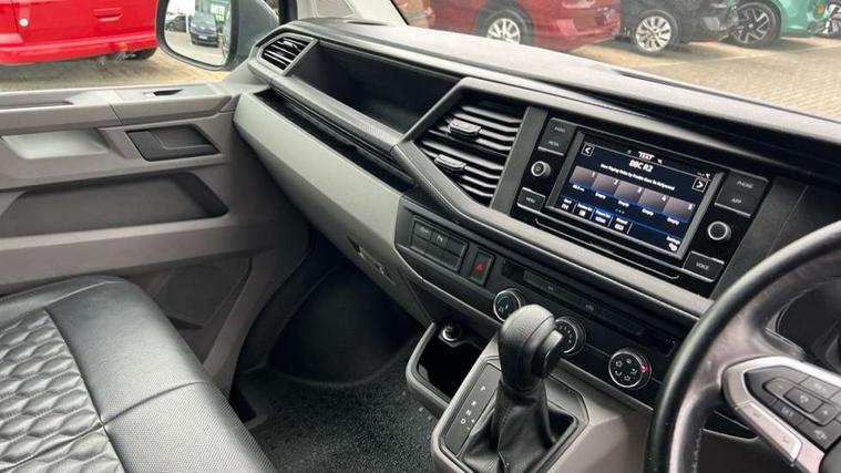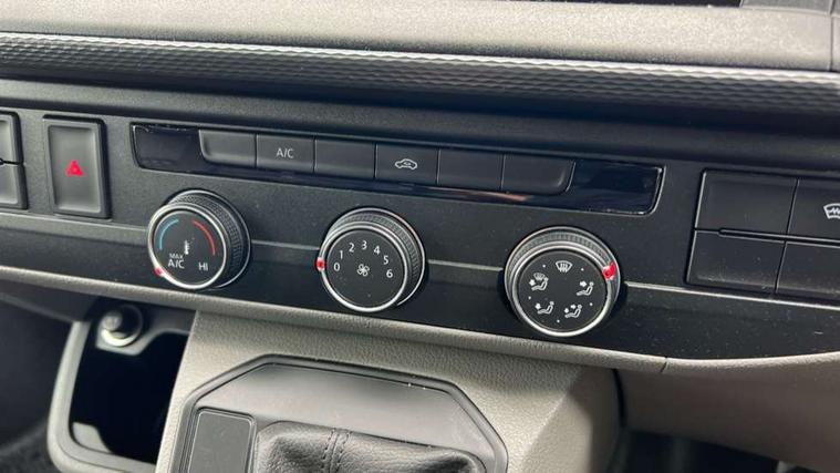 Adaptive cruise control, Cross wind assist, Dimmable illuminated instruments, Driver alert with Multi-function display plus, eCall emergency system, Forward collision warning front assist with autonomous emergency braking, Mobile phone interface, Multi function display plus with black and white display, 2 USB interfaces type C in dashboard, 4 speakers with 2 tweeters and 2 woofers, Composition colour radio with 6.5" touchscreen, Digital radio reception (DAB+), Volkswagen app connect, Automatic headlight control, leaving home and manual coming home feature, Closing rear wing door with unlatching from the inside, Front fog lamps with cornering light, Heat insulating glass (green) in cab and passenger/load compartment, Heated front windscreen, Left convex exterior mirror, Power folding adjustable door mirrors with separately heated, Radiator grille with 2 chrome trims, Rear wing doors without window apertures, Right convex exterior mirror, Transporter nameplate on the rear fender, Windshield wiper intermittent control with rain sensor for windshield wipers, 3 spoke leather wrapped multi function steering wheel, Auto dimming breakaway interior rear view mirror, Comfort headliner in cab, hardboard roof trim in passenger and load compartment, Dust/pollen filter, Front and rear left without window closed side panel in load compartment, Front seats on the right in 1st row of seat, Glove compartment with illumination, Heavy duty tool kit and jack, High partition, Interior plastic loading edge protection, LED Interior lighting in load and passenger compartment, Manual adjustable lumbar support for right single seat in 1st row seats, Refrigerant R134a, Standard lower part dashboard in palladium, Storage compartments on cab seats and reading light, Without right side window apertures in passenger and load compartment, Comfort pack - Transporter, Exterior pack without fog light- Transporter, Non smoker pack - Transporter, 3 point height adjustable seat belts on outer seats cab with electric pretensioners, Driver and front passenger airbag with front passenger airbag deactivation, Warning buzzer and light for driver and front passenger seat belt not fastened, Without child safety lock in passenger compartment, Anti theft alarm system with interior monitoring in cab, backup horn and towing protection, Lockable wheel bolts, 16" chassis with 16" brake system, Diesel particulate filter, Electronic stability control, ABS, ASR with deactivation button, hill start assist and brake assist system, Start/stop system with regenerative breaking, 16" Clayton alloy wheels,