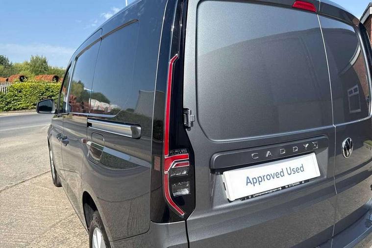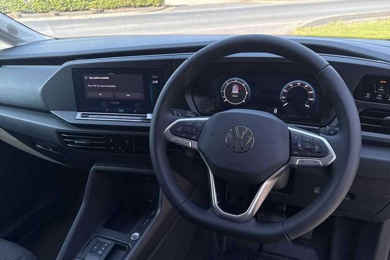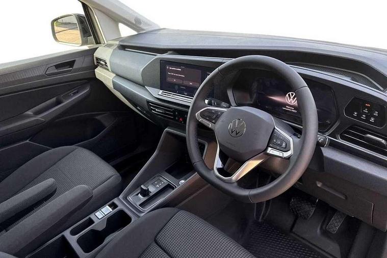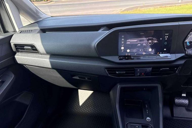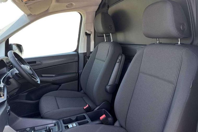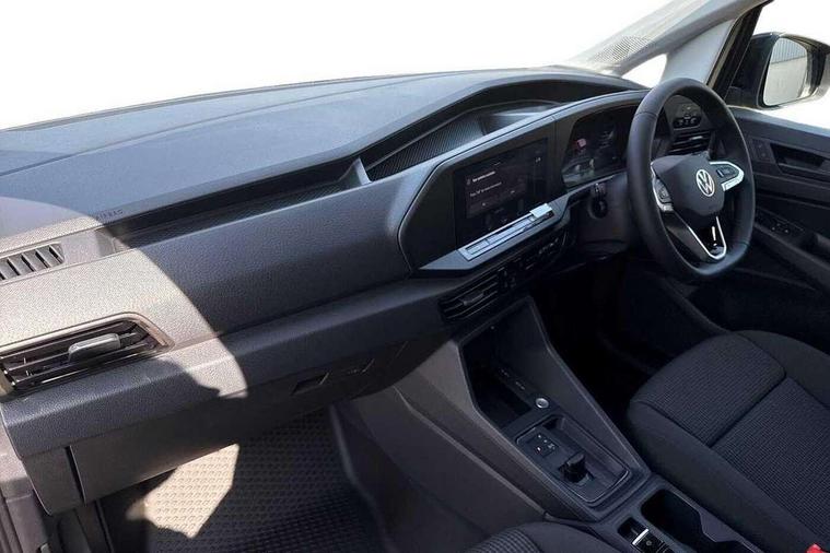 Bluetooth - Mobile phone interface, Car2X technology, Driver alert system, eCall emergency system, Intelligent Speed Assist, Lane assist, Seatbelt warning indicator, Service indicator, Start-stop system with regenerative braking, 2 USB interfaces type C in dashboard, App-Connect - Wireless for Apple CarPlay, DAB Radio, We Connect Plus Preparation, Automatic hazard light activation under emergency braking, Black painted exterior mirror housings, body-colored door handles and Silver sliding door rail, Body coloured bumpers, Electric front windows, LED rear combination lights, LED rear tail lights, Roof rail preparation, Windscreen wiper with variable intermittent delay and wash-wipe system, Dimming breakaway interior rear view mirror, Electronically controlled heating system, ergoComfort seats for driver, Interior light in headliner incorporting LED technology, Lockable glove compartment door with light, Manual heating and ventilation system, Manual height adjustment for front seats and seat cushion inclination and depth adjustment on drivers seat, Multi function leather steering wheel, Power-adjustable lumbar support for drivers seat, Reach and rake adjustable steering column, Six lashing points for securing loads, Steering wheel paddle shift, Storage compartments under driver and front passenger seats, Sun visors with mirror, airbag label on front passenger sun visor, Winter pack plus - Caddy, 3-point seat belts in front, with pretensioner and height adjustment, Driver and front passenger airbag with front passenger airbag deactivation, Tyre pressure monitoring system, Anti-theft alarm system, interior monitoring, backup horn, and towing protection, Electronic engine immobiliser, Remote central locking with deadlocks, interior locking, Anti locking braking system (ABS), Automatic post collision braking system, Brake assist, Diesel particulate filter, Electric parking brake with auto hold function, Electronic brake force distribution (EBD), Electronic differential lock (EDL), Electronic stabilisation programme (ESP), Engine drag torque control (MSR), Hill hold assist, Traction control system (TCS), Decorative beige birch vein inserts, Wheel bolts with anti-theft protection (unlockable),
