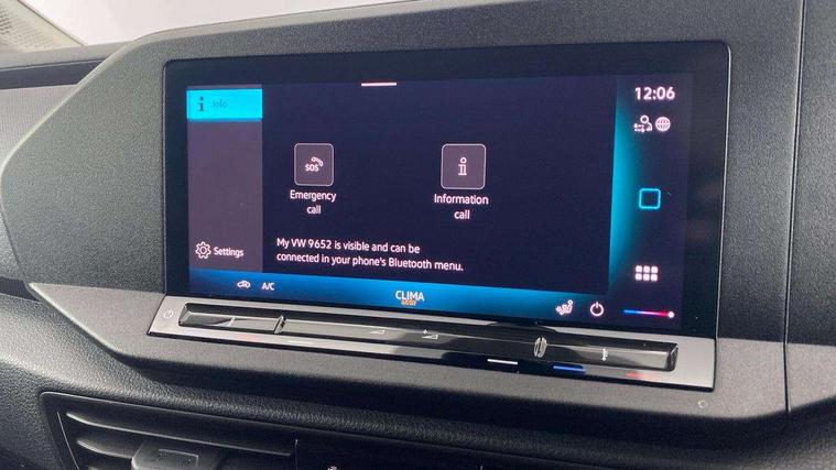 Bluetooth - Mobile phone interface, Car2X technology, Driver alert system, eCall emergency system, Intelligent Speed Assist, Lane assist, Seatbelt warning indicator, Service indicator, Start-stop system with regenerative braking, 2 USB interfaces type C in dashboard, DAB Radio, We Connect Basic Preparation, Automatic hazard light activation under emergency braking, Black front and rear bumpers, Electric front windows, Heat insulating windscreen, Roof rail preparation, Windscreen wiper with variable intermittent delay and wash-wipe system, Dimming breakaway interior rear view mirror, Electronically controlled heating system, Interior light in headliner incorporting LED technology, Lockable glove compartment door with light, Manual heating and ventilation system, Manual height adjustment for front seats, Reach and rake adjustable steering column, Six lashing points for securing loads, 3-point seat belts in front, with pretensioner and height adjustment, Driver and front passenger airbag with front passenger airbag deactivation, Tyre pressure monitoring system, Anti-theft alarm system, interior monitoring, backup horn, and towing protection, Electronic engine immobiliser, Remote central locking with deadlocks, interior locking, Anti locking braking system (ABS), Automatic post collision braking system, Autonomous Emergency Braking Front Assist with Pedestrian Monitoring, Brake assist, Diesel particulate filter, Electric parking brake with auto hold function, Electronic brake force distribution (EBD), Electronic differential lock (EDL), Electronic stabilisation programme (ESP), Engine drag torque control (MSR), Hill hold assist, Traction control system (TCS), Decorative beige birch vein inserts, Full size wheel trims,