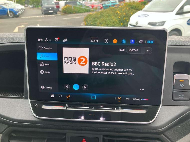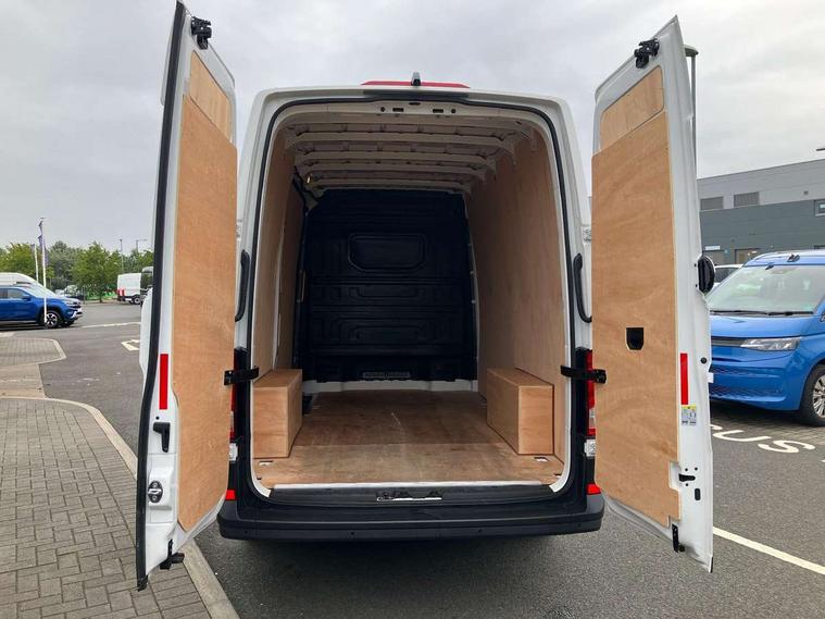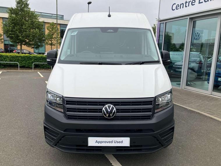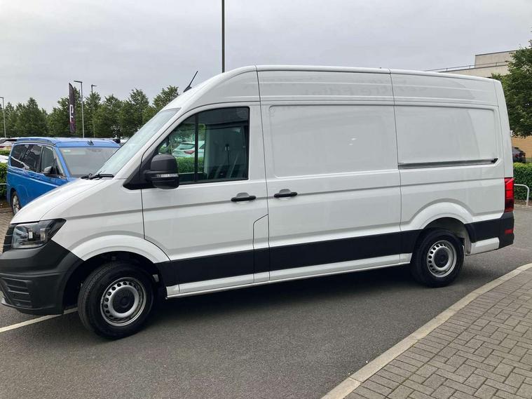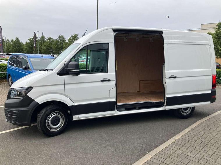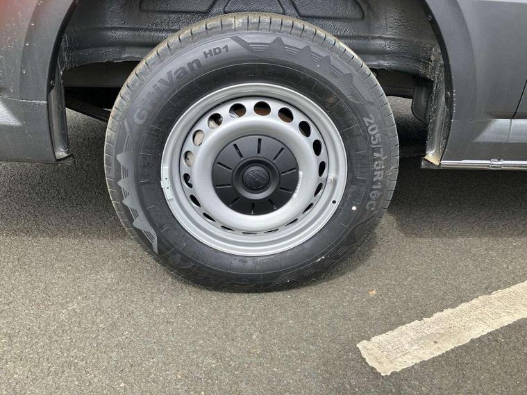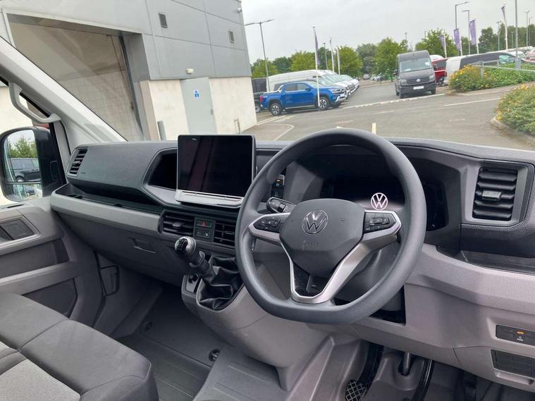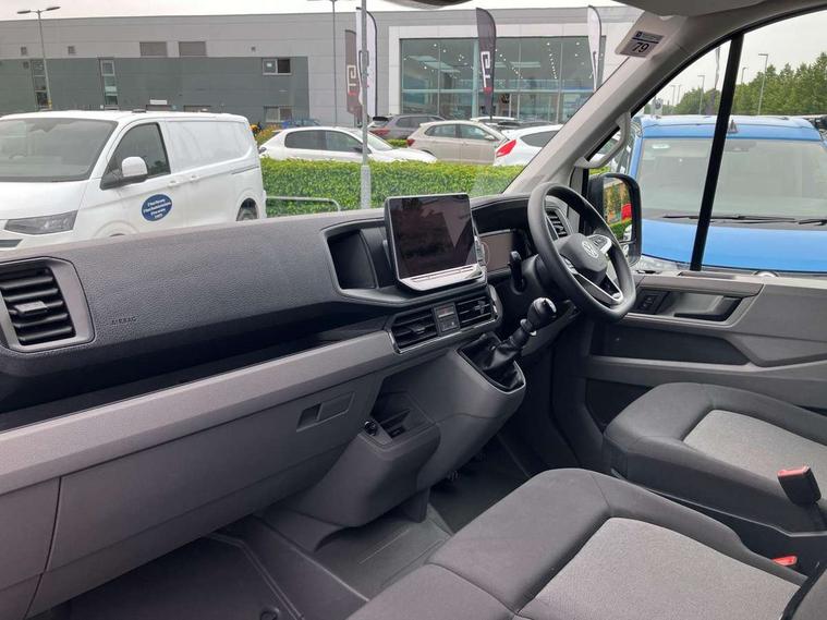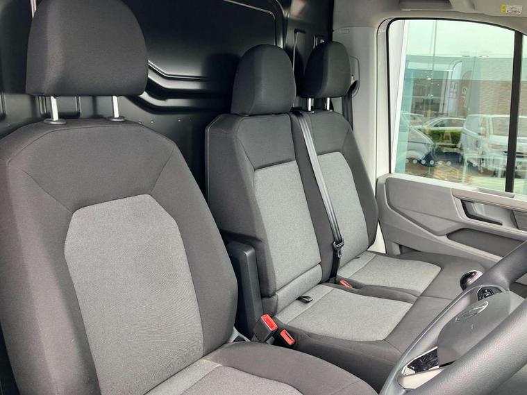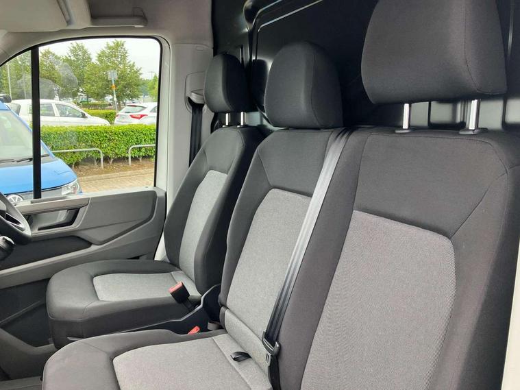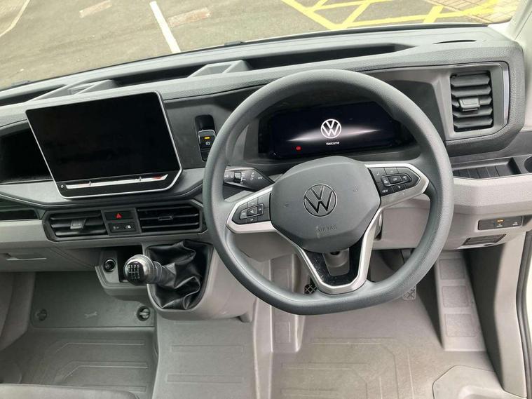 Bluetooth, Digital clock, Driver alert system, E-call + We connect basic preparation, Front and rear parking sensors, Instrument cluster, Lane keeping assist, Lights on warning buzzer, Locking fuel cap, Multi-function Display Plus, Rev counter, Service indicator, Speedometer, Voice control system, Composition media with 6.5" with we connect plus prep, 4 speaker, multifun display plus, USB, mob interface, app con, "We connect function", DAB Radio, Auto low beam mode, Leaving home function and manual coming home function, Black unpainted plastic front bumper, Cab doors, Convex and wide angle mirror, Driver seatbelt warning light, Electric windows, Heat insulating glass, Indicators in front door mirrors, Manually adjustable door mirrors, One towing eye in front, Special identification plate, Unpainted radiator grille, Air recirculation system, Ashtray, Centre console storage tray, CFCU preparation, Charcoal filter, Document holder on centre console, Drinks holders, Electromechanical Servotronic steering, Electronically controlled heating system, Fully adjustable suspension type driver seat, Height adjustable head restraints, Height and reach adjustable steering wheel, Illuminated glove compartment with lockable lid, Interior light, including 2 reading lights, Interior light, switchable by door, Jack and tool kit, Multifunction steering wheel, Preparation for interface for external use with terminal block, Storage compartments in doors and in step, right, Storage tray on dashboard, Two 12V outlets in the cab (in the dashboard), Without rear side trim panel passenger load compartment, Non-smokers pack - Crafter, 3 point inertia reel belt on all seats, Automatic hazard light with emergency braking, Crosswind assist, Driver and front passenger airbag with front passenger airbag deactivation, Height adjustable seatbelts for outer cab seats, 1 rigid key, Engine immobiliser, ABS, Automatic post collision braking system, EBA, EBD, EDL, ESP, Front disc brakes, HBA, Hill start assist, Parking brake - hill hold control, Start and stop system with regenerative braking, TCS, Hub cap covers,