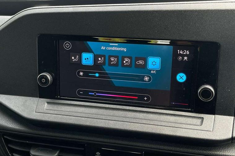 Bluetooth mobile phone interface, Driver alert system, Dynamic road sign display, eCall emergency call system, Gesture control, Lane assist, Multi function display, On board computer, Service interval indicator, Start/stop system with regenerative braking, Tailgate with window, We connect basic preparation, Diesel particulate filter, Electronic differential lock, 2 Type C USB, Anti dazzle rear view mirror, Automatic hazard lights activation under emergency braking, Black door mirrors, Body colour bumpers, Body coloured door handles, Electric front windows, Fixed side window in load/passenger compartment, Heated rear window, Rain sensor, Rear side wing doors, Rear window wiper and washer system with intermittent control, Roof rails preparation, Silver sliding door rail, Third high level brake light, Twin rear sliding doors, Windscreen wiper with variable intermittent delay and wash wipe system, 12V socket in passenger compartment, 3 seat bench in 2nd row, 5 standard interior lights in passenger compartment, Air conditioning - Climatic airconditioning system - manual in cab, Carpet floor covering in cab, Carpet floor covering in passenger compartment, Centre console with 2 cupholders, Double grid cloth upholstery, Electrically controlled heating system, Front head restraints, Front passenger seat, Height adjustable head restraints, Illumination lockable glovebox compartment, Interior light in headliner incorporating LED technology, Isofix on 2nd row outer seats, Manual front seats with height adjustment, Overhead storage compartment, Reach and rake adjustable steering column, Rear head restraints, Retractable luggage compartment cover, Seat occupied recognition for front seats, Sliding trunk cover, Split folding/removable rear seat, Sunvisors with vanity mirrors, 3-point seat belts in front with pretensioner and height adjustment, 3x3 point rear seatbelts, Anti-lock braking system (ABS), Automatic post collision braking system, Brake assist, Child locks on rear doors, Curtain airbag for outer seats in rear, Driver and front passenger airbag with front passenger airbag deactivation, Electric parking brake with auto hold function, Electronic brake force distribution, Engine drag torque control, ESP, First aid kit with warning triangle and safety vest, Front Assist with pedestrian monitoring and city emergency braking system, Front centre airbag, Power operated child safety locks, Seat belt warning if unfastened, front and rear, Side and curtain airbag for driver and front passenger, Traction control system (TCS), Tyre pressure loss indicator, Anti theft alarm system with interior monitoring, backup horn and towing protection, Electronic engine immobiliser, Decorative inserts birch vein,