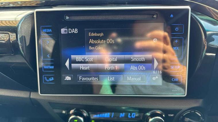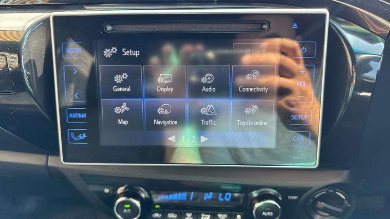 4.2" Multi information display, 7" Multimedia display, Adaptive cruise control, Fuel heater, Lane departure warning system, Lights on warning buzzer, PAS, Pre collision system with pedestrain detection, Pre-collision system with pedestrian detection, Rear parking sensor, Rear view camera, Road sign assist, Static guidelines on rear view camera, Tachometer, Touch 2 with GO navigation system, 6 speakers, Digital radio (DAB), Touch 2 audio + Bluetooth + MP3 Connectivity, USB and auxiliary socket, Auto Headlights, Body coloured front bumper, Chrome door handles, Chrome door mirrors, Chrome effect scuff plates, Chrome fog light surrounds, Chrome headlight surround, Chrome plated rear bumper, Chrome side bar with steps, Chrome trim on radiator grille, Dusk sensitive lights, Electric front windows with one touch drivers window, Electrically retractable door mirror, Electronic headlamp levelling, Emergency brake light assist (EBS), Follow me home headlights, Front fog lights, Green tinted glass, Headlight cut-off reminder, Headlight washers, Heated rear window, Heated/electric door mirrors with integrated indicators, Laminated rear window privacy glass, LED Daytime running lights, LED headlights, Matte black side bars, Mud flaps front and rear, Rear fog lights, Trailer sway control, Underbody protection cover, Variable front wipers, 220V power socket, Automatic air conditioning, Carpet covered floor, Centre console coolbox, Centre console with lid, storage and armrest, Cooler in upper glove box, Heated leather seats, Inner load hooks on cargo deck, Leather steering wheel with mounted audio controls and leather gear knob, Leather upholstery, Locking glovebox, Power adjustable drivers seat, Rear seat tip-up function, Tilt adjustable steering wheel, Child proof rear door locks, Driver and passenger airbag, Driver knee airbag, Front passenger airbag detector, Front passenger airbag on/off switch, Front seatbelt pre-tensioners + force limiters, Isofix child seat preparation, Rear seatbelt pre-tensioners with load limiters, Side and curtain airbags, Immobiliser, Keyless entry and start, Lockable tailgate, Remote central locking, 2 12v sockets, ABS, Brake assist, Downhill Assist Control (DAC), EBD, Hill start assist, Load sensing proportioning system, Rear differential lock with auto disconnect, Stop/start function, Traction control, Vehicle stability control, Full size spare wheel, Highway terrain tyres,