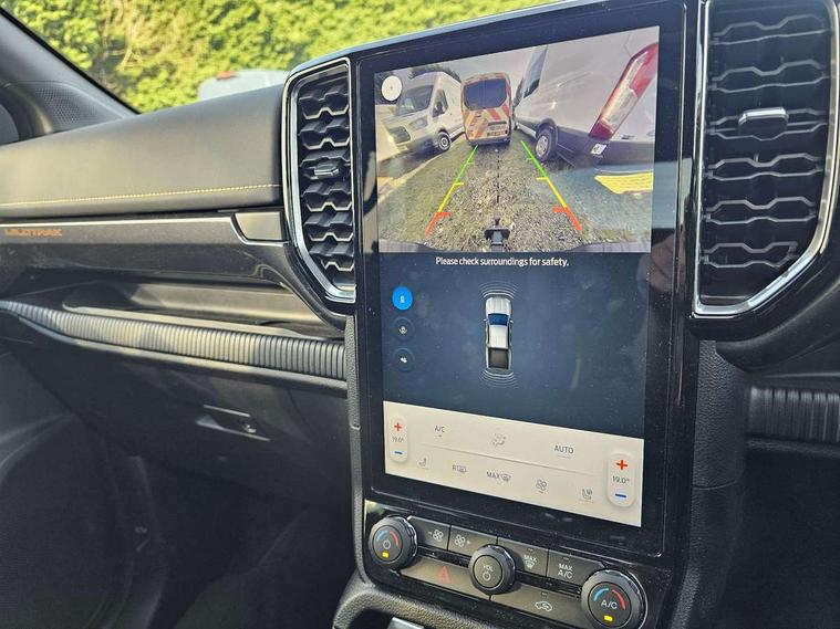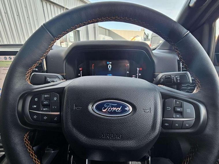 AEB and ISA, Conventional gearshift, Electric power assisted steering, Evasion steer assist, Ford pass connect embedded modem, Ice warning, Partial TFT/LCD instrument cluster, Passenger side roof mounted grab handle, Pre collision assist, Road departure warning, Traffic sign recognition, Trip computer, 360 lighting, Accent colour exterior mirrors, Accent colour front bumper, Accent colour grille, Accent colour rear bumper, Acoustic laminated windscreen, Assisted conventional tailgate, Automatic headlights, Black rear underrun bar, Black wheel molding, Body coloured door handles, Daytime running lights, Dual power heated fold back door mirror with pud lamps, E-marked glass, Electric rear window defroster, Electric windshield defroster, Electrochromic interior mirror, Fog lamp bezel, Front fender painted gill, Front headlamp leveling, Front splash guard, Front towing hooks, High mounted stop lamp, Ladder rack, LED Front fog lamp, Level 2 LED headlamps, Level 2 LED taillamps, Manual liftgate, Narrow bodyside moulding and insert, Non locking capless fuel fill, Outside thermometer, Plastic cab roll over bar, Power front windows with one touch up/down, Privacy glass, Rain sensitive windshield wipers, Rear bumper extension, Rear bumper step, Rear fog lamps, Rear mudflaps, Rear splash guard, Roof rails, Self coloured decklid handles, Side step - Bar only, Side step with bright finish inserts, Silver matte step bar, Standard green glass windscreen, Trailer tow class I, Trailer tow wiring, Under hood engine cover, Cargo light, Console with double lid, Door handles with inside MIC, Driver and passenger sunvisor with mirror, Ebony headliner, Electronic dual zone automatic air conditioning, Fold flat rear seat with durabale surface, Fresh air heater, Glove box lights, Heated steering wheel, LED ambient interior lighting, Less load rest, Less outside tie down hooks, Locking glove box lid, Micro rib embossed leather upholstery, Non woven carpet, Overhead console with dome lamps, Pollen filter, Premium air register, Premium front and rear floor mats, Pull out cup holder, Reach and rake adjustable steering column, Rear floor ducts, Roof storage for driver sunglasses, Steering wheel with multimedia controls, Tie down rails and rope hooks, Washer tank level warn lamp, Body protection pack 2 - Ranger, Front seat pack 7 - Ranger, Functional upgrade pack 3 - Ranger, Heavy duty terrain pack - Ranger, Interior trim pack 13 - Ranger, Rear seat pack 15 - Ranger, Tachograph prep pack - Ranger, Child proof rear door locks, Driver and passenger airbag, Driver knee airbag, Head and thorax airbag in 2nd row, ISOFIX child safety seat attachment, Passenger knee airbag, Tyre pressure sensors, 2 Remote control unit - key fob, Flip key, Immobiliser, Locking wheel lug nut, Passive anti theft system, Passive keyless entry and start system, Power door dead locks, Power tailgate lock, Thatcham alarm system, Thatcham security system, 12V aux rear power point plug, ABS and ESP+, Electric parking brake, Emergency brake assist, Front and rear disc brakes, Loadbox power point plug, Open style rear axle, Soft ride suspension, 18" Aluminium spare wheel, Spare tire lock,