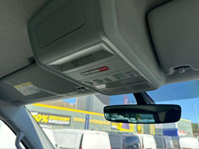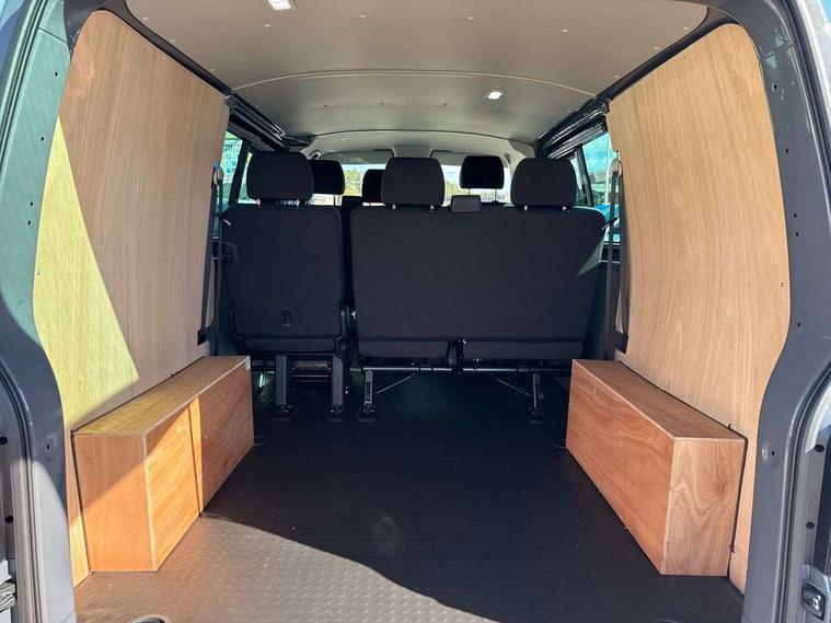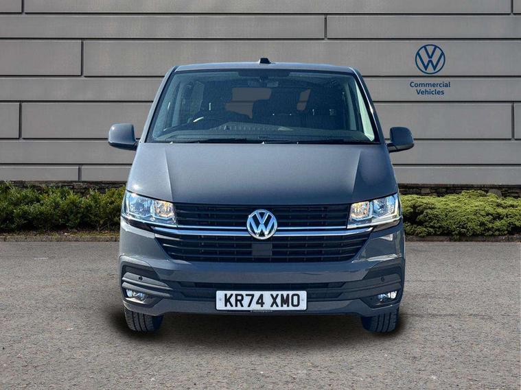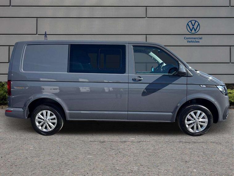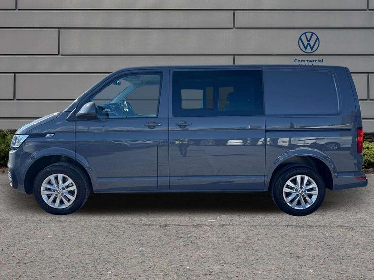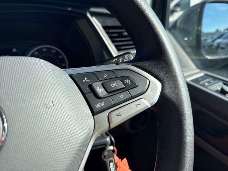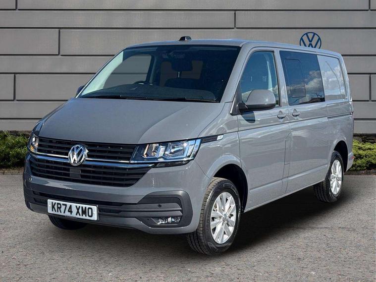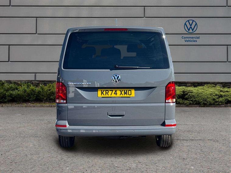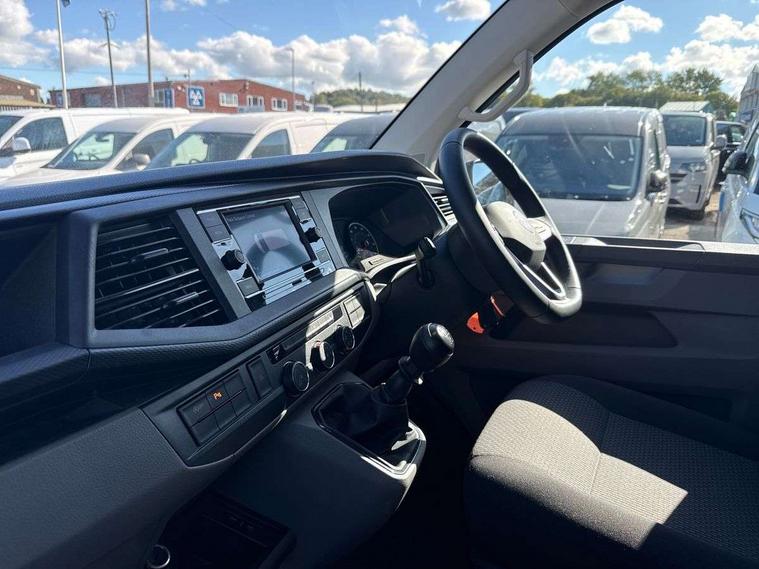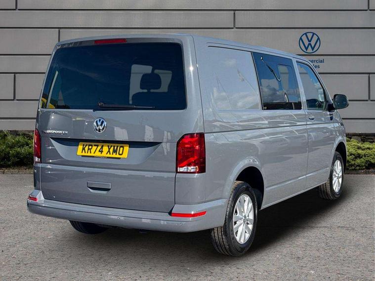 Adaptive cruise control, Child seat anchors ISOFIX and top tether in 2nd row of seats, Cross wind assist, Dimmable illuminated instruments, Driver alert with black and white multi function display plus, eCall emergency system, Forward collision warning front assist with autonomous emergency braking, Headlight range control, Mobile phone interface, Without voice control, 2 USB interfaces type C in dashboard, 4 speakers with 2 tweeters and 2 woofers, Composition colour radio with 6.5" touchscreen, Digital radio reception (DAB+), Volkswagen app connect, Automatic headlight control, leaving home and manual coming home feature, Front fog lamps with cornering light, Green heat insulating glass, Heated front windscreen, Illuminated steps in passenger/load compartment, Left convex exterior mirror, Power folding adjustable door mirrors with separately heated, Privacy glass from the B-pillar and heat-insulating glass in front, Radiator grille with 2 chrome trims, Rear window with heated insulating glass, heated rear window wiper and washer system, Right convex exterior mirror, Tailgate closing with unlatching from the inside, Transporter nameplate on the rear fender, Windshield wiper intermittent control with rain sensor for windshield wipers, Without adhesive film, 3 spoke leather wrapped multi function steering wheel, Additional sound deadening measures in cab and passenger compartment, Auto dimming breakaway interior rear view mirror, Comfort headliner in cab, hardboard roof trim in passenger and load compartment, Dust/pollen filter, Folding grab handles and storage compartments on cab seats, reading light, Front seats on the right in 1st row of seat, Glove compartment with illumination, Heavy duty tool kit and jack, Interior plastic loading edge protection, Lashing rings for load restraint system, LED Interior lighting in load and passenger compartment, Manual height adjustable and lumbar support for driver and single passenger seats, Medium height for vehicles with window aperture hardboard side trim panels in passenger/load compartment, Refrigerant R134a, Standard lower part dashboard in palladium, Without partition, Without seats in 3rd row of seats, Comfort pack - Transporter, Exterior pack without fog light- Transporter, Light and vision pack - Transporter, Non smoker pack - Transporter, 3 point height adjustable seat belts on outer seats cab with electric pretensioners, Driver and front passenger airbag with front passenger airbag deactivation, Power operated child safety lock, Warning buzzer and light for driver seat belt not fastened, Anti theft alarm system with interior monitoring in cab, backup horn and towing protection, Lockable wheel bolts, 16" chassis with 16" brake system, Additional 12V socket, Diesel particulate filter, Electronic stability control, ABS, ASR with deactivation button, hill start assist and brake assist system, Speed limiter, Start/stop system with regenerative breaking, 16" Clayton alloy wheels, Wheel trims,