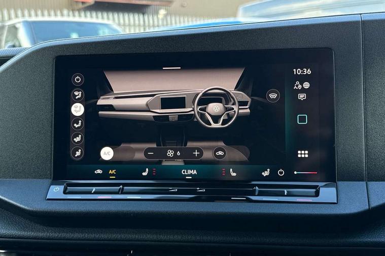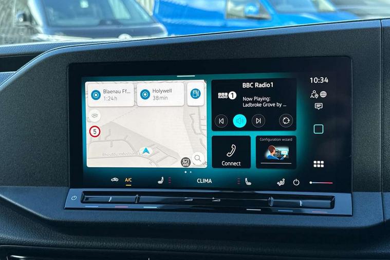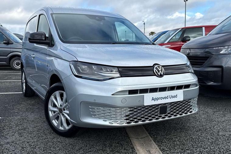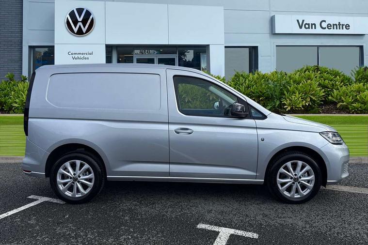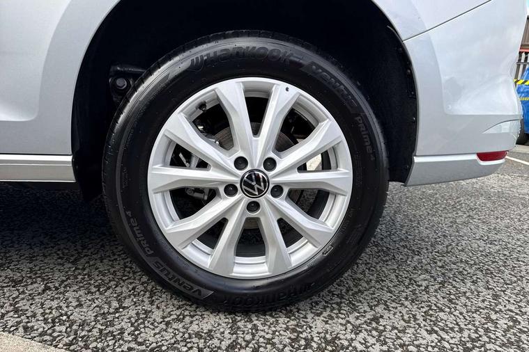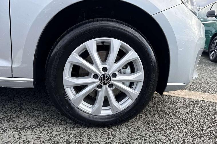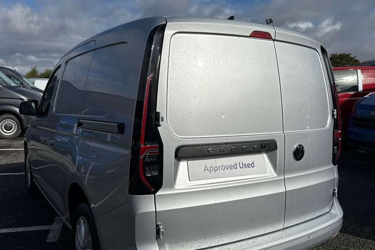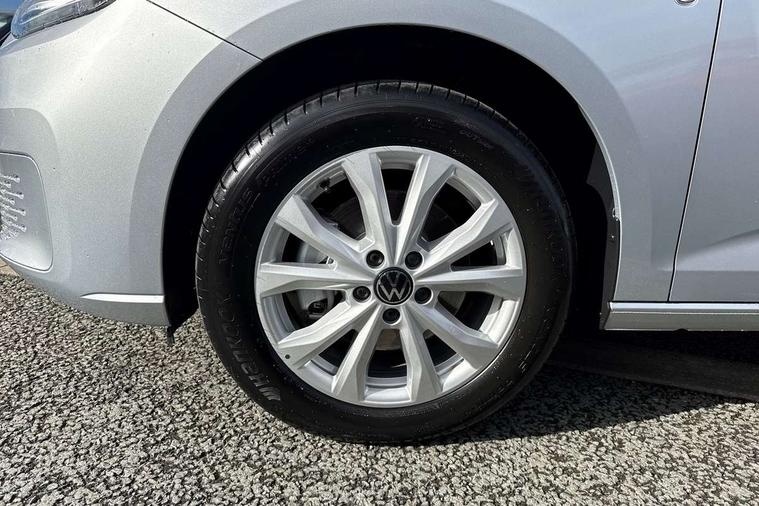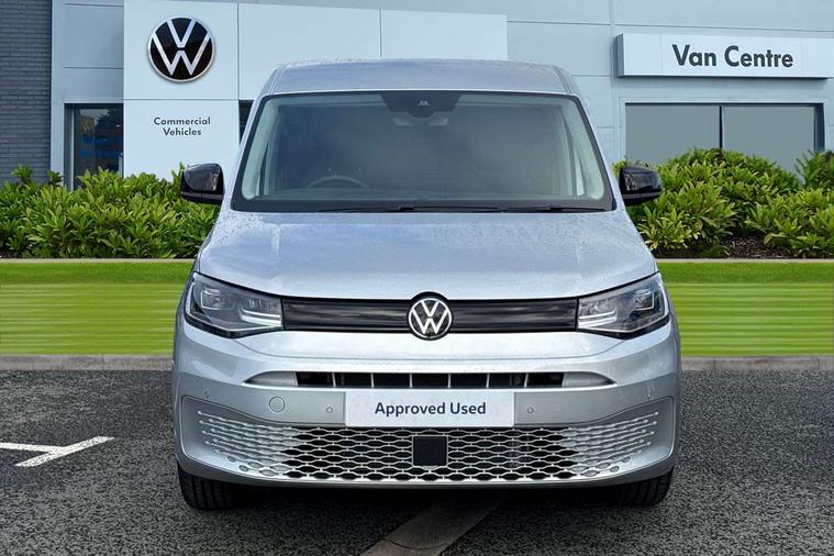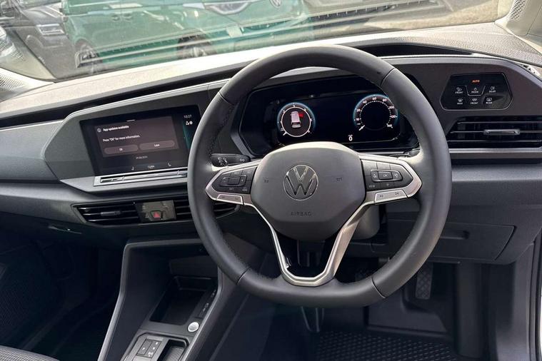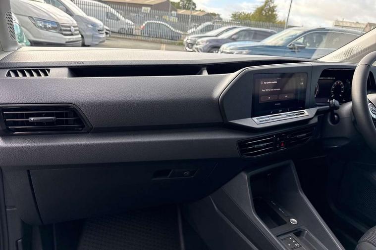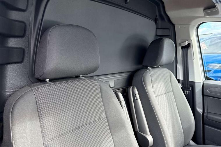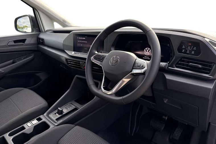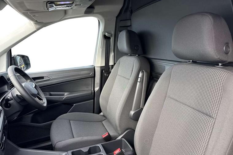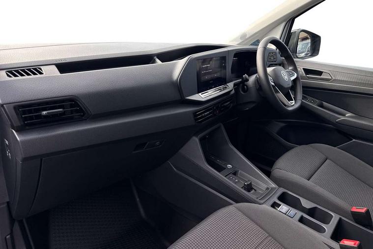 Bluetooth - Mobile phone interface, Car2X technology, Driver alert system, eCall emergency system, Intelligent Speed Assist, Lane assist, Seatbelt warning indicator, Service indicator, Start-stop system with regenerative braking, 2 USB interfaces type C in dashboard, App-Connect - Wireless for Apple CarPlay, DAB Radio, We Connect Plus Preparation, Automatic hazard light activation under emergency braking, Black painted exterior mirror housings, body-colored door handles and Silver sliding door rail, Body coloured bumpers, Electric front windows, LED rear combination lights, LED rear tail lights, Roof rail preparation, Windscreen wiper with variable intermittent delay and wash-wipe system, Dimming breakaway interior rear view mirror, Electronically controlled heating system, ergoComfort seats for driver, Interior light in headliner incorporting LED technology, Lockable glove compartment door with light, Manual heating and ventilation system, Manual height adjustment for front seats and seat cushion inclination and depth adjustment on drivers seat, Multi function leather steering wheel, Power-adjustable lumbar support for drivers seat, Reach and rake adjustable steering column, Six lashing points for securing loads, Steering wheel paddle shift, Storage compartments under driver and front passenger seats, Sun visors with mirror, airbag label on front passenger sun visor, Winter pack plus - Caddy, 3-point seat belts in front, with pretensioner and height adjustment, Driver and front passenger airbag with front passenger airbag deactivation, Tyre pressure monitoring system, Anti-theft alarm system, interior monitoring, backup horn, and towing protection, Electronic engine immobiliser, Remote central locking with deadlocks, interior locking, Anti locking braking system (ABS), Automatic post collision braking system, Brake assist, Diesel particulate filter, Electric parking brake with auto hold function, Electronic brake force distribution (EBD), Electronic differential lock (EDL), Electronic stabilisation programme (ESP), Engine drag torque control (MSR), Hill hold assist, Traction control system (TCS), Decorative beige birch vein inserts, Wheel bolts with anti-theft protection (unlockable),