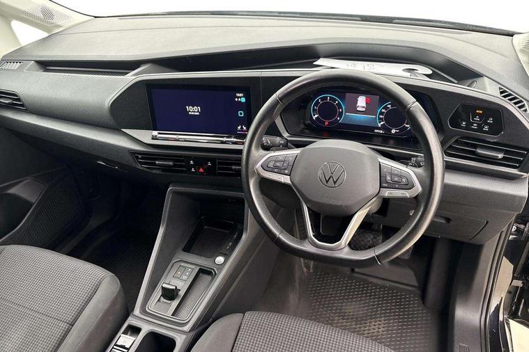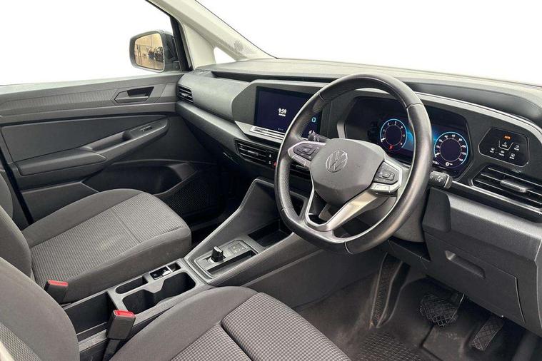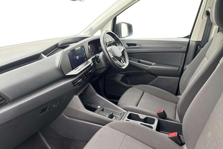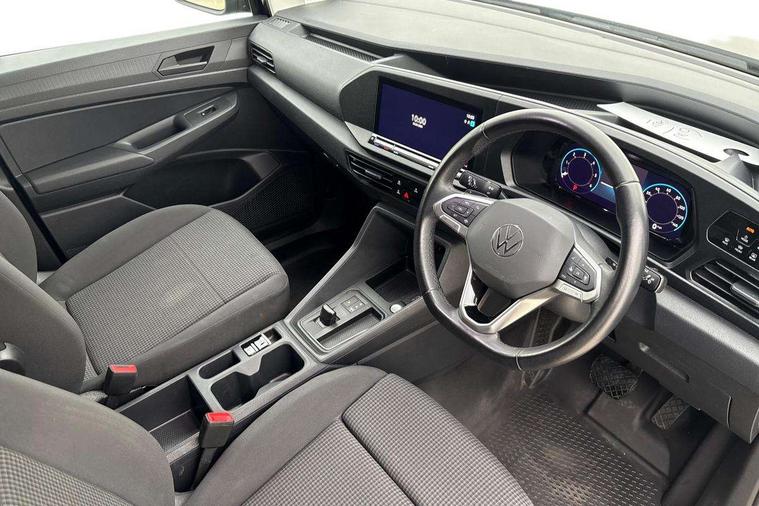 Driver alert system includes drowsiness detection, Emergency call control unit with eCall, Multi-function Display, Seatbelt warning indicator, Service indicator, Start-stop system with regenerative braking, DAB Radio, We Connect Plus Preparation, Automatic hazard light activation under emergency braking, Black painted exterior mirror housings, body-colored door handles and Silver sliding door rail, Body coloured bumpers, Electric front windows, Heated windscreen, LED rear combination lights, LED rear tail lights, Roof rail preparation, Windscreen wiper with variable intermittent delay and wash-wipe system, Electronically controlled heating system, ergoComfort seats for driver, Interior light in headlining, Lockable glove compartment door with light, Manual height adjustment for front seats and seat cushion inclination and depth adjustment on drivers seat, Multi function leather steering wheel, Power-adjustable lumbar support for drivers seat, Reach and rake adjustable steering column, Six lashing points for securing loads, Steering wheel paddle shift, Storage compartments under driver and front passenger seats, Sun visors with mirror, airbag label on front passenger sun visor, 3-point seat belts in front, with pretensioner and height adjustment, Driver and front passenger airbag with front passenger airbag deactivation, Anti-theft alarm system, interior monitoring, backup horn, and towing protection, Electronic engine immobiliser, Remote central locking with deadlocks, interior locking, Anti locking braking system (ABS), Automatic post collision braking system, Electric parking brake with auto hold function, Electronic brake force distribution (EBD), Electronic differential lock (EDL), Electronic stabilisation programme (ESP), Emergency brake assist, Engine drag torque control (MSR), Hill hold assist, Traction control system (TCS), Decorative beige birch vein inserts, Wheel bolts with anti-theft protection (unlockable),