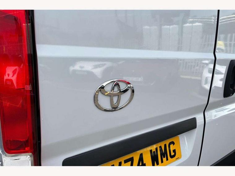10" multimedia screen, 7" colour screen multi information display, Audio switches behind steering wheel, Bluetooth handsfree connectivity, Cruise control, Digital intrument cluster, Dynamic guide lines on reversing camera, Intelligent Speed Assist, Lane Departure Alert (LDA) switch on lower driver dashboard, Lane departure alert with steering control, Lane trace assist, Navigation system, PAS, Pre-collision system with pedestrian and cyclist detection, Rear parking sensors, Rear view camera, Road sign assist, Tyre pressure warning system (TPWS), Voice recognition, Voice recognition switch on steering wheel, 6 speakers, Apple Carplay/Android Auto, Digital radio (DAB), 180 degree opening rear doors, Automatic headlights, Automatic high beam, Black front bumper, Black insert on upper front grille, Black rear bumper, Halogen projector headlamps with LED daytime running lights, Heated door mirrors, LED Front light guide, Manually retractable door mirrors, Panel rear wing doors, Power adjustable door mirrors, Sliding side door - left, Smoke tinted (30%) privacy glass, 12v power outlet - Cargo area, Adjustable lumbar support on drivers seat, Automatic air conditioning, Cloth upholstery, Driver seat armrest, Height adjustable and sliding driver and front passenger seats, Inner load hooks on cargo deck, LED Boot light, Panel bulkhead, Telephone switches on steering wheel, Driver and front passenger airbags, Driver attention assist, Emergency call, Front seatbelt reminder, Rear seatbelt reminder, Anti tamper, glass breaking sensors, intrusion and motion sensor alarm, Hill start assist control, Vehicle stability control plus (VSC+), 15" steel wheels, Full size spare wheel, Underbody spare wheel carrier,