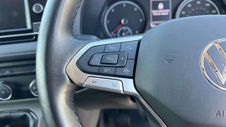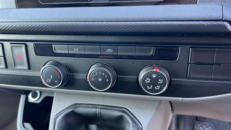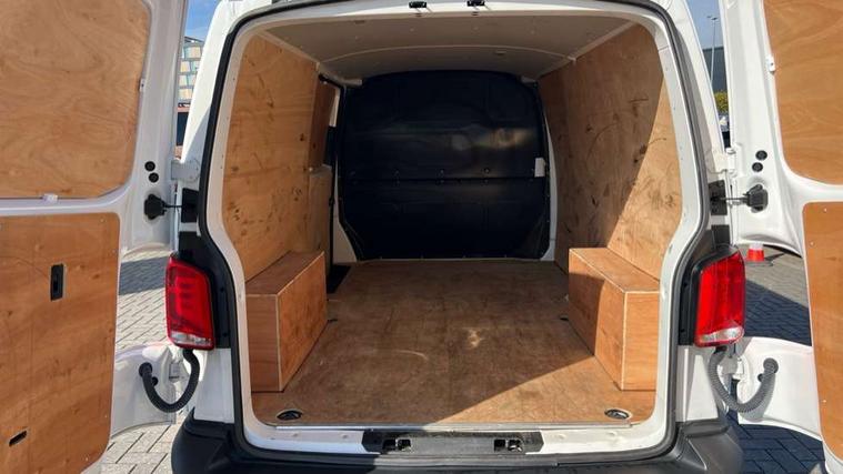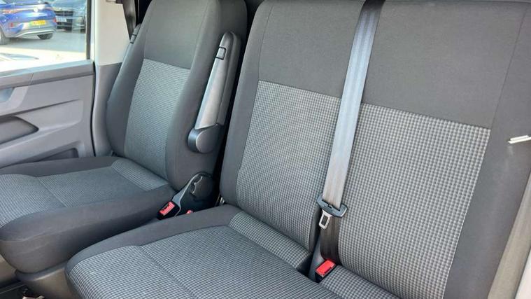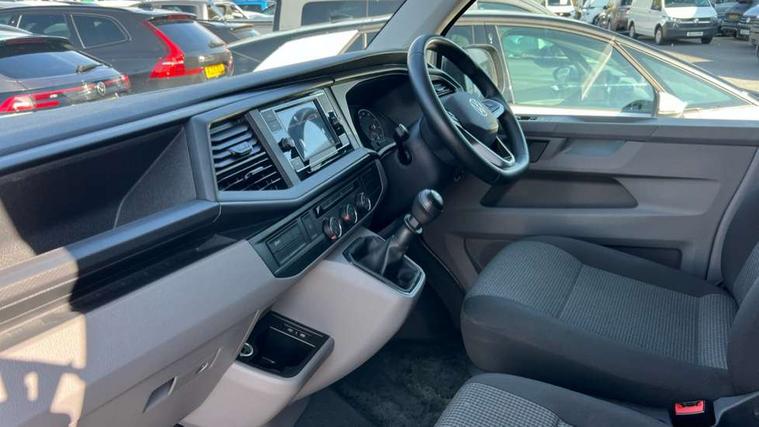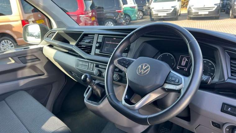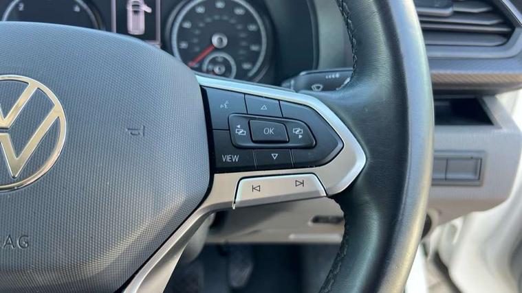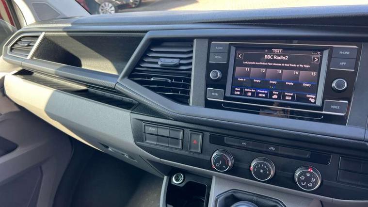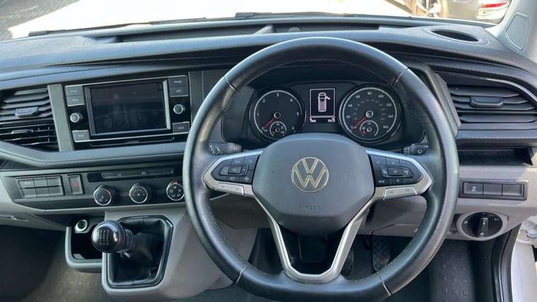 Cross wind assist, Dimmable illuminated instruments, Driver alert with Multi-function display plus, eCall emergency system, Forward collision warning front assist with autonomous emergency braking, Mobile phone interface, Multi function display plus with black and white display, 2 USB interfaces type C in dashboard, 4 speakers with 2 tweeters and 2 woofers, Composition colour radio with 6.5" touchscreen, Digital radio reception (DAB+), Volkswagen app connect, Closing rear wing door with unlatching from the inside, H7 twin halogen headlamps, Heat insulating glass (green) in cab and passenger/load compartment, Heat insulating windshield made of laminated glass, Left convex exterior mirror, Rear wing doors without window apertures, Right convex exterior mirror, Separate Daytime running lights, Transporter nameplate on the rear fender, Unpainted radiator grille with 2 chrome trims, 3 spoke leather wrapped multi function steering wheel, Comfort headliner in cab, hardboard roof trim in passenger and load compartment, Dust/pollen filter, Folding grab handles on roof frame, Front and rear left without window closed side panel in load compartment, Front seats on the right in 1st row of seat, Heavy duty tool kit and jack, High partition, Interior plastic loading edge protection, LED Interior lighting in load and passenger compartment, Standard lower part dashboard in palladium, Without refrigerant, Without right side window apertures in passenger and load compartment, Non smoker pack - Transporter, 3 point height adjustable seat belts on outer seats cab with electric pretensioners, Driver and front passenger airbag with front passenger airbag deactivation, Warning buzzer and light for driver and front passenger seat belt not fastened, Without child safety lock in passenger compartment, Electronic immobiliser, Wheel bolts without wheel locks, 16" chassis with 16" brake system, Diesel particulate filter, Electronic stability control, ABS, ASR with deactivation button, hill start assist and brake assist system, Standard anti drum measures, Start/stop system with regenerative breaking,