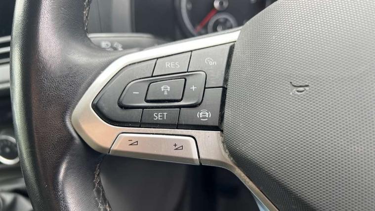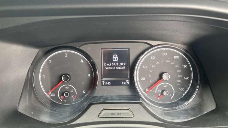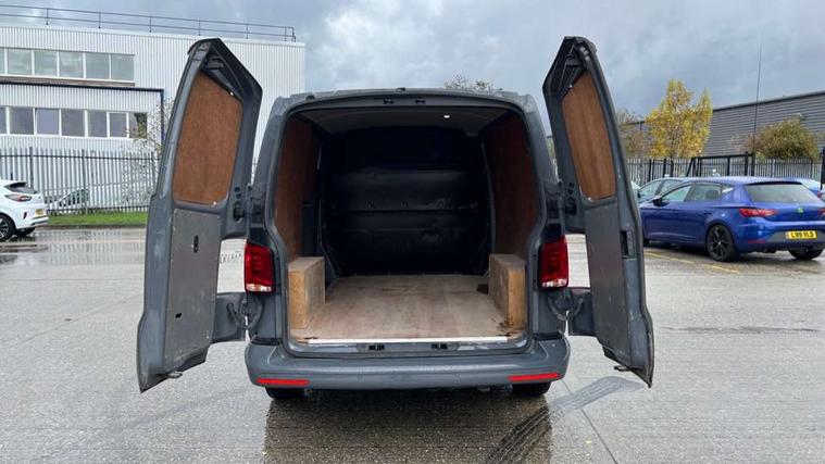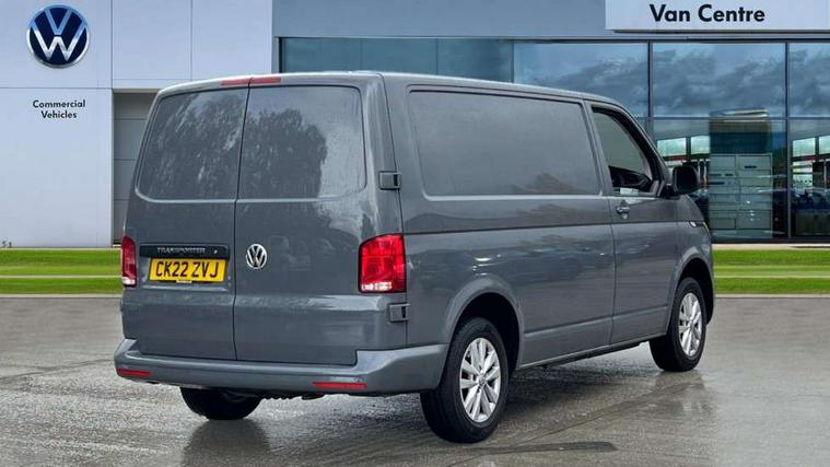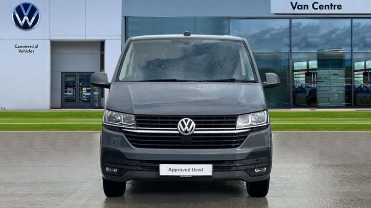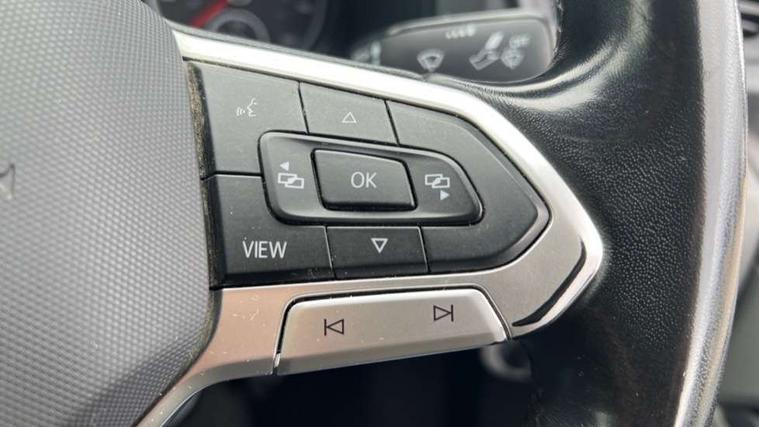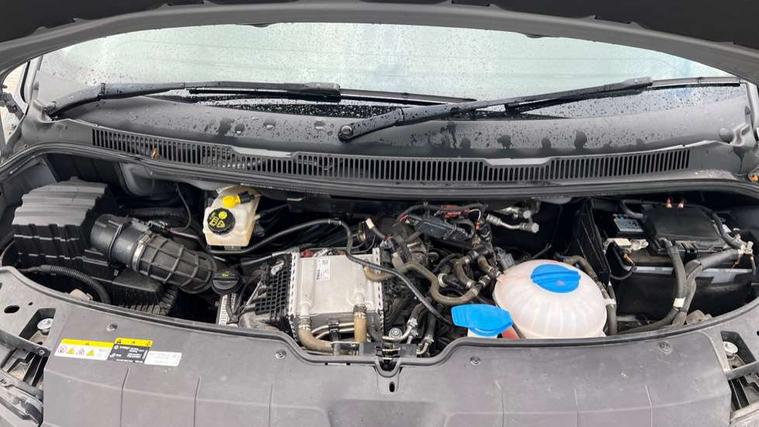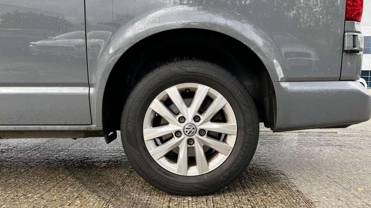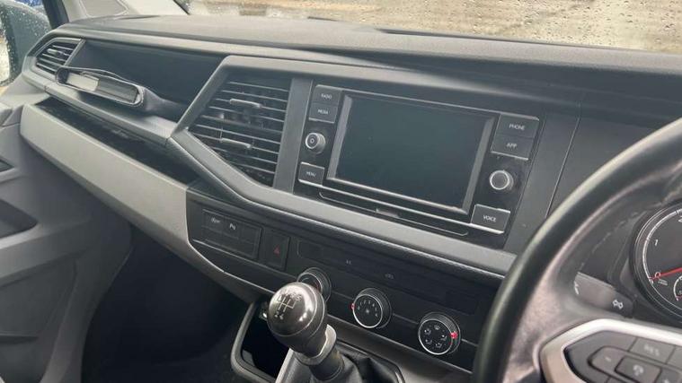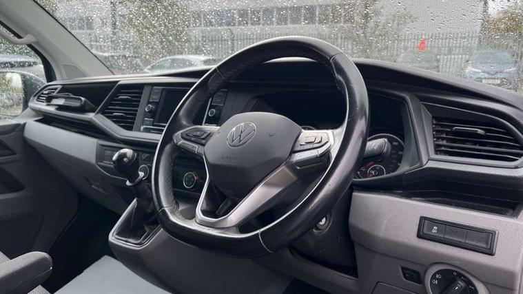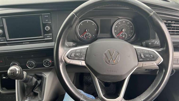 Adaptive cruise control, Cross wind assist, Dimmable illuminated instruments, Driver alert with Multi-function display plus, eCall emergency system, Electromechanical speed sensitive power steering, height and longitudinally adjustable steering column, Forward collision warning front assist with autonomous emergency braking, Mobile phone interface, Multi function display plus with black and white display, 2 USB interfaces type C in dashboard, 4 speakers with 2 tweeters and 2 woofers, Composition colour radio with 6.5" touchscreen, Digital radio reception (DAB+), Volkswagen app connect, Automatic headlight control, leaving home and manual coming home feature, Closing rear wing door with unlatching from the inside, Front fog lamps with cornering light, Heat insulating glass (green) in cab and passenger/load compartment, Heated front windscreen, Left convex exterior mirror, Power folding adjustable door mirrors with separately heated, Radiator grille with 2 chrome trims, Rear wing doors without window apertures, Right convex exterior mirror, Transporter nameplate on the rear fender, Windshield wiper intermittent control with rain sensor for windshield wipers, 3 spoke leather wrapped multi function steering wheel, Auto dimming breakaway interior rear view mirror, Comfort headliner in cab, hardboard roof trim in passenger and load compartment, Dust/pollen filter, Front and rear left without window closed side panel in load compartment, Front seats on the right in 1st row of seat, Glove compartment with illumination, Heavy duty tool kit and jack, High partition, Interior plastic loading edge protection, LED Interior lighting in load and passenger compartment, Manual adjustable lumbar support for right single seat in 1st row seats, Refrigerant R134a, Standard lower part dashboard in palladium, Storage compartments on cab seats and reading light, Without right side window apertures in passenger and load compartment, Comfort pack - Transporter, Exterior pack without fog light- Transporter, Non smoker pack - Transporter, 3 point height adjustable seat belts on outer seats cab with electric pretensioners, Driver and front passenger airbag with front passenger airbag deactivation, Warning buzzer and light for driver and front passenger seat belt not fastened, Without child safety lock in passenger compartment, Anti theft alarm system with interior monitoring in cab, backup horn and towing protection, Lockable wheel bolts, 16" chassis with 16" brake system, Additional 12V socket, Diesel particulate filter, Electronic stability control, ABS, ASR with deactivation button, hill start assist and brake assist system, Start/stop system with regenerative breaking, 16" Clayton alloy wheels,