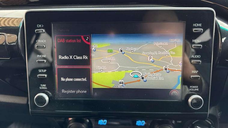 4.2" Multi information display, Bluetooth connectivity, Front and rear parking sensors, Fuel heater, Intelligent adaptive cruise control, Lane departure warning system, Lights on warning buzzer, PAS, Pre-collision system with pedestrian detection, Rear view camera, Road sign assist, Smart phone integration with Android auto & Apple CarPlay, Static guidelines on rear view camera, Tachometer, Touch 2 multimedia system with 8" display + GO navigation system, Digital radio (DAB), MP3 compatibility, Steering wheel mounted audio controls, USB connector, Auto Headlights, Automatic headlamp levelling, Black door handles, Black door mirrors, Black side steps, Body coloured front bumper, Dark grey rear bumper, Emergency brake light assist (EBS), Follow me home headlights, Front power windows with auto up and down function, Front wiper De-icer, Green tinted glass, Headlight cut-off reminder, Headlight washers, Heated door mirrors, Heated rear window, Invincible exterior - front bumper, body mouldings, tailgate handle, LED Daytime running lights, LED dual beam projector headlights, LED front fog lights, LED rear lights, Mud flaps front and rear, Power rear side window, Power retractable door mirrors, Rear fog lights, Rear window privacy glass, Tailgate damper, Trailer sway control, Underbody protection cover, Variable front wipers, Windscreen shadeband, 220V power socket, 60/40 split tip-up rear bench seat, Ambient door lighting, Automatic air conditioning, Carpet covered floor, Centre console coolbox, Centre console with lid, storage and armrest, Cooler in upper glove box, Heated front seats, Heated rear seats, Inner load hooks on cargo deck, Leather steering wheel and gearshift lever, Leather upholstery, Locking glovebox, Power adjustable drivers seat, Rear passenger footwell heating, Tilt adjustable steering wheel, Automatic front passenger airbag on/off switch, Child proof rear door locks, Front passenger airbag detector, Front seatbelt pre-tensioners + force limiters, Front seatbelt reminder, Isofix child seat preparation, Rear seatbelt pre-tensioners with load limiters, Supplement restraint system (SRS) 7 airbags - driver and passenger, knee, side and curtain, Immobiliser, Lockable tailgate, Remote central locking, Smart entry and start system button, 2 12v sockets, ABS with EBD, Auto limited slip differntial, Brake assist, Downhill Assist Control (DAC), Hill start assist, Load sensing proportioning system, Rear differential lock with auto disconnect, Stop/start function, Traction control, Vehicle stability control, 18" alloy wheels, Full size alloy spare wheel, Highway terrain tyres,