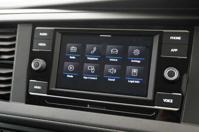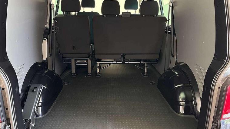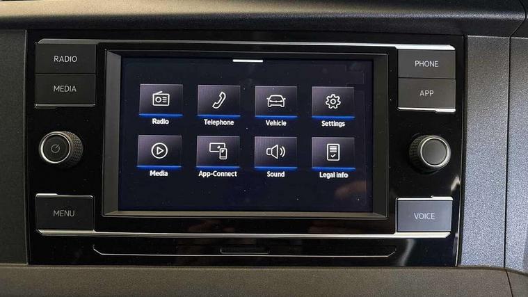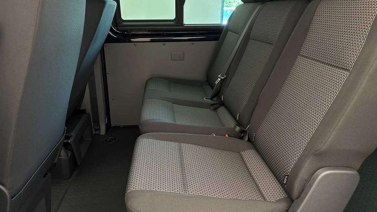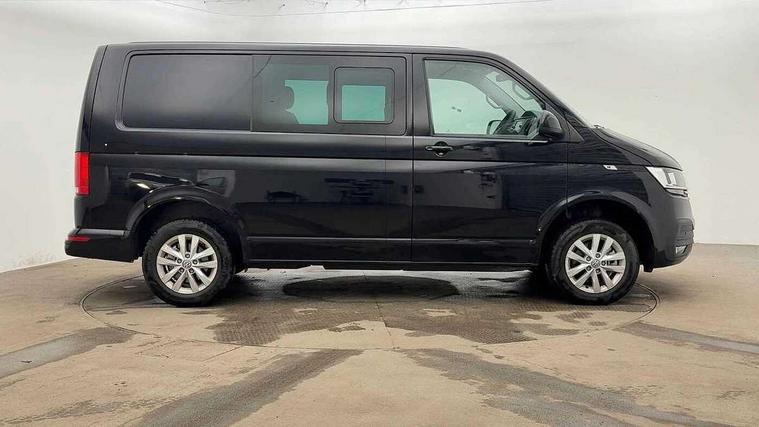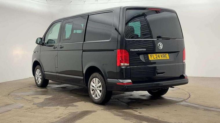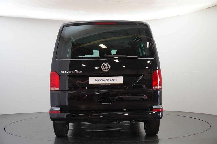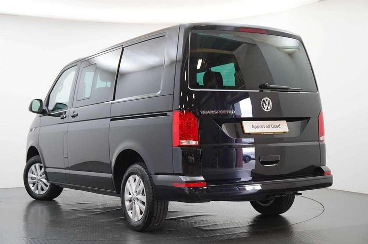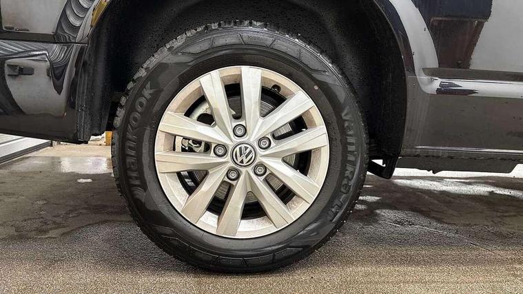 Adaptive cruise control, Child seat anchors ISOFIX and top tether in 2nd row of seats, Cross wind assist, Dimmable illuminated instruments, Driver alert with black and white multi function display plus, eCall emergency system, Forward collision warning front assist with autonomous emergency braking, Headlight range control, Mobile phone interface, Without voice control, 2 USB interfaces type C in dashboard, 4 speakers with 2 tweeters and 2 woofers, Composition colour radio with 6.5" touchscreen, Digital radio reception (DAB+), Volkswagen app connect, Automatic headlight control, leaving home and manual coming home feature, Front fog lamps with cornering light, Green heat insulating glass, Heated front windscreen, Illuminated steps in passenger/load compartment, Left convex exterior mirror, Power folding adjustable door mirrors with separately heated, Privacy glass from the B-pillar and heat-insulating glass in front, Radiator grille with 2 chrome trims, Rear window with heated insulating glass, heated rear window wiper and washer system, Right convex exterior mirror, Tailgate closing with unlatching from the inside, Transporter nameplate on the rear fender, Windshield wiper intermittent control with rain sensor for windshield wipers, Without adhesive film, 3 spoke leather wrapped multi function steering wheel, Additional sound deadening measures in cab and passenger compartment, Auto dimming breakaway interior rear view mirror, Comfort headliner in cab, hardboard roof trim in passenger and load compartment, Dust/pollen filter, Folding grab handles and storage compartments on cab seats, reading light, Front seats on the right in 1st row of seat, Glove compartment with illumination, Heavy duty tool kit and jack, Interior plastic loading edge protection, Lashing rings for load restraint system, LED Interior lighting in load and passenger compartment, Manual height adjustable and lumbar support for driver and single passenger seats, Medium height for vehicles with window aperture hardboard side trim panels in passenger/load compartment, Refrigerant R134a, Standard lower part dashboard in palladium, Without partition, Without seats in 3rd row of seats, Comfort pack - Transporter, Exterior pack without fog light- Transporter, Light and vision pack - Transporter, Non smoker pack - Transporter, 3 point height adjustable seat belts on outer seats cab with electric pretensioners, Driver and front passenger airbag with front passenger airbag deactivation, Power operated child safety lock, Warning buzzer and light for driver seat belt not fastened, Anti theft alarm system with interior monitoring in cab, backup horn and towing protection, Lockable wheel bolts, 16" chassis with 16" brake system, Additional 12V socket, Diesel particulate filter, Electronic stability control, ABS, ASR with deactivation button, hill start assist and brake assist system, Speed limiter, Start/stop system with regenerative breaking, 16" Clayton alloy wheels, Wheel trims,