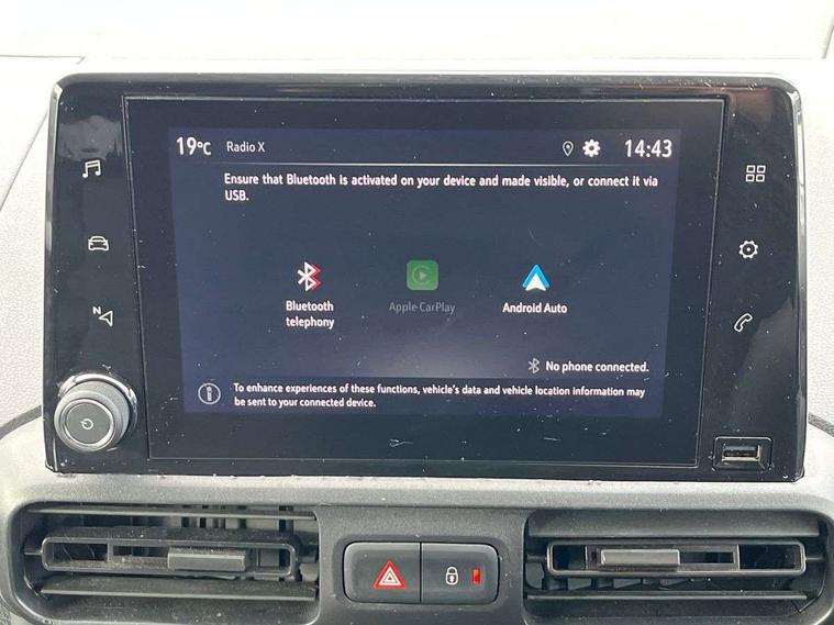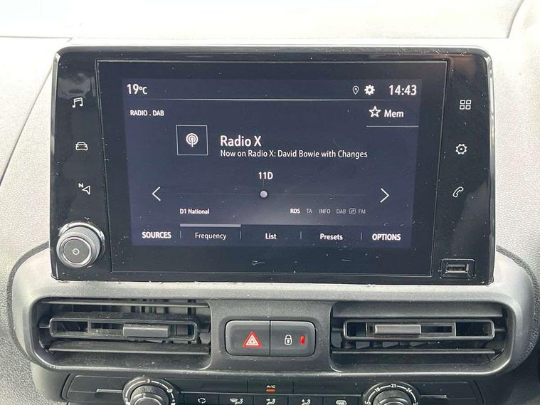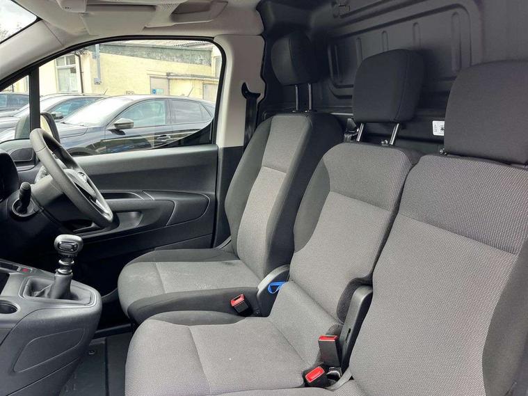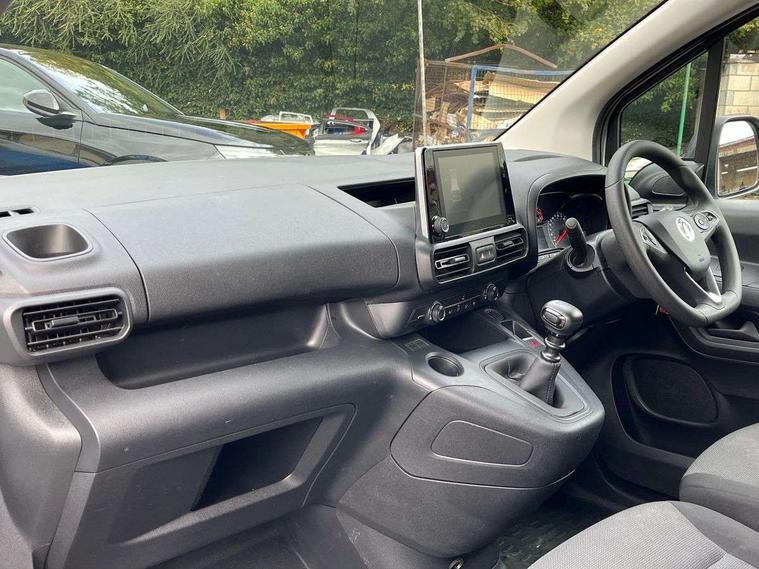 Central facia display with audio information, digital clock, outside temperature with ice warning and additional features about infotainment system, Centrally located instrument cluster with service due indicator and trip computer data, Cruise control with speed limiters, Instrumentation Speedometer, rev counter, fuel gauge with low fuel warning light and water temperature gauge and shift up indication warning light, Multi-function trip computer with trip mileage, vehicle range, average speed, average and instantaneous fuel economy, Speed sensitive electric power assisted system, Vauxhall connect, Steering wheel mounted audio controls, USB charging point in glovebox, USB charging point in rear centre console, Automatic lighting control, Black bodyside mouldings, Black door handles, Body colour front and rear bumpers, Electrically operated front windows with safety autoreverse one touch facility, Front fog lights, Halogen daytime running lights, Manual headlight beam levelling, Side protection mouldings, Solar heat absorbing windscreen, Tinted windows, Twin electrically adjustable, heated door mirrors and manually folding door mirrors, Two speed windscreen wipers with variable intermittent wipe, 12 volt electrical accessory socket centre console, 6 way adjustable height and reach drivers seats with manual lumbar adjustment and armrest, Air conditioning, Anti-submarining ramps in front seats, Cab heating system with six speed fan, Illuminated controls, four adjustable facia vents, windscreen demist vents and side window demist vents, Curitiba fabric seat trim upholstery, Driver and front passenger sun visor and vanity mirror on rear of drivers sunvisor, Driver's top lidded glovebox, Full width overhead storage shelf with ambient lighting, Large open storage pocket behind infotainment screen, Open storage compartment below glovebox, Reach and rake adjustable steering column, Six Fixed floor mounted load restraint lashing eyes, Small open storage compartment behind gear lever, Two drinks holders in centre console on front compartment, Two facia mounted drinks holders on front compartment, Two large and two small open door pockets, Deactivation switch for front passenger airbag and side impact airbag, Drivers and front passengers lap belt pretensioner system, Energy absorbing steering column, Side impact protection beams, Reinforced passenger safety cell and front and rear deformation zones, Front body lock diagonal seatbelt pretensioner system, Front seatbelt force limiters, Height adjustable lap and diagonal inertia reel front seatbelts, Indicator seat belt warning - front passenger, 2 folding keys with integral remote control function, Electronically protected audio, Locking wheel bolts, Remote central locking and deadlocks, Ultrasonic alarm theft deterent electrical, unauthorized entry, alarm, horn, self power, theft deterent body security, sensor, vehicle interior movement, Vauxhall engine deadlock immobiliser system, Visible Vehicle Identification Number (VIN), Anti-lock braking, Anti-roll bar, Corner stability control, Electronic brake force distribution, Electronic stability programme, Engine drag torque control, Hill start assist, Independent MacPherson front suspension with gas pressure dampers and linear-rate coil springs, Traction control, 16" steel wheels with full-diameter wheel trims,