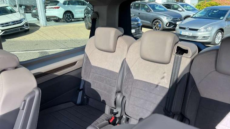 Adaptive cruise control with C2X including front assist and city emergency braking system, App-Connect incl. App-Connect Wireless for Apple CarPlay and Android Auto, Digital Cockpit Pro with 10.25" Display, Driver alert system, Dynamic road sign display, eCall emergency system, Electric tailgate with virtual pedal, Electrically-operated tailgate opening and closing function (Easy open), operated via foot movement under rear tailgate, Emergency assist, Lane change system with side assist including blind spot monitor, rear traffic alert and exit warning system, Lane keeping system Lane Assist, Mobile phone interface, PAS, Rear view camera, Semi-automated driving assistance, Socket AC Type 2, Tailgate, Travel assist, Voice control system including Alexa web app, We connect preparation, 1 x 6 metre charging cables - 16amp AC cable for wallbox chargepoints (mode 3), Electronic differential lock, 2 USB-C ports in front and 4 USB-C ports in passenger compartment, Digital radio reception (DAB+), Additional interior noise reduction measures, Advanced high beam control dynamic light assist for LED matrix headlamps, Automatic headlight control with welcome home lights, Body coloured exterior door handles, Break away auto dimming rear view interior mirror, Dynamic headlight range control with dynamic cornering light, Electric sliding rear side door on the left/right with easy open feature, Electrically adjustable, heated and folding door mirrors, Front fog lights, Glossy black painted radiator grille with 2 illuminated chrome trims, Heated rear window with window wiper and washer system, Heated windscreen, High gloss black exterior mirror housing, IQ.Light LED matrix headlamps with LED separate daytime running light, Laminated safety glass windshield, heat and sound insulating, LED 3rd brake lamp, LED rear combination lamps, Rear wiper, Stainless steel tailgate trim, Surround lighting in door area and tailgate with logo projection in door area, Windshield wiper intermittent control with rain sensor, 1 x 12V sockets on the dash panel, 12V socket in passenger compartment, 3 seat bench in 3rd row, 30 colours ambient interior lighting and tailgate surround lighting, 7 single seats removable/movable, Carpet mats in cab, Climatronic 3 zone air conditioning with 2nd evaporator, auxiliary heater, air conditioned headliner and additional passenger control, Front and rear head restraints, Grab handles on A pillar for access, on driver and front passenger side, Heated steering wheel, Height adjustable seats, Height and longitudinal adjustment steering wheel with gear shift paddles, Illumination lockable glovebox compartment, ISOFIX (including i-size) and top tether in all seats in 2nd and 3rd rows, LED luggage compartment lighting X 2, Load compartment partition to 20kg with bag hooks and luggage net, Luggage compartment lid power latching with unlatching from inside, Multifunction leather steering wheel with tiptronic, Reinforced carpet floor covering in passenger compartment, Removable armrests for front seats with power adjustable lumbar support and folding table for 2nd row passenger seats, Removable armrests in 2nd row passenger seats, Single front passenger seat, Stainless steel pedals, Storage compartment under the 2nd and 3rd row seat and two waste bins, Sun visors with illuminated vanity mirrors and airbag warning label on front passenger sun visors, 3x3 point rear seat belts, ABS, Automatic post collision braking system, Autonomous emergency braking front assist with pedestrian and cyclist monitoring, Driver and front passenger airbag with front passenger airbag deactivation, Electric childproof lock, Electronic stability control (ESC) and Electromechanical brake booster, ESP, First aid kit with warning triangle and safety vest, Front disc brakes, Hill hold assist, Seat belt warning for the drivers and all passengers seats if unfastened, Side and curtain airbags for driver and front passenger, curtain airbags for outer seats in rear, centre airbag in front, Single tone horn, Traction control, Tyre pressure monitoring system, Anti theft alarm system with interior monitoring in cab, backup horn and towing protection, Central locking system keyless entry with touch two stage unlocking, Start/stop button on centre console, Dark woodgrain optic decorative inserts,