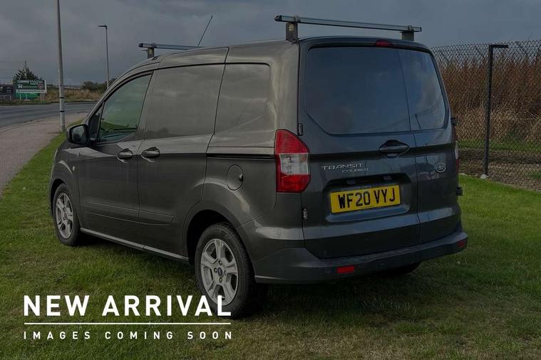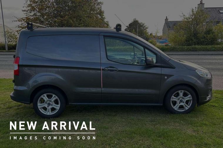 Cruise control with speed limiter, Door open warning light, Easy fuel capless refuelling system, PAS, Reverse parking sensor, Smart phone dock, Trip computer, Aux input socket, Steering wheel mounted audio controls, Automatic lights and wipers, Body coloured bumpers, Body coloured mirrors and door handles, Body coloured side mouldings, Daytime running lights, Electric front windows with one touch facility for driver and front passenger, Electric heated door mirrors, Front fog lights, Side load door track cover, Side loading door - left, Trailer sway control, 4 way adjustable passenger seat, Babylon cloth upholstery, Leather steering wheel and gear knob, Locking glovebox, Overhead storage, Reach and rake adjustable steering column, Under seat storage, ICE feat pack - 36 Transit Courier, Driver seatbelt reminder, Driver's airbag, Front 3 point seatbelts, 2nd remote key, Deadlocks, Immobiliser, Remote central double locking, (Pro Power Onboard) Power point plug 2.3kW - Level 3, ABS + EBD, Auto start/stop system and Improved flooded battery, ESP + EBA, Hill start assist, Roll stability control, 15" alloy wheels, Full size spare wheel,