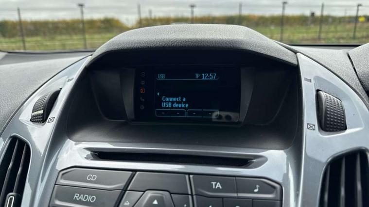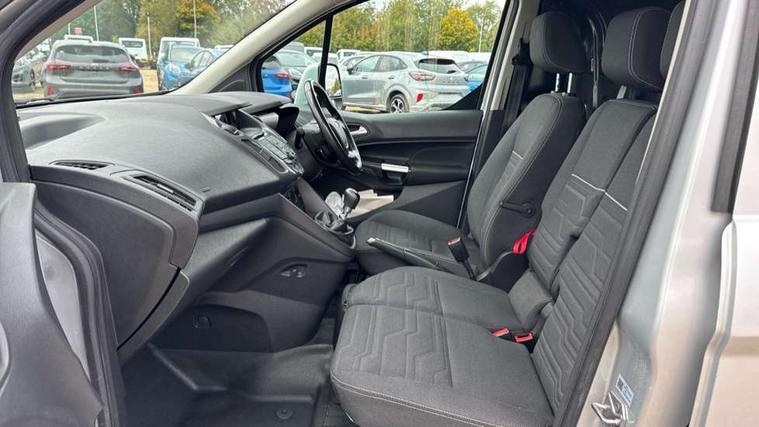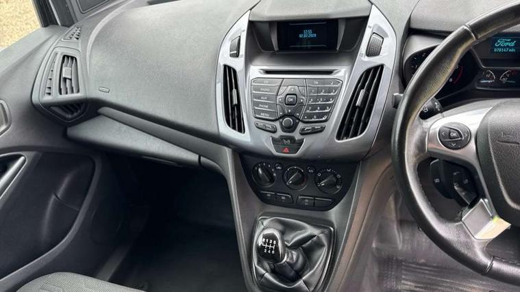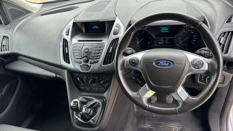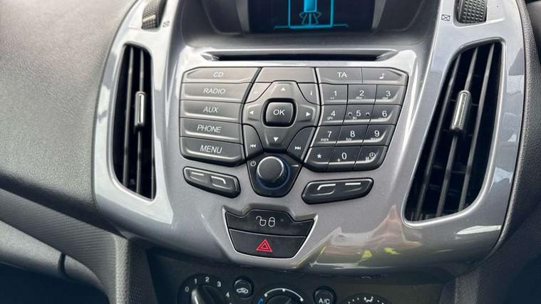 Bluetooth with USB box, Cruise control with speed limiter, Easy fuel capless refuelling system, PAS, Reverse parking sensor, Trip computer, Voice control system, DAB radio/CD with SYNC, Steering wheel mounted audio controls, Automatic lights and wipers, Body colour side protection mouldings, Body coloured door handles, Body coloured door mirrors, Body coloured front bumper, Chrome front grille, Chrome head lamp bezels, Electrically folding and heated door mirrors, Front electric windows with anti-trap and driver's one touch function, Heated windscreen with heated door mirrors and washer jets, 6 lashing points for securing loads, 8 way adjustable drivers seat, Bulkhead - load through hatch, Cloth upholstery, Dual fold flat passenger seat with storage box, Glovebox with lid, Heated driver's seat, Interior roof rack / Interior Overhead stowage, Leather steering wheel, Load box LED lights, Plastic cargo area lining, Reach and rake adjustable steering column, Fuel economy pack - Transit Connect, Driver seatbelt reminder, Driver's airbag, 2nd remote key, Immobiliser, Remote central locking, Thatcham category 1 alarm, ABS + EBD, ESP + EBA, Hill start assist,