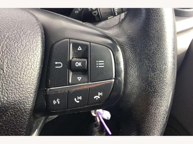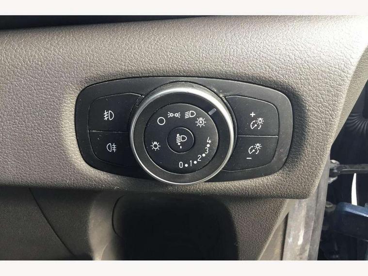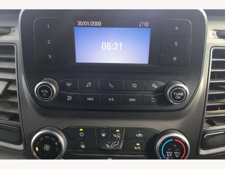 Adjustable steering column, Blind spot monitor, Easy fuel capless refuelling system, Ford Eco mode, Front and rear parking aid + front fog lamps, PAS, Trip computer, Audio controls mounted on steering wheel, Aux input socket, 'Guide me home' headlights, Automatic lights and wipers, Body coloured door mirrors, Body coloured front bumper, Electric front windows with one touch facility for driver and front passenger, Front mud flaps, Headlamp levelling, Intermittent front wash/wipe, Power folding electric heated and adjustable door mirrors, Quickclear heated windscreen, Rear mudflaps, 2 adjustable sunvisors, Cloth upholstery, Courtesy light, Drivers seat with lumbar adjustment, Easy clean load floor, Half height load compartment trim boards, Height adjustable front headrests, Illuminated footwell, Lockable glove box, Map reading lights, Moulded cab headlining, Reach and rake adjustable steering column, Recirculation heater, Roof console (front seats), Rubber floor covering, Tie-down loops, Underseat storage compartment, 3 point seatbelts for all seats, Driver's airbag, Front seatbelt pretensioners, Height adjustable drivers seatbelt mount, Passenger seatbelt height adj, 2nd remote key, Auto locking on drive-away, Auto relocking, Power door dead locks, Remote central locking, 2 12v sockets, 80 litre fuel tank, ABS, Diesel particulate filter, ESP + EBA, Power point plug 400W - Level 2, Roll stability control, Side wind mitigation, Full wheelcovers,