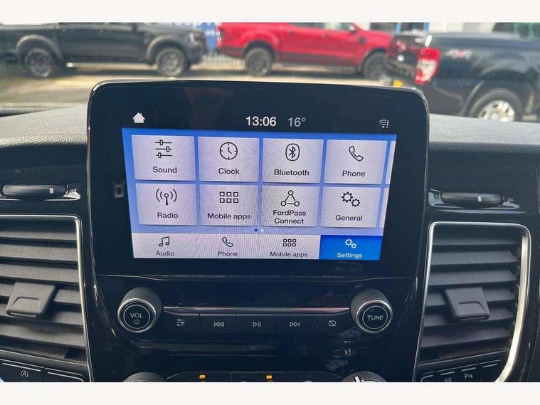 Easy fuel capless refuelling system, Embedded modem, Ford Eco mode, PAS, Selectable drive mode, Trip computer, Vehicle maintenance monitor, Audio controls mounted on steering wheel, 180 Degree rear cargo check arms, Automatic headlamps with follow me home, Automatic lights and wipers, Body colour door handles, Body coloured body side mouldings, Body coloured door mirrors, Body coloured exterior mirror finish, Body coloured lift/decklid exterior handles, Body coloured rear bumpers, Chormed grille with 3 bars, Delete roof mounted turn signals, Digital rear view mirror, Door open tyre carrier drop, Electric front windows with one touch facility for driver and front passenger, Emergency brake light flashing, Front splash guards/Mud flaps, Headlamp levelling, Intermittent front wash/wipe, Kerbside side load doors, Low roof line, Molded load floor liner, Quad beam headlamps, Rear cargo hinged door, Rear door edge warn reflectors, Rear mudflaps, Rear splash guards, Tutone painted plastic front bumper, Unrestricted side load door opening, Wide bodyside grey mouldings, 2 Interior grab handles, Assist handle, Cloth upholstery, Colour keyed exterior pack, Complete rear trim board, Driver and passenger sunvisors with illuminated vanity mirrors, Floorwell lights, Front manual air conditioning, Header mounted courtesy lights - 2 map lights, Header mounted package tray, Height adjustable front headrests, Illuminated footwell, Leather gearshift knob, LED load compartment rail light, Load compartment interior light, Lockable glove box, Map reading lights, Partial molded headliner, Passenger underseat storage box, Reach and rake adjustable steering column, Recirculation heater, Side rear door trim panel - Level 1, Sunglasses roof storage, Tool kit, Interior trim accent pack C - Transit custom, Less rear seat pack - Transit Custom, Load area protection kit 2 - Transit Custom, 3 point seatbelts for all seats, Driver's airbag, Dual note electric horn, Front outer passenger airbag with deactivation switch, Height adjustable drivers seatbelt mount, Passenger airbag restraint, Passenger seatbelt height adj, Seatbelt remainder for driver and passenger, Auto locking on drive-away, Auto relocking, Configurable Unlocking, Inclination anti-Theft sensor, Locking wheel lug nut, Power door dead locks, Remote central locking, Speed dependent power lock group, Thatcham category 1 alarm with 2nd remote key, 2 12v sockets, 80 litre fuel tank, ABS, Auto start/stop system, Diesel particulate filter, ESP, Extra heavy duty alternator, Mechanical parking brake, Power point plug 400W - Level 2, Roll stability control, Side wind mitigation, Standard duty suspension, 16" 6.5 alloy wheels, Full wheelcovers,