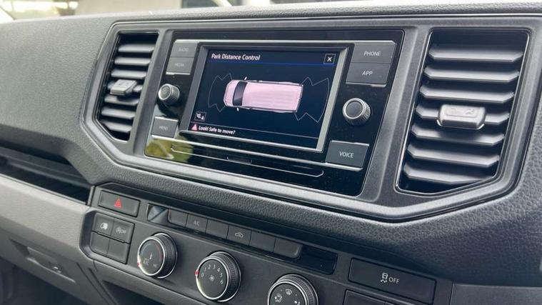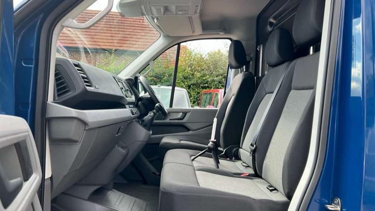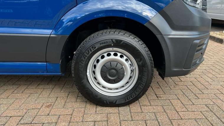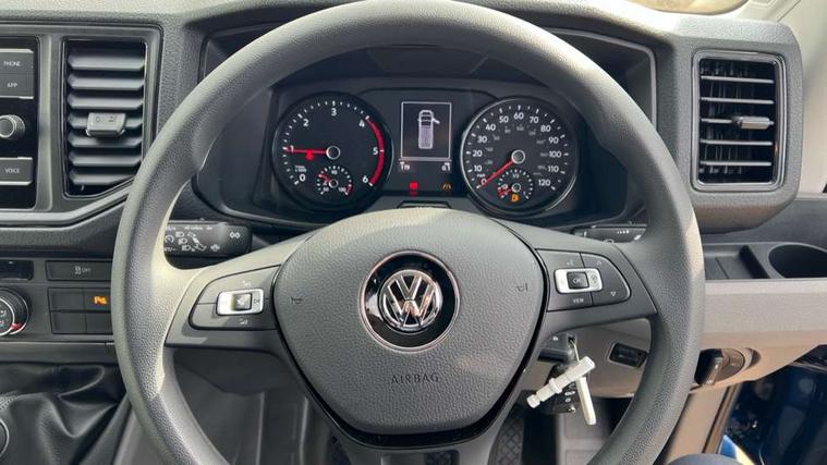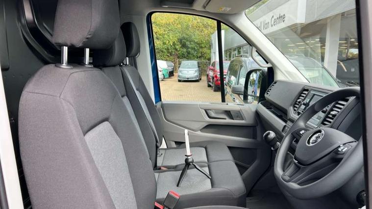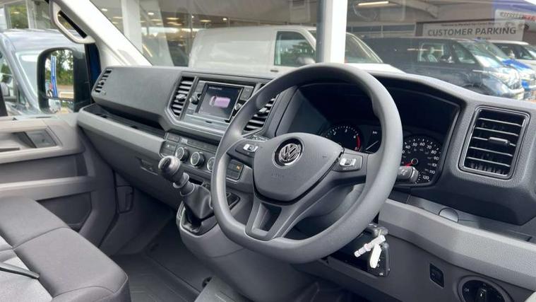 Bluetooth, Digital clock, Driver alert system, E-call + We connect basic preparation, Front and rear parking sensors, Instrument cluster, Lane keeping assist, Lights on warning buzzer, Locking fuel cap, Multi-function Display Plus, Rev counter, Service indicator, Speedometer, Voice control system, Composition media with 6.5" with we connect plus prep, 4 speaker, multifun display plus, USB, mob interface, app con, "We connect function", DAB Radio, Auto low beam mode, Leaving home function and manual coming home function, Black unpainted plastic front bumper, Cab doors, Convex and wide angle mirror, Driver seatbelt warning light, Electric windows, Heat insulating glass, Indicators in front door mirrors, Manually adjustable door mirrors, One towing eye in front, Special identification plate, Unpainted radiator grille, Air recirculation system, Ashtray, Centre console storage tray, CFCU preparation, Charcoal filter, Document holder on centre console, Drinks holders, Electromechanical Servotronic steering, Electronically controlled heating system, Fully adjustable suspension type driver seat, Height adjustable head restraints, Height and reach adjustable steering wheel, Illuminated glove compartment with lockable lid, Interior light, including 2 reading lights, Interior light, switchable by door, Jack and tool kit, Multifunction steering wheel, Preparation for interface for external use with terminal block, Storage compartments in doors and in step, right, Storage tray on dashboard, Two 12V outlets in the cab (in the dashboard), Without rear side trim panel passenger load compartment, Non-smokers pack - Crafter, 3 point inertia reel belt on all seats, Automatic hazard light with emergency braking, Crosswind assist, Driver and front passenger airbag with front passenger airbag deactivation, Height adjustable seatbelts for outer cab seats, 1 rigid key, Engine immobiliser, ABS, Automatic post collision braking system, EBA, EBD, EDL, ESP, Front disc brakes, HBA, Hill start assist, Parking brake - hill hold control, Start and stop system with regenerative braking, TCS, Hub cap covers,