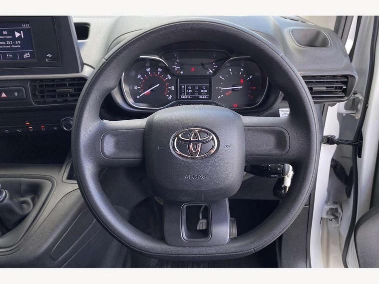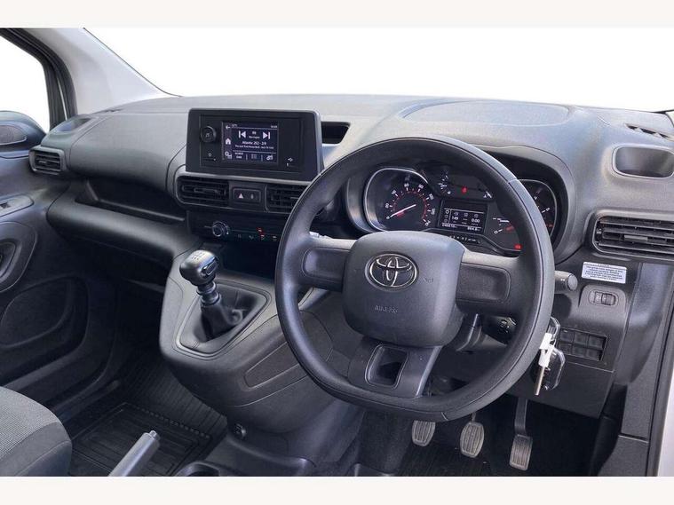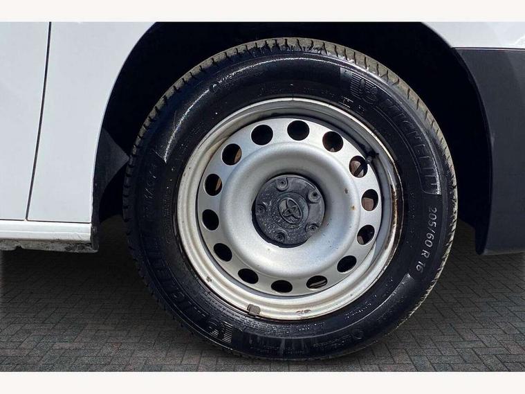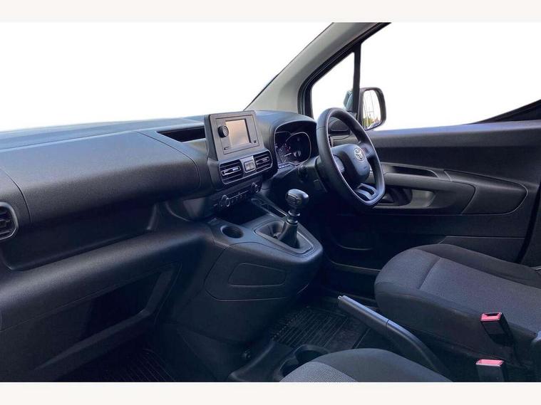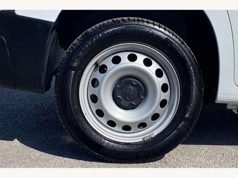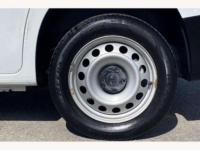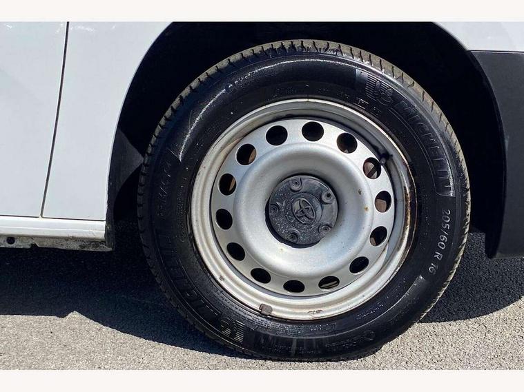 5" touchscreen multimedia display, Analogue speedometer, Analogue tachometer, Audio switches behind steering wheel, Bluetooth handsfree connectivity, eCall emergency system, LCD screen and pictogram, Monochrome multi information display, MyT connected services, PAS, Tyre pressure warning system (TPWS), 2 speakers, Digital radio (DAB), USB connector, 180 degree opening rear doors, Anti jam protection on windows, Auto Headlights, Black door handles, Black door mirrors, Black front and rear bumpers, Black protection moulding on side door, Black upper front grille, Daytime running lights, Electric front windows with one touch up/down facility, Heated and power adjustable door mirrors, Manual retractable door mirrors, Manual wipers, Panel rear wing doors, Privacy glass 30% smoke tint, Roof antenna, Roof rails, Roof rails predisposition, Tinted windows, Two manual sliding side doors, 3 spoke urethane steering wheel, Additional tray on passenger dashboard, Black interior door handles, Bottle holders (0.5L), Cargo area lighting and 3 bulbs, Cargo deck load hook x6, Chrome insert on gear shift, Closed upper passenger dashboard storage compartment, Cooler in glovebox, Driver and single passenger seat, Fabric seats, Front bottle holders, Front room lights, Full metal bulkhead, Gear shift indicator, Height adjustable front headrests, In-floor storage box, LED Driver and front passenger personal lights, Manual air conditioning, Mirror on driver sun visor, Open glovebox passenger side, Open tray on passenger dashboard, Open upper driver dashboard storage compartment, Overhead driver and front passenger storage, Panel bulkhead, Piano black insert on gear shift, Plastic load floor protection, Pollen filters, Row 1 carpet floor, Row 3 panel on both sides (in place of window), Rubber cargo liner, Rubber floor mats in load area, Urethane gear shift, Passenger airbag, Supplement restraint system (SRS) 2 airbags, 1 remote key + 1 simple key, Central locking, Key starting system, Anti lock braking system (ABS), Brake assist, Downhill Assist Control (DAC), Electronic brake force distribution (EBD), Electronic Stability Control (ESC), Hill start assist, Manual parking brake, Stop/start function, Vehicle stability control, 16" grey steel wheels with black large centre caps, Full size spare wheel,