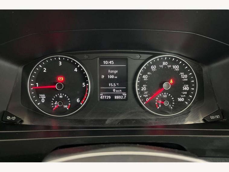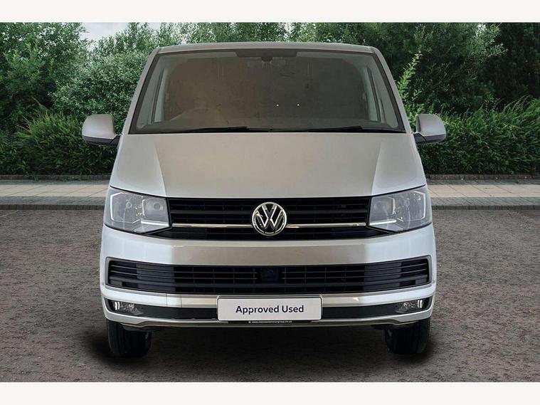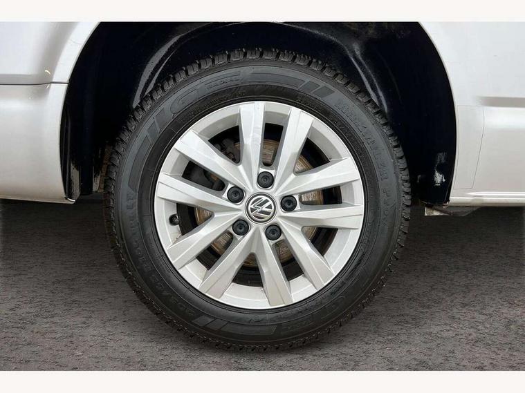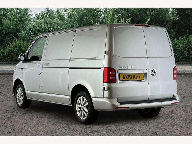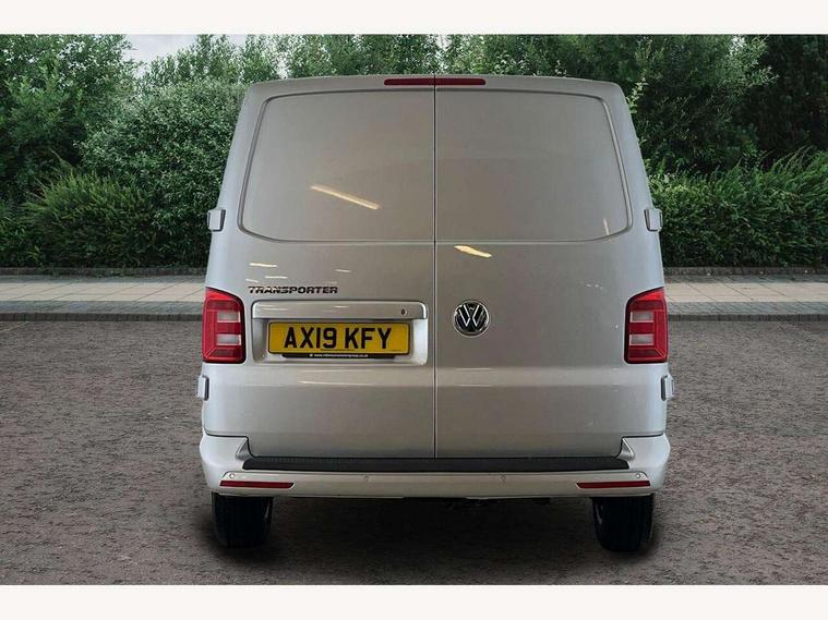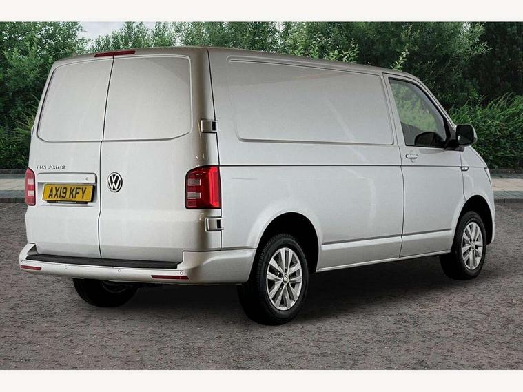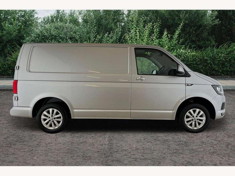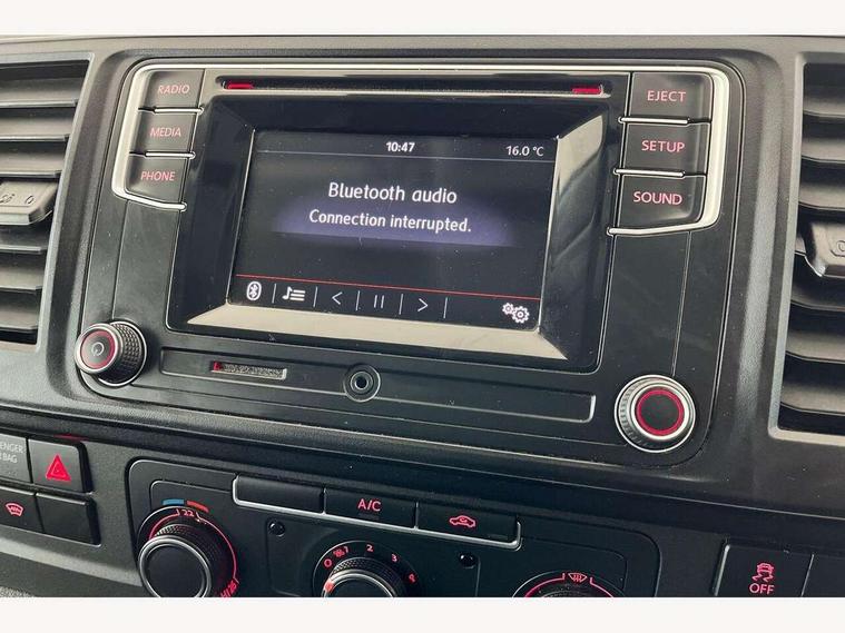 Bluetooth connectivity, Collision prevention assist, Digital clock, Driver alert with Multi-function display plus, Gearshift indicator, Headlight range control, Lights on warning buzzer, PAS, Rear door interior release lever, Rev counter, SD card slot, Service indicator, 4 speakers, Aux input socket, DAB radio/CD player, USB connection, 180 degree opening rear doors, 2 speed windscreen wipers/intermittent wash, 8 securing points for roof load rack system, Auto dimming rear view mirror, Automatic coming/leaving home lighting function, Electric front windows, Front and rear towing rings, Front fog lights with cornering function, Heat insulating glass, Heat reflective glass, Heated front windscreen, Laminated windscreen, Rear wing doors without windows, 1 coat hook, 1 hook on lower dash on front passenger side, 2 rear interior lights, switchable by door, 2 storage trays in dashboard, 2 sun visors folding and pivoted, 6 lashing points for securing loads, Additional 12v accessory socket, Cab interior light, Drinks holder, Driver's seat armrest, Dust/pollen filter, Front door pockets with bottle holder, Full height hardboard side lining, Half height hardboard side lining, Half height load lining, Height adjustable head restraints, Height and rake adjustable steering column, Interior entry steps, Interior roof trim - hardboard, Interior roof trim as headliner, Locking glovebox, Multifunction leather steering wheel, gearknob and gaiter, Open storage compartment in dash panel including mobile phone holder, Passenger seat with reach and rake adjustment, Rubber floor covering, Sheet steel flooring, Side roof frame trim, Storage box integrated in roof headliner, Storage compartments in doors, Storage compartments in outer side of driver & passenger seats, Storage net on lower dash passenger side, Cab comfort pack - Transporter Van, Electric pack A - Transporter, Exterior pack - Transporter, Lights and vision pack - Transporter, Non smoker pack, 3 point inertia reel belt on all seats, Brake pad wear indicator, Front passenger airbag deactivation, Height adjustable seatbelts with tensioners, Anti-theft alarm with rear control in cab, backup horn and towing protection, Locking wheel bolts, 70 litre fuel tank, ABS with electronic brake distribution, ASR traction control, Diesel particulate filter, EDL, Electronic differential lock, Engine braking control (MSR), ESP, Hill start assist, Traction control, Platinum grey trim, 16" Clayton alloy wheels,