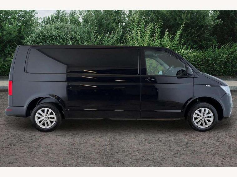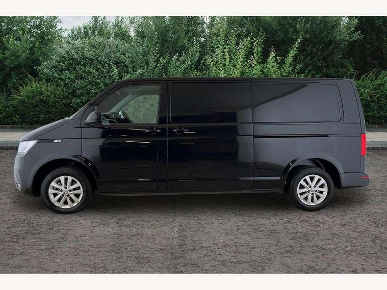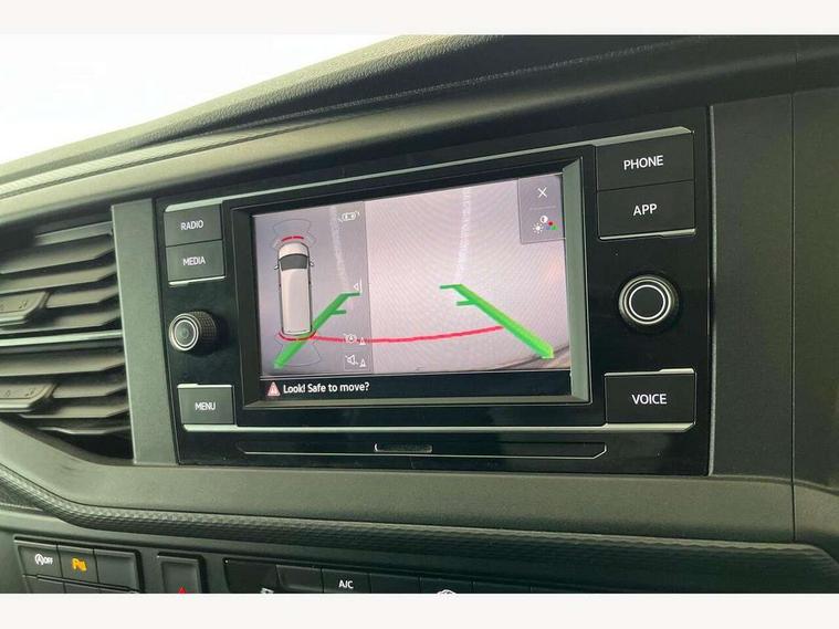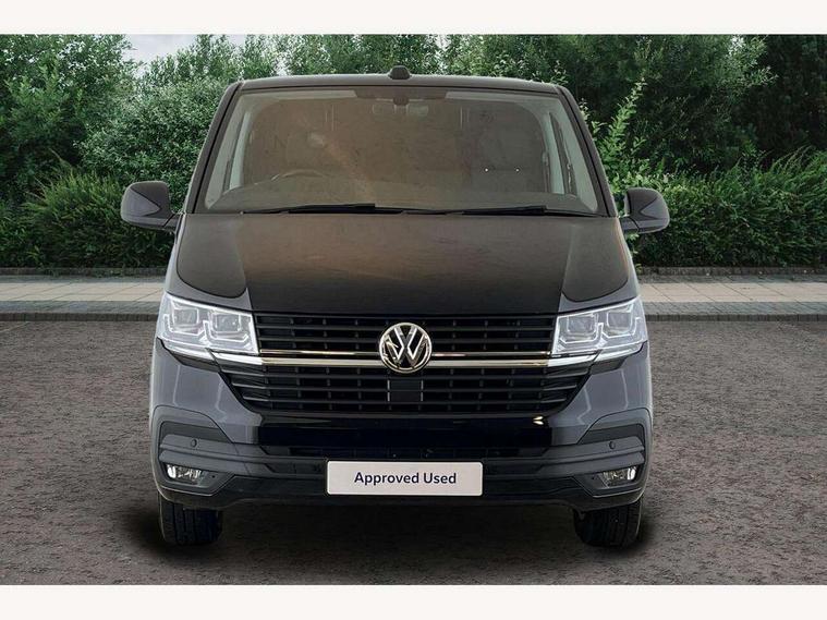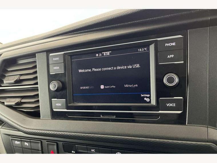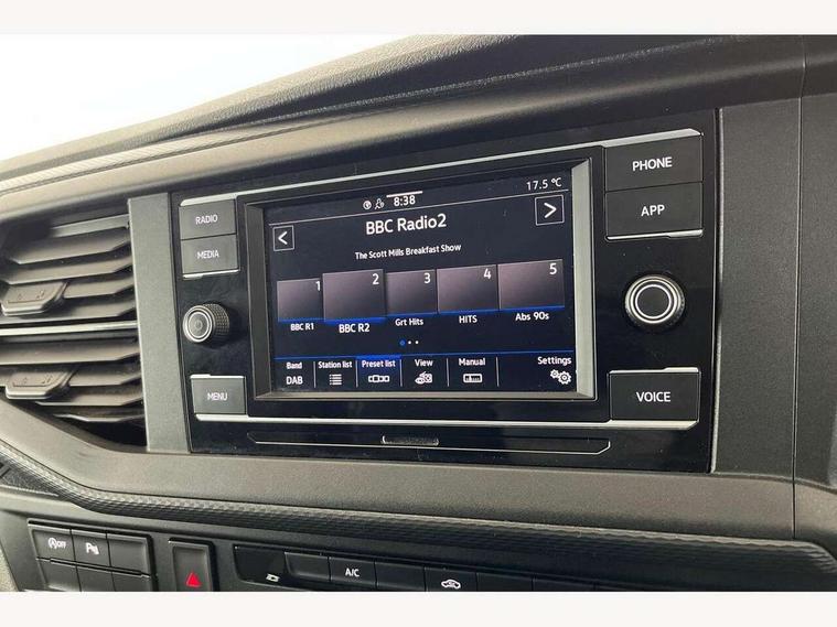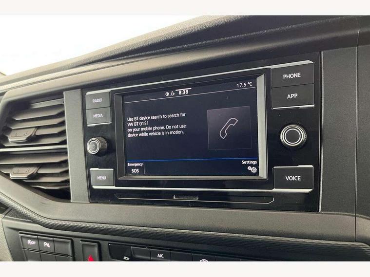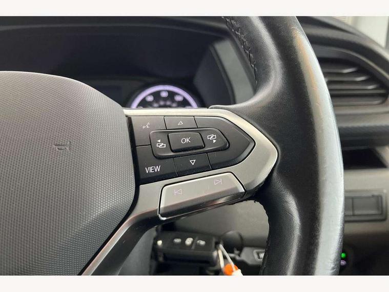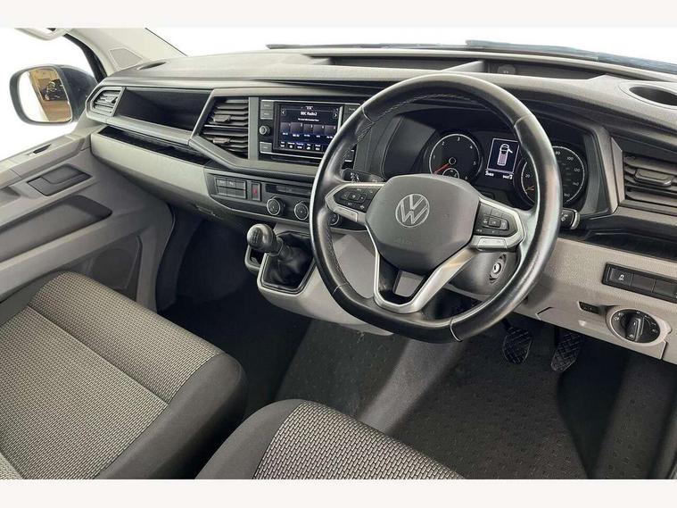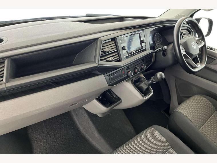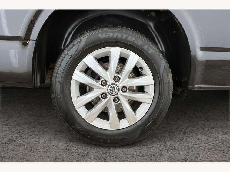 Adaptive cruise control, Cross wind assist, Dimmable illuminated instruments, Driver alert with Multi-function display plus, eCall emergency system, Forward collision warning front assist with autonomous emergency braking, Mobile phone interface, Multi function display plus with black and white display, 2 USB interfaces type C in dashboard, 4 speakers with 2 tweeters and 2 woofers, Composition colour radio with 6.5" touchscreen, Digital radio reception (DAB+), Volkswagen app connect, Automatic headlight control, leaving home and manual coming home feature, Closing rear wing door with unlatching from the inside, Front fog lamps with cornering light, Heat insulating glass (green) in cab and passenger/load compartment, Heated front windscreen, Left convex exterior mirror, Power folding adjustable door mirrors with separately heated, Radiator grille with 2 chrome trims, Rear wing doors without window apertures, Right convex exterior mirror, Transporter nameplate on the rear fender, Windshield wiper intermittent control with rain sensor for windshield wipers, 3 spoke leather wrapped multi function steering wheel, Auto dimming breakaway interior rear view mirror, Comfort headliner in cab, hardboard roof trim in passenger and load compartment, Dust/pollen filter, Front and rear left without window closed side panel in load compartment, Front seats on the right in 1st row of seat, Glove compartment with illumination, Heavy duty tool kit and jack, High partition, Interior plastic loading edge protection, LED Interior lighting in load and passenger compartment, Manual adjustable lumbar support for right single seat in 1st row seats, Refrigerant R134a, Standard lower part dashboard in palladium, Storage compartments on cab seats and reading light, Without right side window apertures in passenger and load compartment, Comfort pack - Transporter, Exterior pack without fog light- Transporter, Non smoker pack - Transporter, 3 point height adjustable seat belts on outer seats cab with electric pretensioners, Driver and front passenger airbag with front passenger airbag deactivation, Warning buzzer and light for driver and front passenger seat belt not fastened, Without child safety lock in passenger compartment, Anti theft alarm system with interior monitoring in cab, backup horn and towing protection, Lockable wheel bolts, 16" chassis with 16" brake system, Diesel particulate filter, Electronic stability control, ABS, ASR with deactivation button, hill start assist and brake assist system, Start/stop system with regenerative breaking, 16" Clayton alloy wheels,