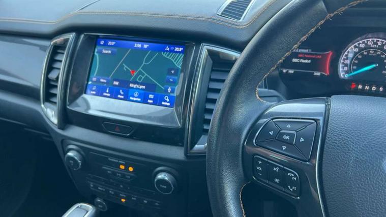 ICE feature pack 129 - Ranger, 3 point inertia rear seatbelts, Driver and front passenger airbag, side airbag, curtain airbag and driver knee airbag, ISOFIX child safety seat attachment, Seatbelt reminders for driver and front passenger, Tyre pressure sensors, Double locking power door lock with flip key, Immobiliser, Locking wheel nuts, Passive anti theft system, Passive keyless entry and start system, Power tailgate lock, Spare wheel lock, Thatcham category 1 alarm security system, ABS, ESP and roll over mitigation, Emergency brake assist, Engine start/stop system, Locking rear axle, Power converter, Automatic headlights, Body coloured plastic front bumper, Boulder grey exterior door handle, Boulder grey exterior door mirror, Boulder grey radiator grille, Daytime running lights, Dual power heated fold back door mirror with puddle lamp and signal, Electrically operated windows with one shot driver's window, Electrochromic interior mirror, Front splash guard and mud flaps, Heated windshield and rear window, High mounted stop lamp with cargo area light, LED Front fog lamp, LED projector headlamps, Moulded in colour tailgate handle, Painted front fender grille, Privacy glass, Rain sensitive windshield wipers, Rear bumper chrome under-bar, Rear bumper step in boulder grey, Rear mudflaps, Roof rails, Side step with brushed inserts, Sports bar, Tailgate - Easy-lift/lower mechanism, Under hood engine cover, Underbody protection, Centre console coolbox, Chrome interior door handle, Driver seat back mounted map pocket, Dual control system - Electronic air temperature control (EATC), Ebony headliner, Heated front seat, Journey grain partial leather upholstery with Wildtrak logo, Leather gearknob, LED ambient interior lighting, Power adjustable 8 way driver seat, Premium front and rear floor mats with Wildtrak logo, Reach and rake adjustable steering column, Roof storage for driver sunglasses, Sport leather stitched steering wheel, Tie down rails and rope hooks, Wildtrak door trim panel insert, 2 key fob, Collision mitigation braking system, Electric power assisted steering, Fixed rear view camera, Intelligent speed assistance, Lane keeping aid, Traffic sign recognition, Trip computer,