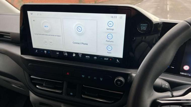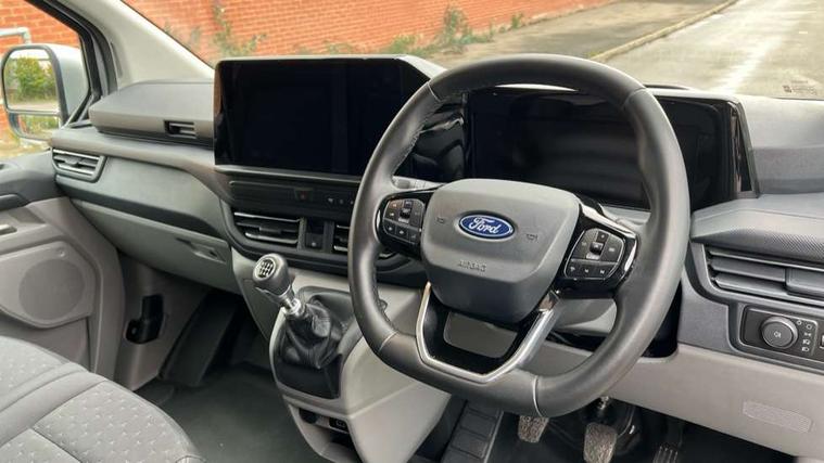 13" Touchscreen, 5G embedded modem, AECS NO SMS/Roll Detect 2G, PAS, Tyre pressure monitor, SYNC 4 - Android Auto/Apple Car Play, advance speech recognition, over the air update capability, Automatic headlights, Body coloured door mirrors, Body coloured front bumper, Body coloured rear bumpers, Daytime running lights, Electric front windows with one touch facility for driver and front passenger, Fixed DSS LED headlamps with auto high headlamp, Front splash guards, Low roof line, Quickclear front window defroster, Rear cargo hinged door, Rear splash guards, Trailer sway control, 8 Load compartment tie down loops, Courtesy light, Interior grab handle with driver's sunglasses holder, LED lights, Locking glove box lid, Sensico gearshift knob, Super bright load compartment lights, Passenger airbag, 2 remote keys, Alcohol Interlock wiring preparation pack, Keyless entry and start, Locking wheel lug nut, Thatcham category 1 alarm, 20L AdBlue tank, ABS, Diesel particulate filter, ESP, Hill launch assist, Traction control, 16" Steel spare wheel, Full wheelcovers,