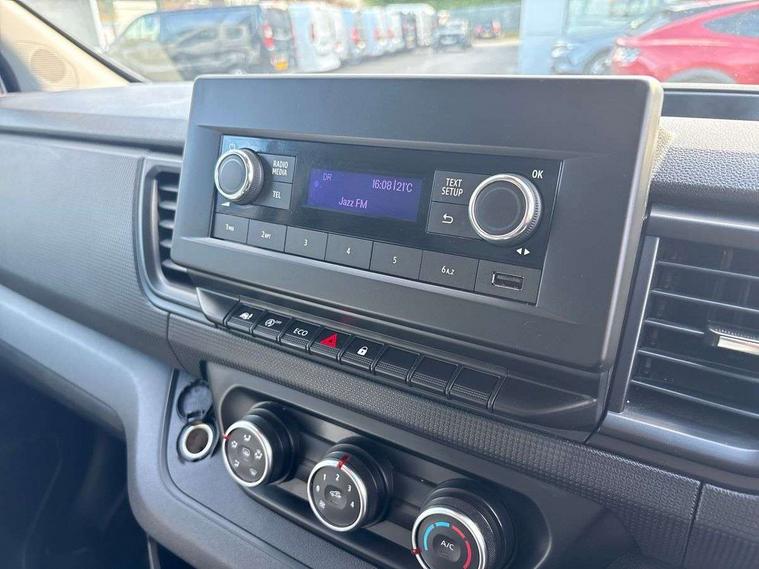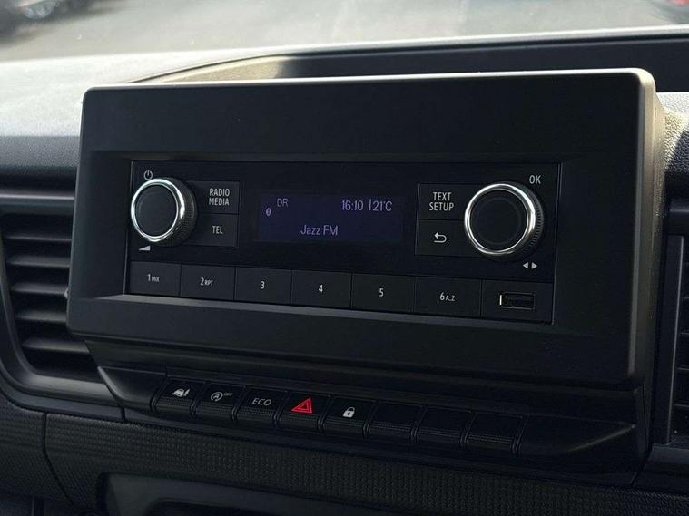 ECO mode button, Gearshift indicator, PAS, Trip computer, Black door mirrors, Black door rail, Black front bumper, Black rear tail column, Electric front windows with one touch drivers window, Full LED headlights with C-shaped DRL, Heated with electric adjustment door mirrors and external temperature sensors, Roof bar fixings, 12V power socket in front, 16 load anchorage points, Closed glovebox, Dashboard with geometric grain, Height adjustable drivers seat with armrest and lumbar adjustment, Interior cabin lighting, Kompo cloth upholstery, Passenger seat bench, Reach and rake adjustable steering column, 3 point height adjustable seatbelts with pretensioners and load limiter, Driver and passenger seatbelt reminder, Driver's airbag, Alarm - Thatcham T2 volumetric alarm, Deadlocking, Electronic immobiliser, Remote central locking, 12v socket in loadspace, 20L AdBlue tank, 4 disc brakes, 80 litre fuel tank, ABS with EBD (Electronic Brake force Distribution), ESC (Electronic Stability Control) with Hill Start Assist and Grip Xtend,