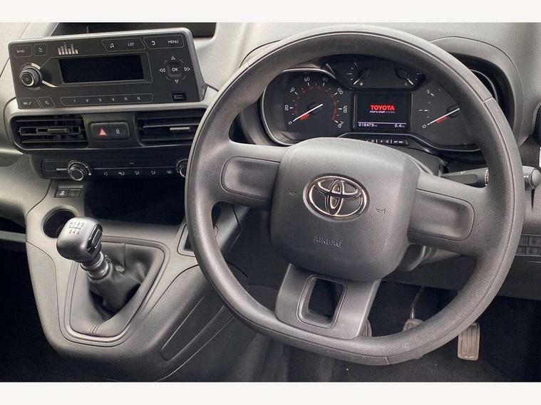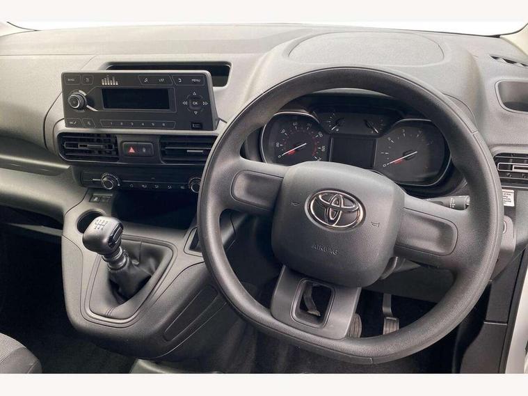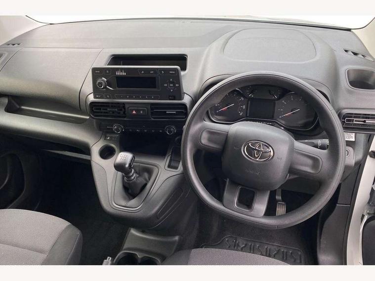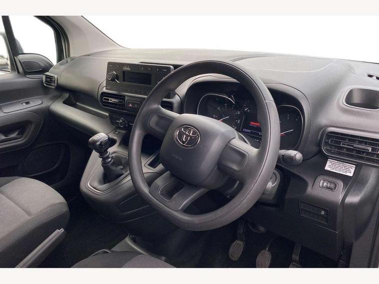 5" touchscreen multimedia display, Analogue speedometer, Analogue tachometer, Audio switches behind steering wheel, Bluetooth handsfree connectivity, eCall emergency system, LCD screen and pictogram, Monochrome multi information display, MyT connected services, PAS, Tyre pressure warning system (TPWS), 2 speakers, Digital radio (DAB), USB connector, 180 degree opening rear doors, Anti jam protection on windows, Auto Headlights, Black door handles, Black door mirrors, Black front and rear bumpers, Black protection moulding on side door, Black upper front grille, Daytime running lights, Electric front windows with one touch up/down facility, Heated and power adjustable door mirrors, Manual retractable door mirrors, Manual wipers, Panel rear wing doors, Privacy glass 30% smoke tint, Roof antenna, Roof rails, Roof rails predisposition, Tinted windows, Two manual sliding side doors, 3 spoke urethane steering wheel, Additional tray on passenger dashboard, Black interior door handles, Bottle holders (0.5L), Cargo area lighting and 3 bulbs, Cargo deck load hook x6, Chrome insert on gear shift, Closed upper passenger dashboard storage compartment, Cooler in glovebox, Driver and single passenger seat, Fabric seats, Front bottle holders, Front room lights, Full metal bulkhead, Gear shift indicator, Height adjustable front headrests, In-floor storage box, LED Driver and front passenger personal lights, Manual air conditioning, Mirror on driver sun visor, Open glovebox passenger side, Open tray on passenger dashboard, Open upper driver dashboard storage compartment, Overhead driver and front passenger storage, Panel bulkhead, Piano black insert on gear shift, Plastic load floor protection, Pollen filters, Row 1 carpet floor, Row 3 panel on both sides (in place of window), Rubber cargo liner, Rubber floor mats in load area, Urethane gear shift, Passenger airbag, Supplement restraint system (SRS) 2 airbags, 1 remote key + 1 simple key, Central locking, Key starting system, Anti lock braking system (ABS), Brake assist, Downhill Assist Control (DAC), Electronic brake force distribution (EBD), Electronic Stability Control (ESC), Hill start assist, Manual parking brake, Stop/start function, Vehicle stability control, 16" grey steel wheels with black large centre caps, Full size spare wheel,