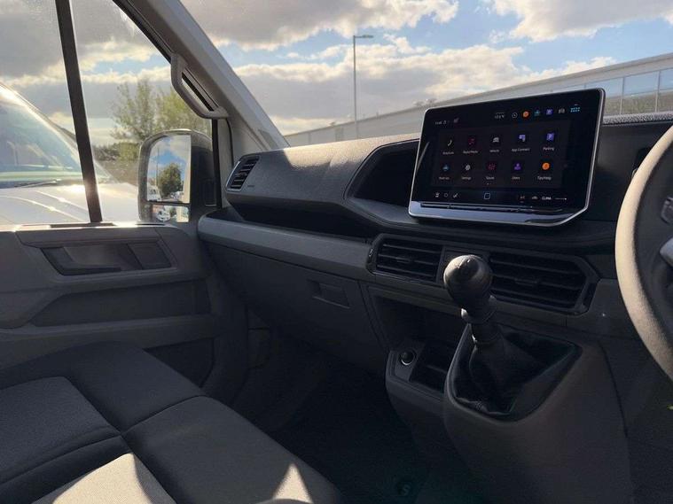 Bluetooth, Digital clock, Driver alert system, E-call + We connect basic preparation, Instrument cluster, Lights on warning buzzer, Locking fuel cap, Multi-function Display Plus, Rev counter, Service indicator, Speedometer, Voice control system, Composition media with 6.5" with we connect plus prep, 4 speaker, multifun display plus, USB, mob interface, app con, "We connect function", DAB Radio, Auto low beam mode, Leaving home function and manual coming home function, Cab doors, Convex and wide angle mirror, Driver seatbelt warning light, Electric windows, Electrically heated and adjustable door mirrors, Half painted front bumper, Heat insulating glass, Indicators in front door mirrors, One towing eye in front, Rear wing doors with 270 degree hinges, Special identification plate, Unpainted radiator grille, Air recirculation system, Ashtray, Centre console storage tray, CFCU preparation, Charcoal filter, Climatic air conditioning, Document holder on centre console, Drinks holders, Electromechanical Servotronic steering, Electronically controlled heating system, Fully adjustable suspension type driver seat, Grab handles on rear entry pillars, Height adjustable head restraints, Height and reach adjustable steering wheel, Illuminated glove compartment with lockable lid, Interior light, including 2 reading lights, Interior light, switchable by door, Jack and tool kit, Preparation for interface for external use with terminal block, Storage compartments in doors and in step, right, Storage tray on dashboard, Two 12V outlets in the cab (in the dashboard), Without rear side trim panel passenger load compartment, Non-smokers pack - Crafter, 3 point inertia reel belt on all seats, Automatic hazard light with emergency braking, Crosswind assist, Driver and front passenger airbag with front passenger airbag deactivation, Height adjustable seatbelts for outer cab seats, 1 rigid key, Anti-theft alarm with interior monitor, back up horn and tow away protect, overhead storage with two 1-DIN, reading light, SAFELOCK with 2 remote keys, Engine immobiliser, ABS, Automatic post collision braking system, EBA, EBD, EDL, ESP, Front disc brakes, HBA, Hill start assist, Parking brake - hill hold control, Start and stop system with regenerative braking, TCS, Hub cap covers,