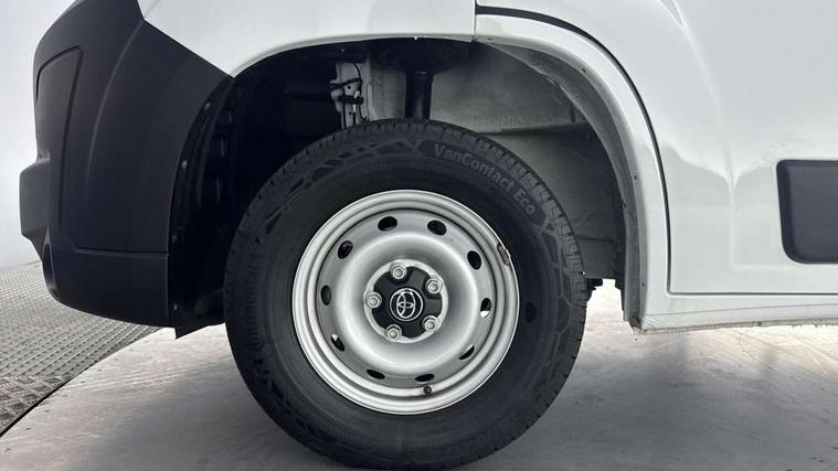 10" multimedia screen, 7" colour screen multi information display, Audio switches behind steering wheel, Bluetooth handsfree connectivity, Cruise control, Digital intrument cluster, Dynamic guide lines on reversing camera, Intelligent Speed Assist, Lane Departure Alert (LDA) switch on lower driver dashboard, Lane departure alert with steering control, Lane trace assist, Navigation system, PAS, Pre-collision system with pedestrian and cyclist detection, Rear parking sensors, Rear view camera, Road sign assist, Tyre pressure warning system (TPWS), Voice recognition, Voice recognition switch on steering wheel, 6 speakers, Apple Carplay/Android Auto, Digital radio (DAB), 180 degree opening rear doors, Automatic headlights, Automatic high beam, Black front bumper, Black insert on upper front grille, Black rear bumper, Halogen projector headlamps with LED daytime running lights, Heated door mirrors, LED Front light guide, Manually retractable door mirrors, Panel rear wing doors, Power adjustable door mirrors, Sliding side door - left, Smoke tinted (30%) privacy glass, 12v power outlet - Cargo area, Adjustable lumbar support on drivers seat, Automatic air conditioning, Cloth upholstery, Driver seat armrest, Height adjustable and sliding driver and front passenger seats, Inner load hooks on cargo deck, LED Boot light, Panel bulkhead, Telephone switches on steering wheel, Driver and front passenger airbags, Driver attention assist, Emergency call, Front seatbelt reminder, Rear seatbelt reminder, Anti tamper, glass breaking sensors, intrusion and motion sensor alarm, Hill start assist control, Vehicle stability control plus (VSC+), 15" steel wheels, Full size spare wheel, Underbody spare wheel carrier,