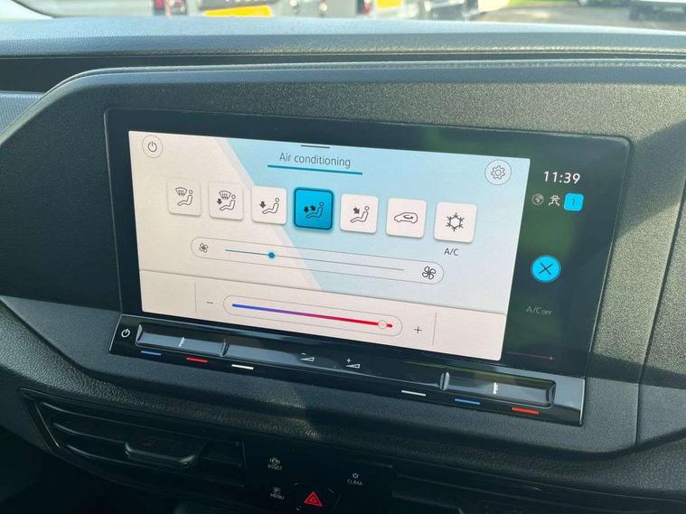 Driver alert system includes drowsiness detection, Emergency call control unit with eCall, Multi-function Display, Seatbelt warning indicator, Service indicator, Start-stop system with regenerative braking, DAB Radio, We Connect Plus Preparation, Automatic hazard light activation under emergency braking, Black painted exterior mirror housings, body-colored door handles and Silver sliding door rail, Body coloured bumpers, Electric front windows, Exterior mirrors, power-folding, power-adjustable, separately heated, Heated windscreen, LED rear combination lights, LED rear tail lights, Roof rail preparation, Windscreen wiper with variable intermittent delay and wash-wipe system, Armrests for both front seats, Electronically controlled heating system, ergoComfort seats for driver, Interior light in headlining, Lockable glove compartment door with light, Manual height adjustment for front seats and seat cushion inclination and depth adjustment on drivers seat, Multi function leather steering wheel, Power-adjustable lumbar support for drivers seat, Reach and rake adjustable steering column, Six lashing points for securing loads, Steering wheel paddle shift, Storage compartments under driver and front passenger seats, Sun visors with mirror, airbag label on front passenger sun visor, 3-point seat belts in front, with pretensioner and height adjustment, Driver and front passenger airbag with front passenger airbag deactivation, Anti-theft alarm system, interior monitoring, backup horn, and towing protection, Electronic engine immobiliser, Remote central locking with deadlocks, interior locking, Anti locking braking system (ABS), Automatic post collision braking system, Electric parking brake with auto hold function, Electronic brake force distribution (EBD), Electronic differential lock (EDL), Electronic stabilisation programme (ESP), Emergency brake assist, Engine drag torque control (MSR), Hill hold assist, Traction control system (TCS), Decorative beige birch vein inserts, Wheel bolts with anti-theft protection (unlockable),
