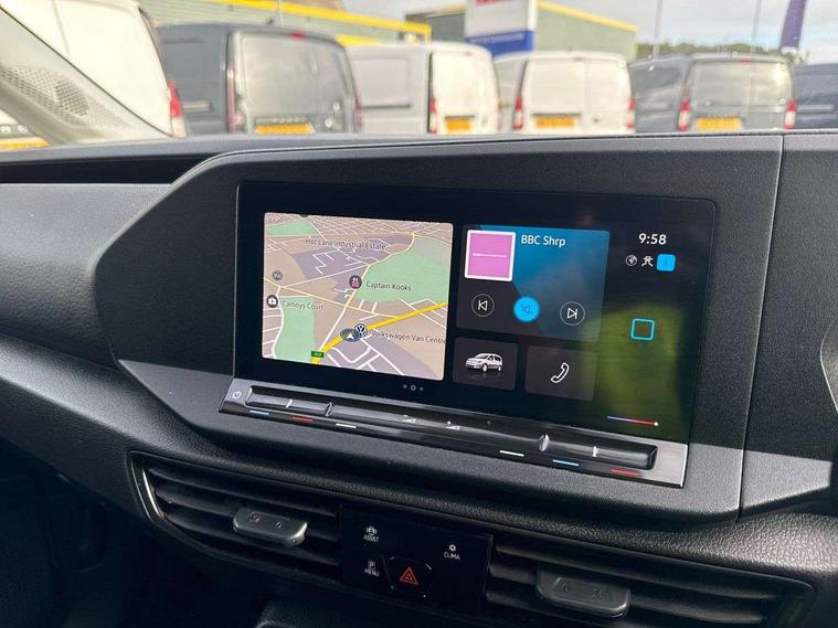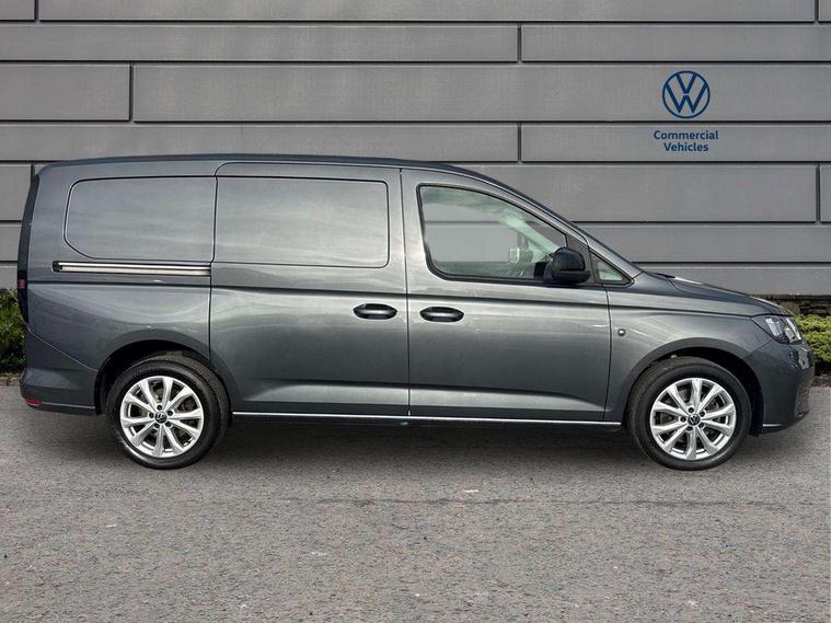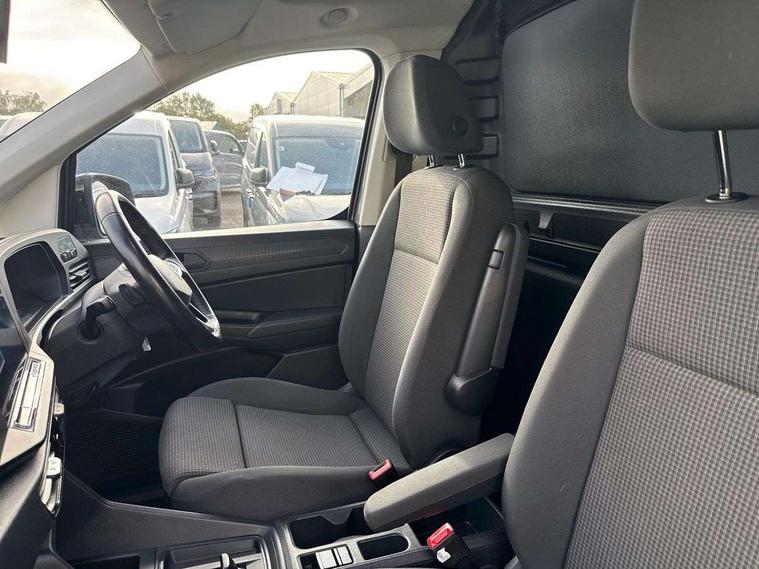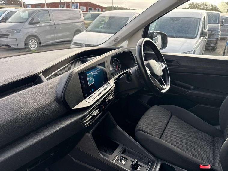 Bluetooth - Mobile phone interface, Driver alert system includes drowsiness detection, Emergency call control unit with eCall, Multi-function Display, Seatbelt warning indicator, Service indicator, Servotronic speed related power assisted steering, Start-stop system with regenerative braking, DAB Radio, We Connect Plus Preparation, Automatic hazard light activation under emergency braking, Black painted exterior mirror housings, body-colored door handles and Silver sliding door rail, Body coloured bumpers, Electric front windows, Exterior mirrors, power-folding, power-adjustable, separately heated, Heat insulating windscreen, Heated windscreen, LED rear combination lights, LED rear tail lights, Separate daytime running light with automatic headlight control, Side sliding door driver side with additional standard passenger side sliding door, Windscreen wiper with variable intermittent delay and wash-wipe system, Dimming breakaway interior rear-view mirror, Drawers under front seats, Electronically controlled heating system, Interior light in headlining, Lockable glove compartment door with light, Manual height adjustment for front seats and seat squab inclination and depth adjustment on drivers seat, Multi function leather steering wheel, Power-adjustable lumbar support for drivers seat, Reach and rake adjustable steering column, Six lashing points for securing loads, Steering wheel paddle shift, Sun visors with mirror, airbag label on front passenger sun visor, Sun visors, with ticket pocket on driver side, Vanity mirrors, Lights and vision pack - Caddy, 3-point seat belts in front, with pretensioner and height adjustment, Driver and front passenger airbag with front passenger airbag deactivation, Anti-theft alarm system, interior monitoring, backup horn, and towing protection, Electronic engine immobiliser, Remote central locking with deadlocks, interior locking, Anti locking braking system (ABS), Automatic post collision braking system, Autonomous Emergency Braking Front Assist with Pedestrian Monitoring, Electric parking brake with auto hold function, Electronic brake force distribution (EBD), Electronic differential lock (EDL), Electronic stabilisation programme (ESP), Emergency brake assist, Engine drag torque control (MSR), Hill hold assist, Traction control system (TCS), Decorative beige birch vein inserts, Wheel bolts with anti-theft protection (unlockable),