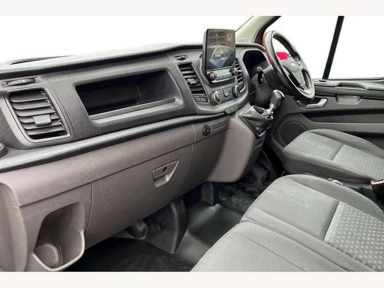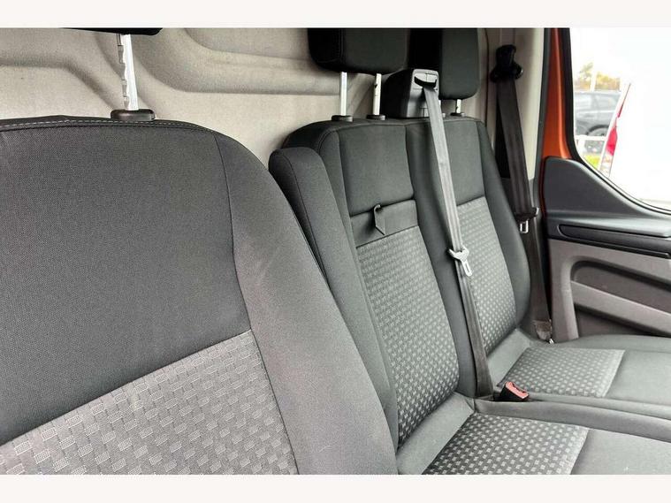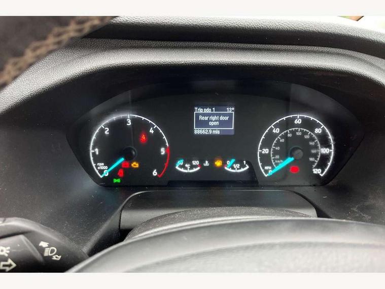 Easy fuel capless refuelling system, Embedded modem, Ford Eco mode, PAS, Selectable drive mode, Vehicle maintenance monitor, Audio controls mounted on steering wheel, Automatic lights and wipers, Body coloured door mirrors, Body coloured front bumper, Door open tyre carrier drop, Electric front windows with one touch facility for driver and front passenger, Emergency brake light flashing, Front splash guards/Mud flaps, Headlamp levelling, Intermittent front wash/wipe, Partialy body coloured rear bumpers, Passenger side sliding load door with track cover, Rear door edge warn reflectors, Rear mudflaps, Rear splash guards, Wide bodyside grey mouldings, 2 adjustable sunvisors, 2 Interior grab handles, Cloth upholstery, Driver and passenger sun visors, Header mounted courtesy lights - 2 map lights, Header mounted package tray, Height adjustable front headrests, Illuminated footwell, Lockable glove box, Map reading lights, Molded gear shift knob, Moulded cab floor liner, Partial molded headliner, Partial rubber inside floor cover, Passenger underseat storage box, Reach and rake adjustable steering column, Recirculation heater, Side rear door trim panel - Level 1, Tool kit, Washer tank level warning lamp, Interior trim accent pack B- Transit custom, Less rear seat pack - Transit Custom, 3 point seatbelts for all seats, Driver's airbag, Dual note electric horn, Height adjustable drivers seatbelt mount, Passenger seatbelt height adj, Seatbelt remainder for driver and passenger, Auto locking on drive-away, Auto relocking, Power door dead locks, Remote central locking, Speed dependent power lock group, 2 12v sockets, 80 litre fuel tank, ABS, Auto start/stop system, Diesel particulate filter, ESP, Extra heavy duty alternator, Mechanical parking brake, Roll stability control, Side wind mitigation, Standard duty suspension, Full wheelcovers,