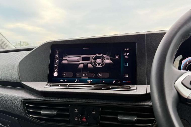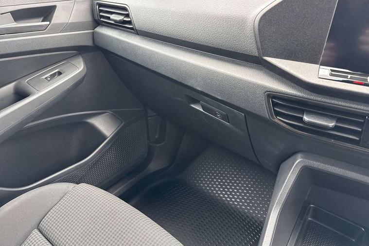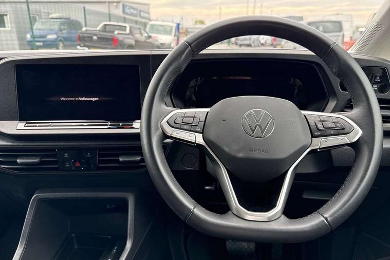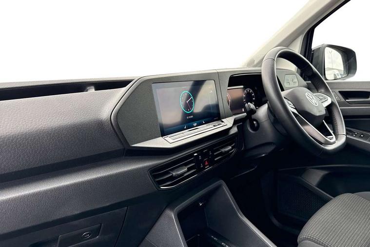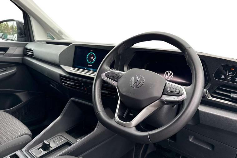 Bluetooth - Mobile phone interface, Digital cockpit, Digital multi-function cockpit display, Driver alert system, eCall emergency system, Front and rear parking sensors, Lane assist, Rear view camera, Seatbelt warning indicator, Service indicator, Start-stop system with regenerative braking, 2 USB interfaces type C in dashboard, App-Connect - Wireless for Apple CarPlay, DAB Radio, We Connect Plus Preparation, Automatic hazard light activation under emergency braking, Body coloured bumpers, Electric front windows, Gloss black painted exterior mirror housings, body-colored door handles and Silver sliding door rail, LED rear combination lights, LED rear tail lights, Rear view mirror with anti dazzle function, Roof rail preparation, Windscreen wiper with variable intermittent delay and wash-wipe system, Electronically controlled heating system, ergoComfort seats for driver, Interior light in headliner incorporting LED technology, Lockable glove compartment door with light, Manual heating and ventilation system, Manual height adjustment for front seats and seat cushion inclination and depth adjustment on drivers seat, Multi function leather steering wheel, Power-adjustable lumbar support for drivers seat, Reach and rake adjustable steering column, Six lashing points for securing loads, Steering wheel paddle shift, Storage compartments under driver and front passenger seats, Sun visors with mirror, airbag label on front passenger sun visor, Winter pack plus - Caddy, 3-point seat belts in front, with pretensioner and height adjustment, Driver and front passenger airbag with front passenger airbag deactivation, Keyless-Go without SAFELOCK, Tyre pressure monitoring system, Anti-theft alarm system, interior monitoring, backup horn, and towing protection, Electronic engine immobiliser, Remote central locking with deadlocks, interior locking, Anti locking braking system (ABS), Automatic post collision braking system, Diesel particulate filter, Electric parking brake with auto hold function, Electronic brake force distribution (EBD), Electronic differential lock (EDL), Electronic stabilisation programme (ESP), Engine drag torque control (MSR), Hill hold assist, Traction control system (TCS), Decorative beige birch vein inserts, Wheel bolts with anti-theft protection (unlockable),
