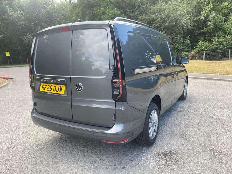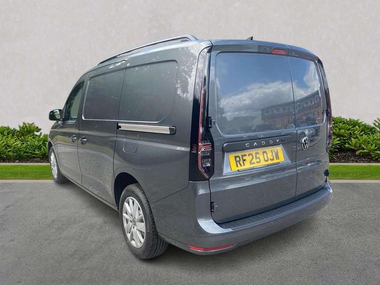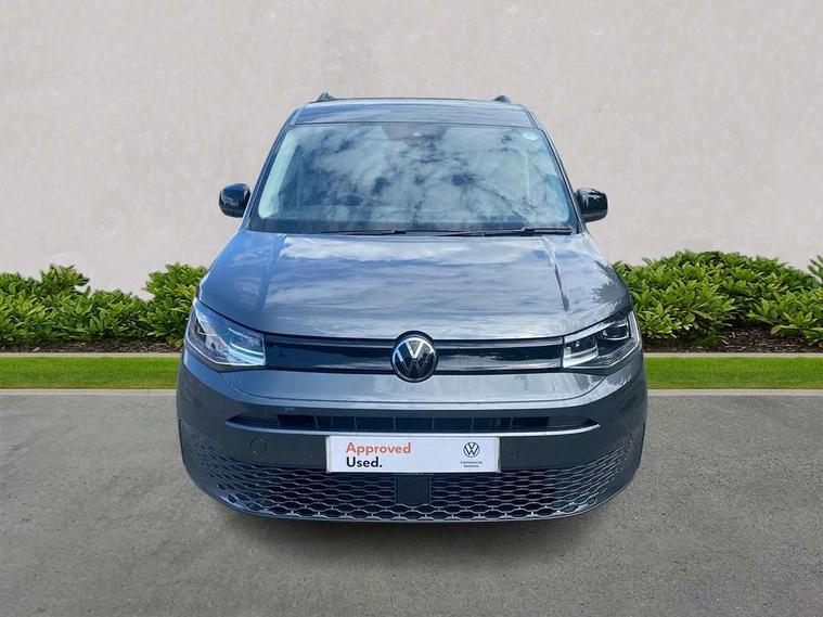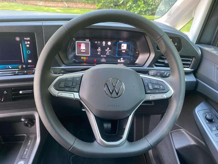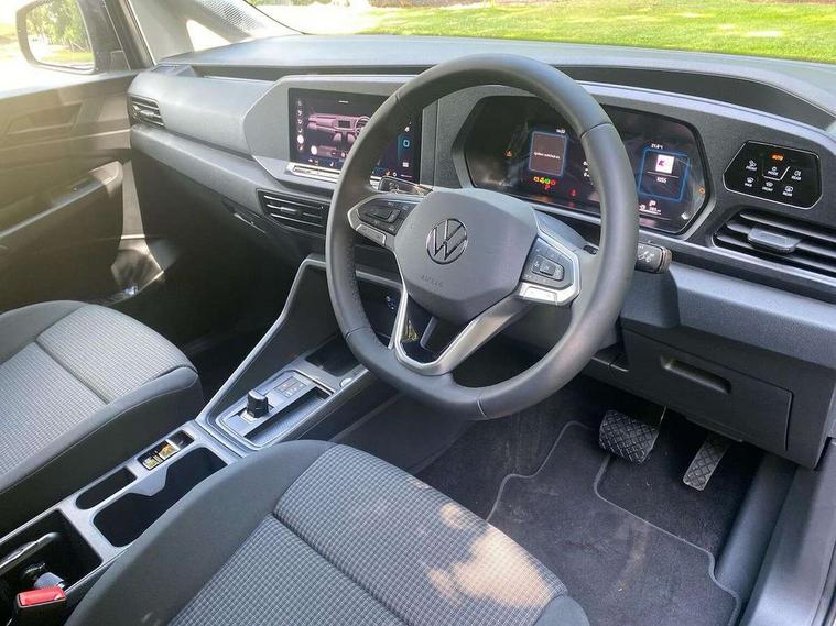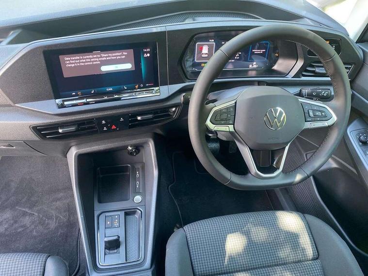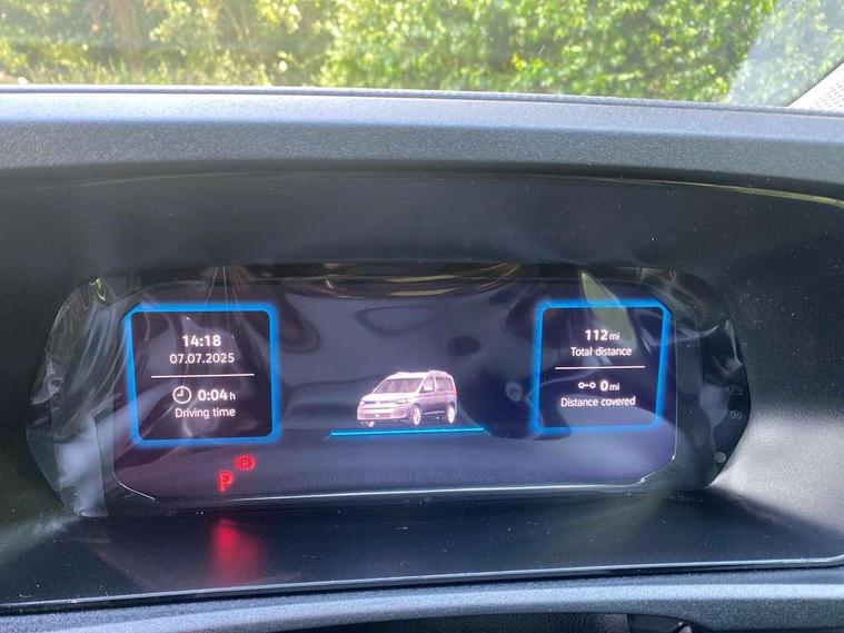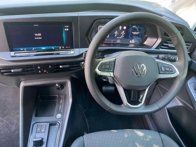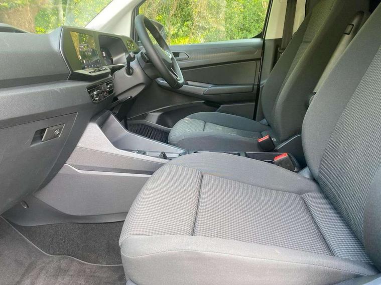 Bluetooth - Mobile phone interface, Car2X technology, Driver alert system, eCall emergency system, Intelligent Speed Assist, Lane assist, Seatbelt warning indicator, Service indicator, Start-stop system with regenerative braking, 2 USB interfaces type C in dashboard, App-Connect - Wireless for Apple CarPlay, DAB Radio, We Connect Plus Preparation, Automatic hazard light activation under emergency braking, Black painted exterior mirror housings, body-colored door handles and Silver sliding door rail, Body coloured bumpers, Electric front windows, LED rear combination lights, LED rear tail lights, Roof rail preparation, Windscreen wiper with variable intermittent delay and wash-wipe system, Dimming breakaway interior rear view mirror, Electronically controlled heating system, ergoComfort seats for driver, Interior light in headliner incorporting LED technology, Lockable glove compartment door with light, Manual heating and ventilation system, Manual height adjustment for front seats and seat cushion inclination and depth adjustment on drivers seat, Multi function leather steering wheel, Power-adjustable lumbar support for drivers seat, Reach and rake adjustable steering column, Six lashing points for securing loads, Steering wheel paddle shift, Storage compartments under driver and front passenger seats, Sun visors with mirror, airbag label on front passenger sun visor, Winter pack plus - Caddy, 3-point seat belts in front, with pretensioner and height adjustment, Driver and front passenger airbag with front passenger airbag deactivation, Tyre pressure monitoring system, Anti-theft alarm system, interior monitoring, backup horn, and towing protection, Electronic engine immobiliser, Remote central locking with deadlocks, interior locking, Anti locking braking system (ABS), Automatic post collision braking system, Brake assist, Diesel particulate filter, Electric parking brake with auto hold function, Electronic brake force distribution (EBD), Electronic differential lock (EDL), Electronic stabilisation programme (ESP), Engine drag torque control (MSR), Hill hold assist, Traction control system (TCS), Decorative beige birch vein inserts, Wheel bolts with anti-theft protection (unlockable),