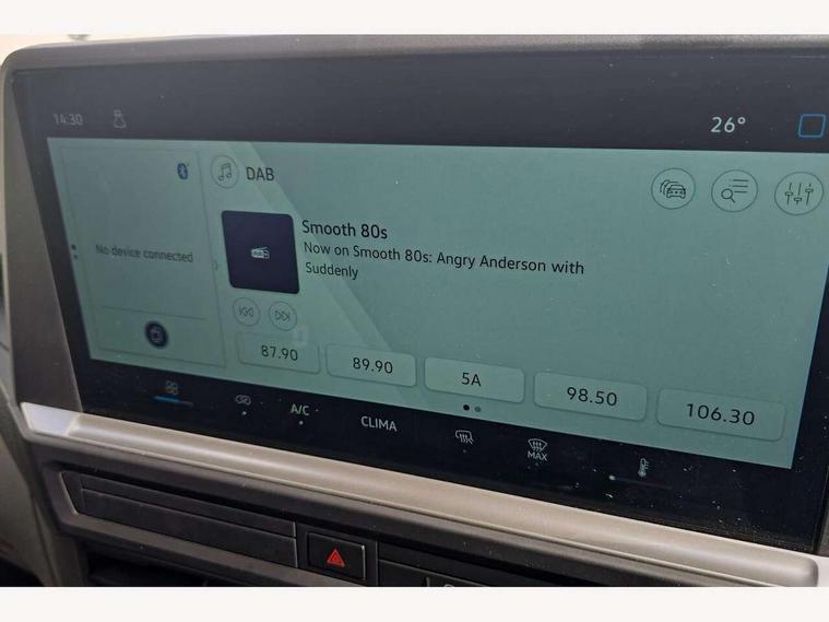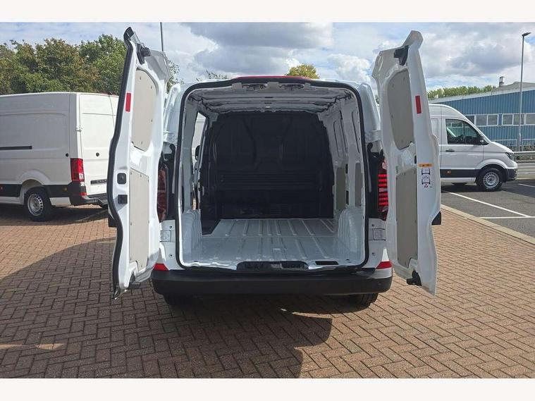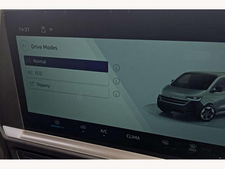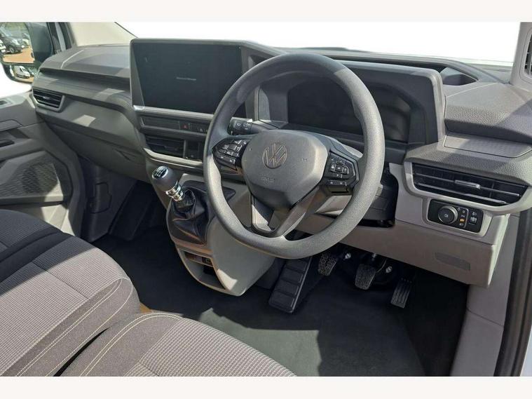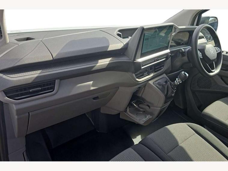 12" digital drivers display, 13" touchscreen infotainment display with wireless app connect and DAB radio, 5G Modem, Apple CarPlay and Android Auto, Cruise control, Dynamic road sign display, eCall emergency system, Electromechanical speed sensitive power steering, height and longitudinally adjustable steering column, Lane assist, Preparation of VW connect and connect plus, Wrong way driver warning, 4 speakers - 2x dashboard, 2x cab doors, Grained black door handles, Heat reflecting side window glass, High beam control, Laminated windshield made of heat-reflecting glass, LED rear combination lamps, Rear Transporter nameplate in black grained decorative trim, Vehicle opening configuration 1x 1st row of seats, 2x all doors, 2x 15-W USB data/charging ports in dashboard and 1x USB-C, 1x USB-A center bottom, 2x LED lights in load compartment, 4 way height and tilt adjustable head restraints, Black plastic scuff plate for sliding door in cargo without illumination, Cabin interior lighting, Lashing rings for reinforced floor covering, Narrow centre console with cup holder and compartment for mobile phone, Overhead storage compartment, Plastic gear lever, Roof grab handle on front passenger side, Rubber floor covering in cab, Standard glove compartment, Striped fabric upholstery, Without passenger seats in load compartment, Exterior pack 1 - Transporter, Interior trim pack - Transporter, Driver and front passenger airbag with front passenger airbag deactivation, Dual tone horn, Front and curtain airbags for driver and front passenger, Seat belt pretensioner for driver seat, Electronic immobiliser, Preparation for alcohol ignition interlock, 5+ Promise, Alternator - 230A, Electronic stability control, ABS, ASR with deactivation button, hill start assist and brake assist system,