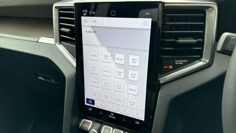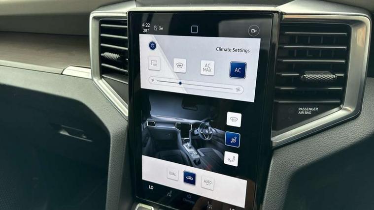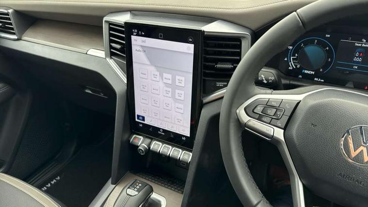 12-inch Infotainment system, Adaptive cruise control ACC with predictive speed limiter, Area View 360 camera, Autonomous emergency braking front assist with monitoring and braking for vehicles, pedestrians, cyclists, Digital Cockpit 12-inch, Dynamic road sign display, eCall emergency system, Lane keeping system lane assist and lane change system side assist, Navigation system, Park assist including park distance control in front and rear, rear traffic alert, PAS, Selector lever, Without manual activation of 360-degree surround and cargo area lighting, Without tachograph, Without trailer maneuvering system Trailer Assist, 1 USB charging socket on the interior rearview mirror, 6 speakers, AM / FM antenna and digital radio reception DAB+, Preparation for VW Connect Basic and VW Connect Navigation, Advanced high-beam control Dynamic Light Assist for IQ.LIGHT LED matrix headlamps, Black bumper in rear with chrome-plated styling elements, Body coloured exterior mirror housings and door handles, Body coloured front bumper, Body-colored rear gate handle, Chrome styling roll bar, Dark-tinted privacy glass rear side windows and rear window, Diversity antenna, Dynamic headlight range control, Exterior mirrors, power-adjustable, heated and power-folding, with surround lighting, Front and rear power windows, Fuel filler door with integrated misfueling prevention device, Heated rear window, IQ Light LED matrix headlamps, LED front fog lamps, LED rear combination lamps, Mud flaps front and rear, Radiator grille with chrome bezel, Satin air vents, Step with chrome insert, Trailer hitch preparation, Windshield sound-insulating with windshield heater, Windshield wiper intermittent control with rain sensor, Without hardtop, Without roof rails/roof rack, Without towing eyes in rear, Without trailer hitch, Without underride guard, 10-way power-adjustable driver seat and 8-way adjustable front passenger seat, 3 head restraints in 2nd row of seats, 3 point belts in addition height-adjustable in 1st row of seats, 3-point belts in 2nd row of seats, 3-seater bench in 2nd row of seats, Ambient lighting, Art velours upholstery, Carpet floor covering, Center armrest in rear, Child seat anchors ISOFIX on outer rear seats, i-Size compatible, Child seat recognition, Door handles in chrome, Driver seat with map pocket, Dual-zone climate control Climatronic, Gearshift/selector lever knob, leather, Glove compartment, illuminated and lockable, Headliner ebony black, Heating and fresh air system, Inductive charging feature, Leather-wrapped multi-function steering wheel, Overhead console 2 reading lights for driver and front passenger with glasses compartment in overhead console, Premium dashboard in leather look vinyl, Refrigerant, Roof grab handle on driver side, rigid grab handles, on A-pillar, Seat belt pretensioner, Seat occupied recognition with seat belt reminder for driver, front passenger and rear seat area, Sun visor on driver and front passenger side with illuminated vanity mirror, Tie-downs on the cargo area, Top tether child safety seat anchorage, Velour floor mats, Without hand brake lever, Without LED cargo area lighting, Without load compartment cover, Without load compartment loadliner, Without load support including protection frame on the rear cabin wall, Rear seat package II, Curtain and side airbags with center airbag, Front passenger airbag deactivation, Knee airbags for driver and front passenger, Without fire extinguisher, Without first aid kit, Anti-theft alarm system with interior monitoring, backup horn and towing protection, Keyless locking and starting system Keyless Access with SAFELOCK and 2 remote control folding keys, Online anti-theft alarm system, Rear gate lockable via central locking system, Remote control key, Tire Pressure Monitoring System (direct measurement), Wheel lock for spare wheel, Wheel locks, With programmable key, 120-V/230-V outlet in rear center console and cargo area, 3.55 gear ratio, Alternator - 250A, Automatic post collision braking system, Electronic parking brake, Electronic stability control (ESC) and Electromechanical brake booster, Emission standard, Four-wheel drive, Particle filter, Standard suspension, Stop/start function, Without differential lock in rear, Without electrical interface for external use, 6 switches in overhead console, 18" Amadora silver alloy wheels, Alloy spare wheel,