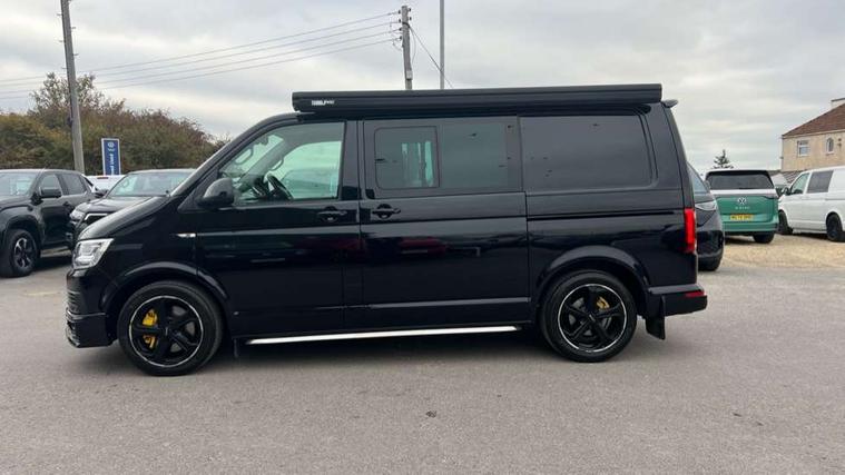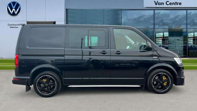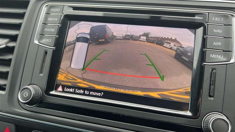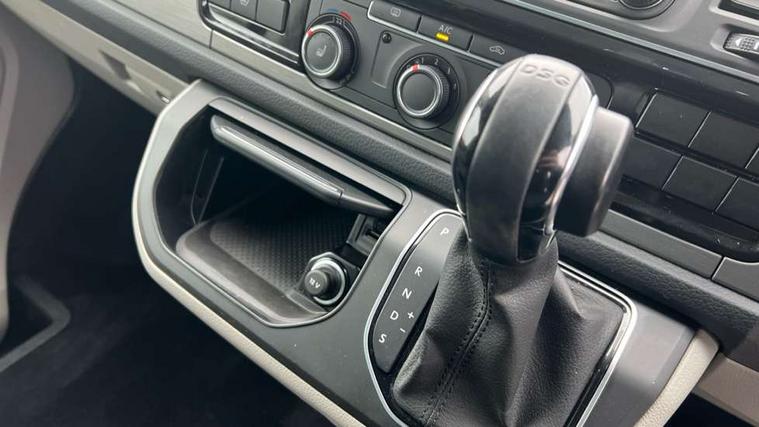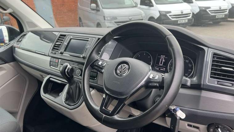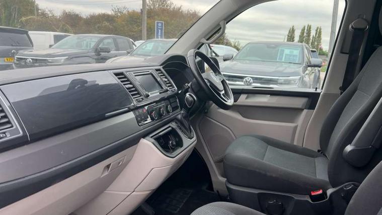 Bluetooth connectivity, Collision prevention assist, Digital clock, Driver alert with Multi-function display plus, Headlight range control, PAS, Rev counter, SD card slot, Seatbelt warning indicator, Service indicator, Trip computer, Tyre pressure monitor, 4 speakers, Aux input socket, DAB radio/CD player, iPod/USB connection, Auto dimming and breakaway interior rear view mirror, Automatic headlights, Body coloured bumpers, Body coloured door handles, Body coloured door mirrors, Chrome plated strip on air intake charge air cooler, Electric front windows, Front and rear towing rings, Front fog lights with cornering function, Heat reflective glass, Heated front windscreen, Heated rear window and wash wipe, No windows in rear side panels, Privacy glass rear + load compartment with green heat insulating glass, Sliding windows in side door and opposite, 2 rear interior lights, switchable by door, 2 storage trays in dashboard, 2 sun visors folding and pivoted, 3 seater rear bench, Additional 12v accessory socket, Cab interior light, Drinks holder, Drivers seat adjustable for reach and rake, Dust/pollen filter, Height adjustable head restraints, Height and rake adjustable steering column, Interior entry steps, Load lashing rings, Locking glovebox, Multifunction leather steering wheel, gearknob and gaiter, Open storage compartment in dash panel including mobile phone holder, Passenger armrest, Passenger seat with reach and rake adjustment, Rubber load floor cover with step light, Storage compartments in doors, Storage net on lower dash passenger side, Cab comfort pack - Transporter Kombi, Lights and vision pack - Transporter, Non smoker pack, 3 point inertia reel belt on all seats, Front passenger airbag deactivation, Height adjustable seatbelts for outer cab seats, Height adjustable seatbelts with tensioners, Internal central locking control, Anti-theft alarm with rear control in cab, backup horn and towing protection, Interior (cab only) and tow away protection, Locking wheel bolts, Remote central/dead locking + 2 keys, 70 litre fuel tank, ABS with electronic brake distribution, Diesel particulate filter, EDL, ESP, Parking brake - hill hold control, Traction control, 17" Devonport alloy wheels,